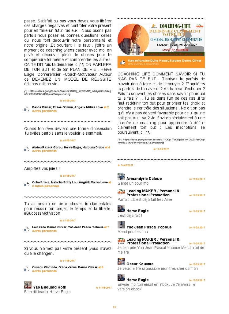 Herve Eagle made the blook of their their facebook account ! Support their creativity by buying their blook or create your own now on BlookUp!