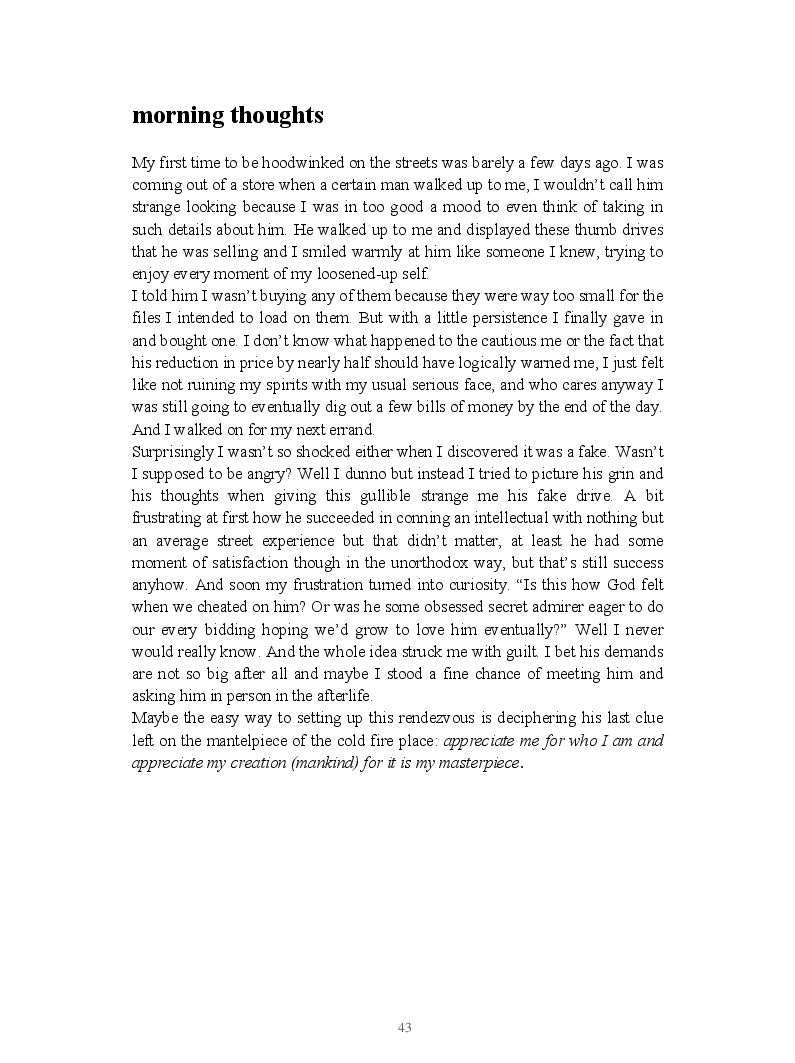Trailing notes of a wild heart's Journal. Notice my shift of perspective in my four years of Blogging, unedited! I love writing. I love etched expressions. They bring out the raw emotion and thoughts inside me. Thanks to Blogging, it taught me Resilience, Consistency, Innovation and passion in an aggressive simulated world that groomed me into a writer.