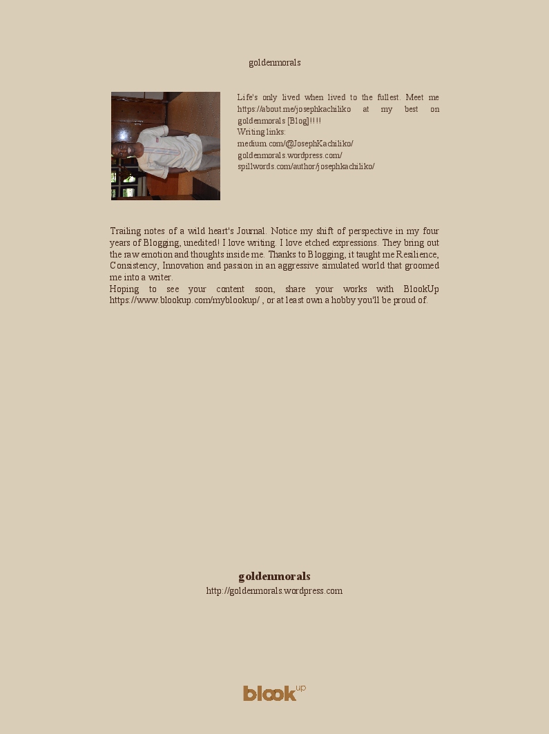 goldenmorals made the blook of their their blog Wordpress ! Support their creativity by buying their blook or create your own now on BlookUp!