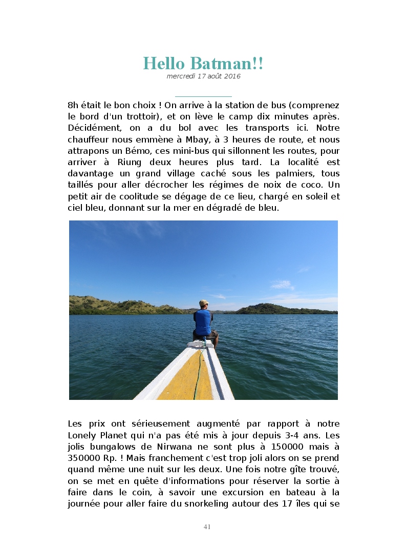 Ces 4 semaines en Indonésie lors de l'été 2016 vous emmèneront sur Bali, mais surtout plus loin à l'Est, sur Lombok, Flores, sur Irian Jaya, aux portes du Timor Oriental et de la Papouasie Nouvelle-Guinée.