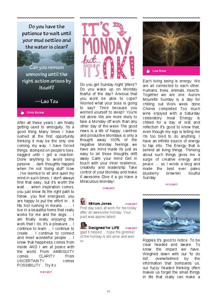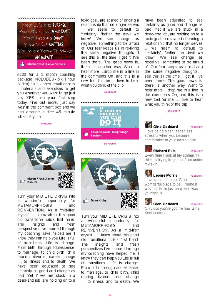 It’s wonderful to connect with you and to share a simple but profound knowledge that has already transformed my life and those of my clients.