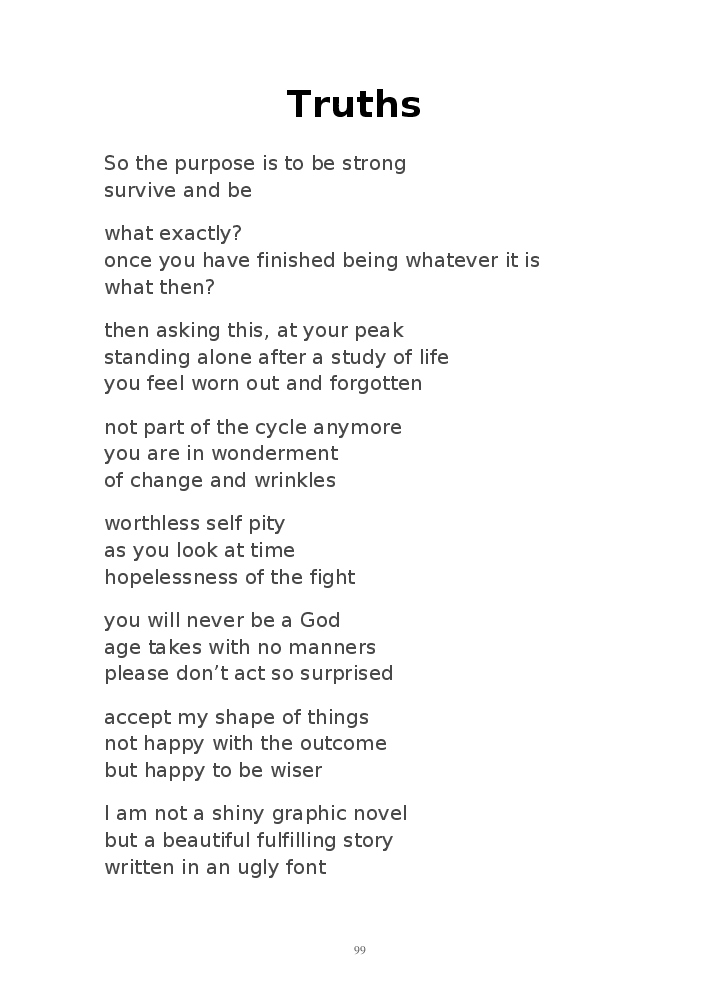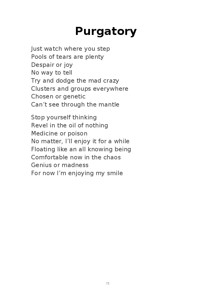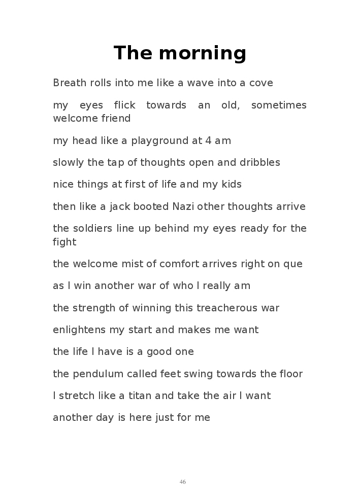 The questions you have may find answers here, maybe not. A thought that can be a tangle of spaghetti can easily unravel on a page. It can be embarrassing or a relief. It can be frightening or a joy. Ultimately, it can be the remedy for a mind to full of dark and light.