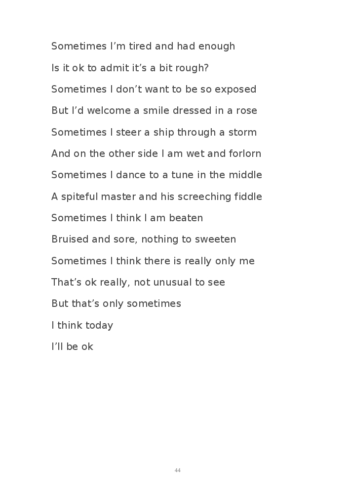 No matter how weird you think things may be or how lost you may seem, remember its only a perception of depth - steal the words that make you feel, steal them to make some sense.