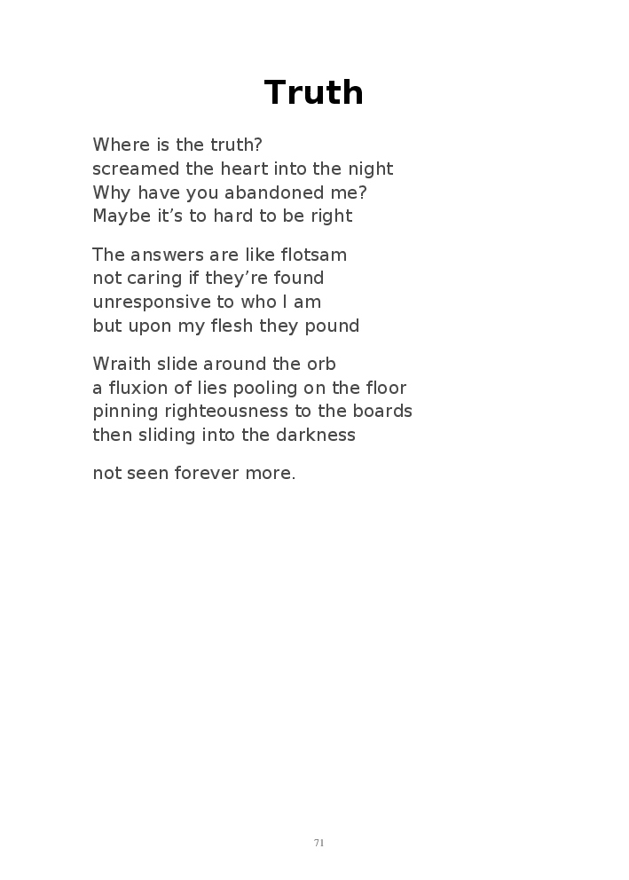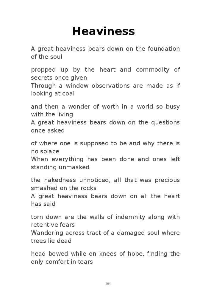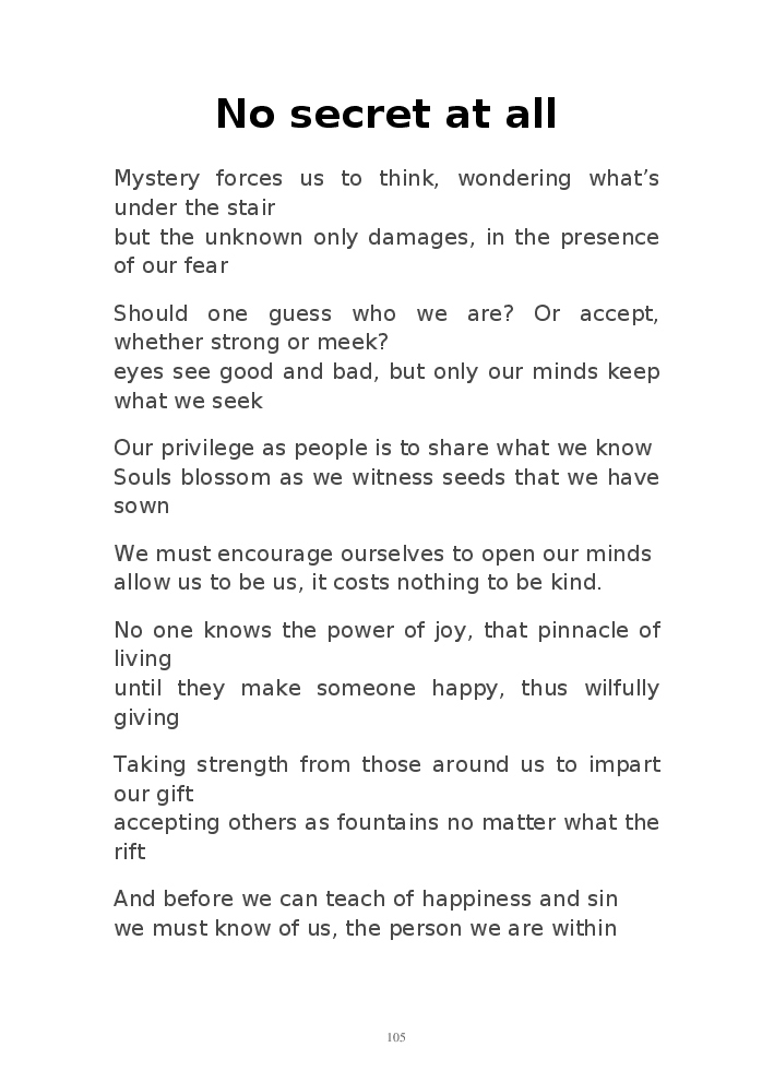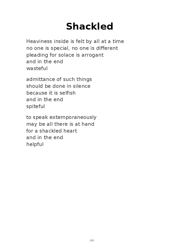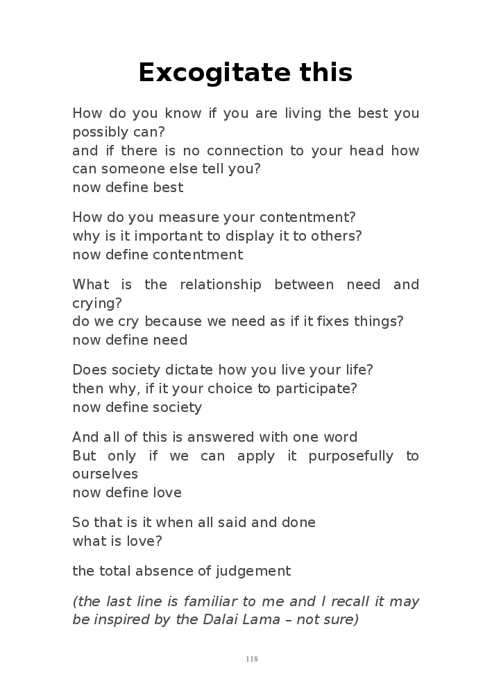 The questions you have may find answers here, maybe not. A thought that can be a tangle of spaghetti can easily unravel on a page. It can be embarrassing or a relief. It can be frightening or a joy. Ultimately, it can be the remedy for a mind to full of dark and light.