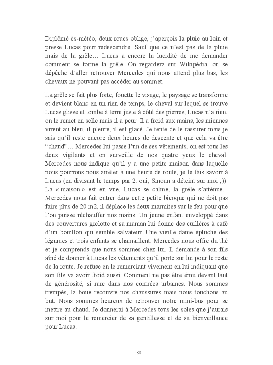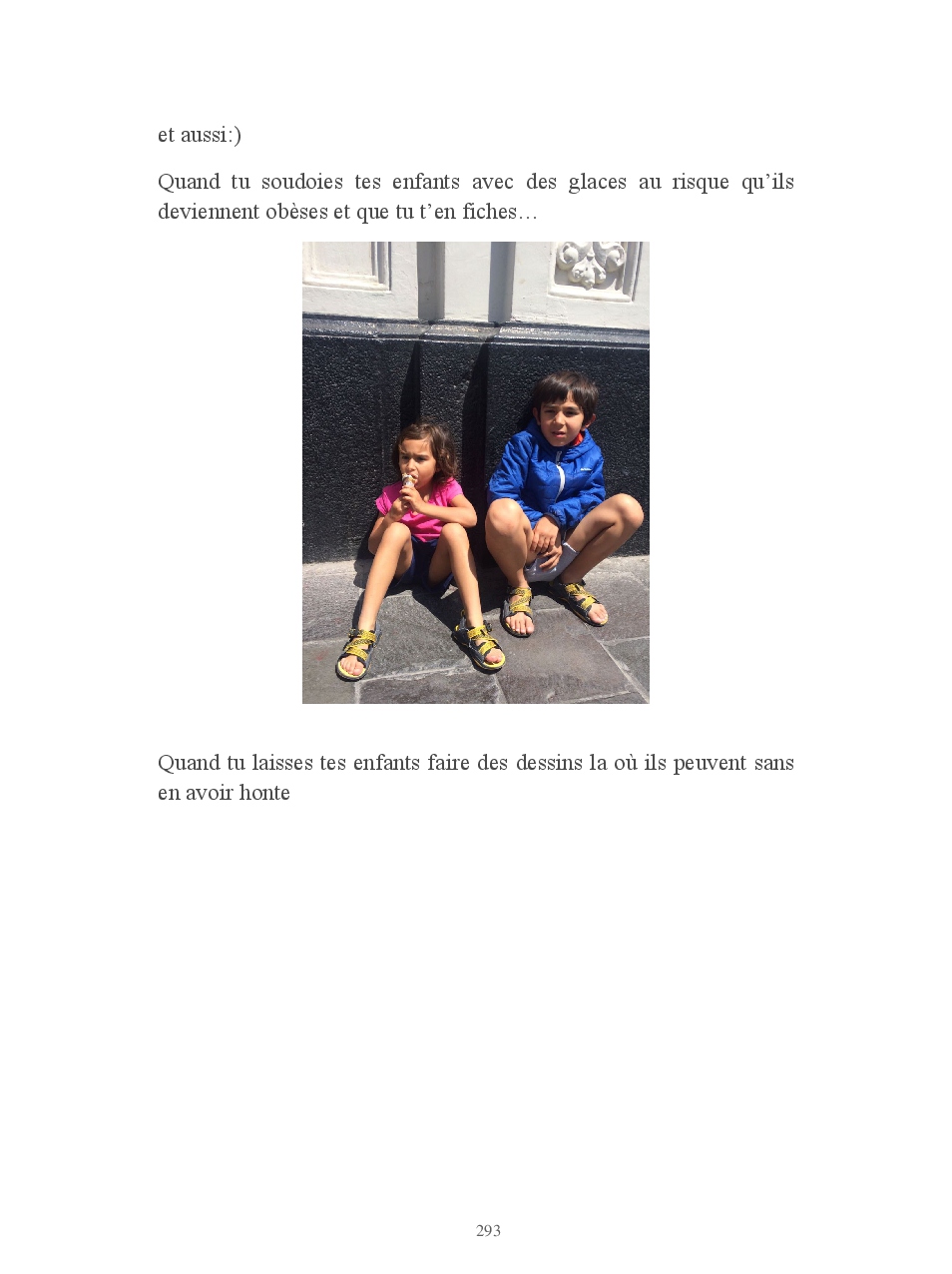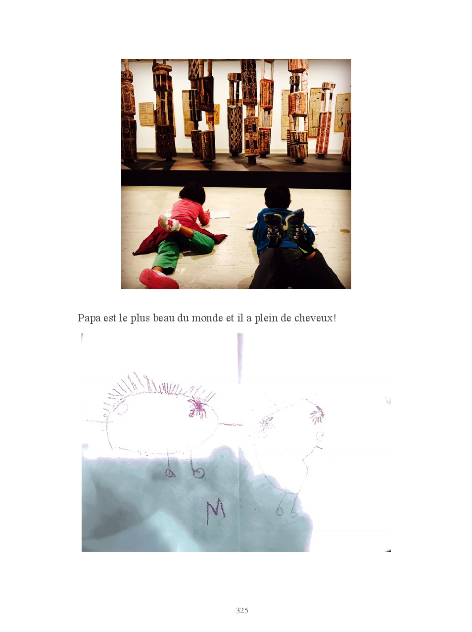 Lucas pose des questions inlassablement. Anodines, existentielles, philosophiques, il veut tout savoir. Il crée pour créer: des mètres qui ne mesurent pas, des tongs en carton, des pinceaux avec ses cheveux... des origamis. Manon sort une vanne avec un aplomb d'enfer puis s'éclate littéralement de rire. Elle aime que les choses soient rangées, précises. Regard intense et sauvage, droit dans les yeux. Pas un mot. Elle ne le montre pas mais Manon c'est une dure au cœur tendre.