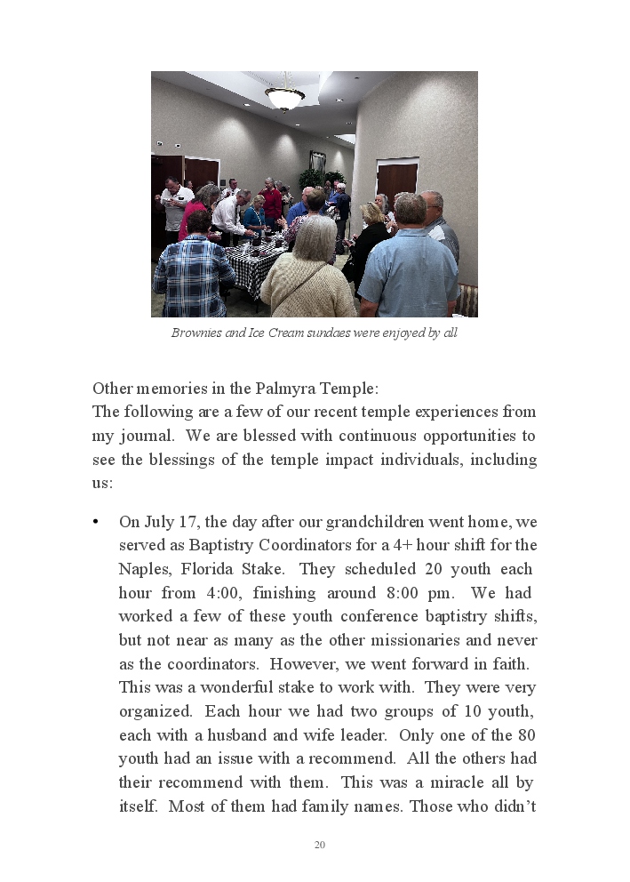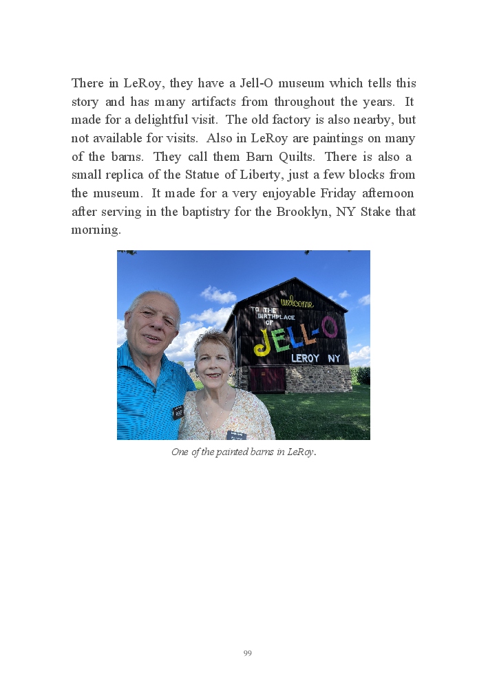 The primary focus of this blook is our Palmyra New York Temp[le Mission. Before we left. we celebrated the marriage of our son Jacob and his new bride Deborah Beutler who also stayed in our condo while we were in NY. We attended he funeral of our son-in-law, James DeVore, in Pennsylvania on March 30 and arrived in Palmyra the next day. Our time in Palmyra was full of spiritual experiences in the temple, in the Penn Yan branch, and in the land of the restoration. We also had a memorable teenage grandchildren retreat in July, sharing all of these experiences.. The Lord has certainly blessed us on this mission! After returning home, we were called as Church Service missionaries, teaching Institute for Pathway.students.