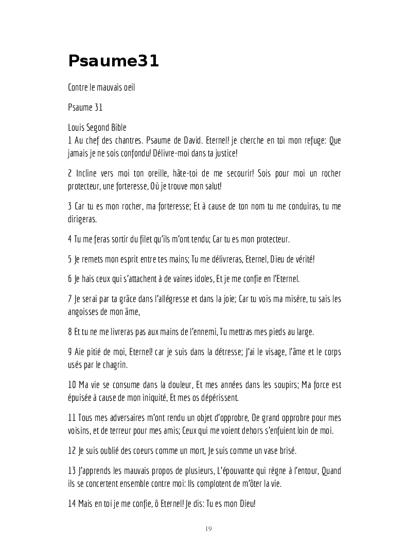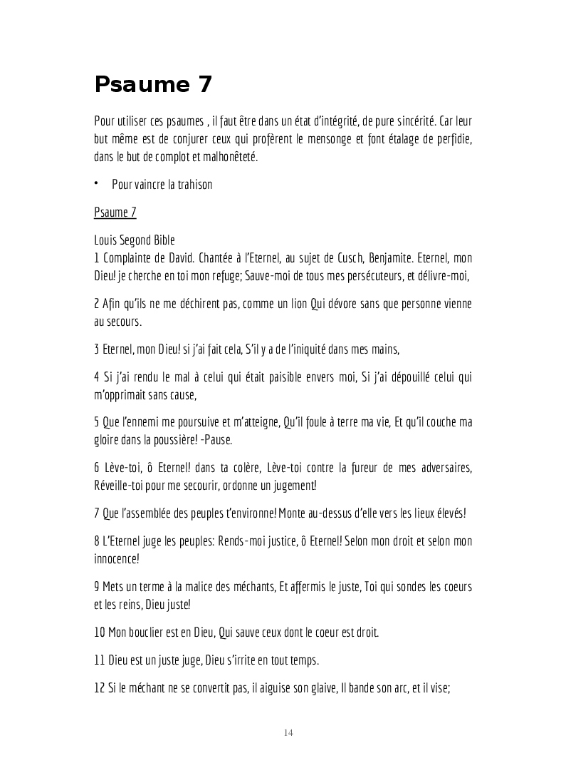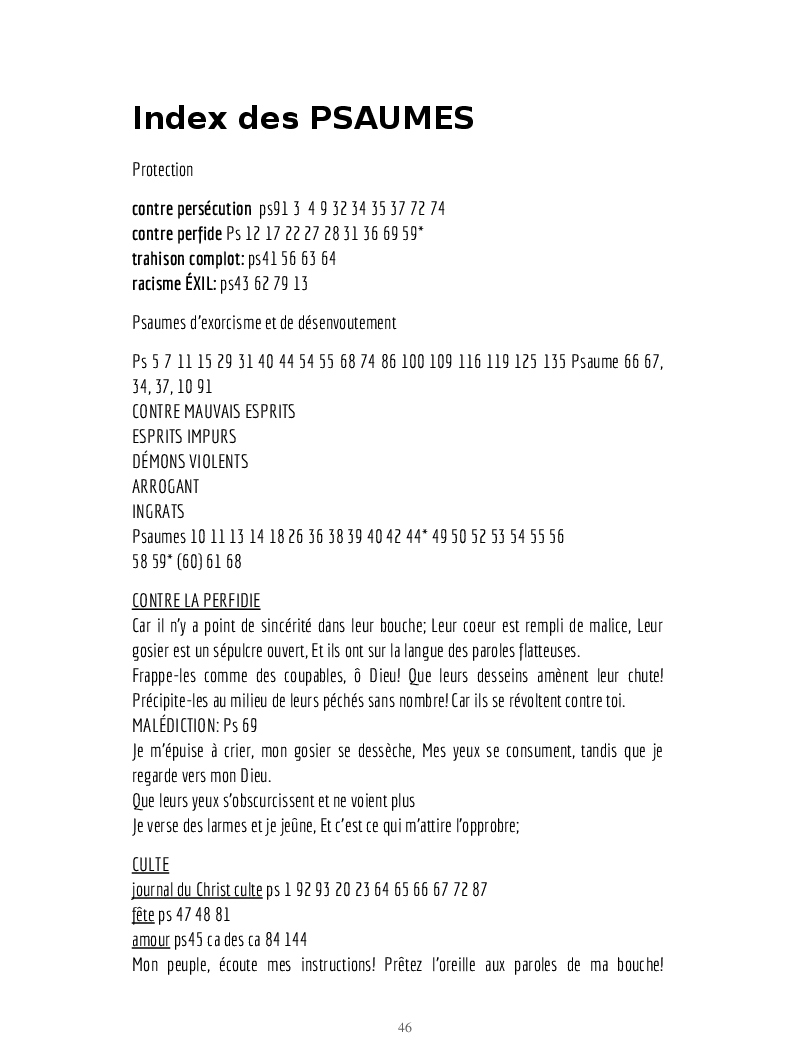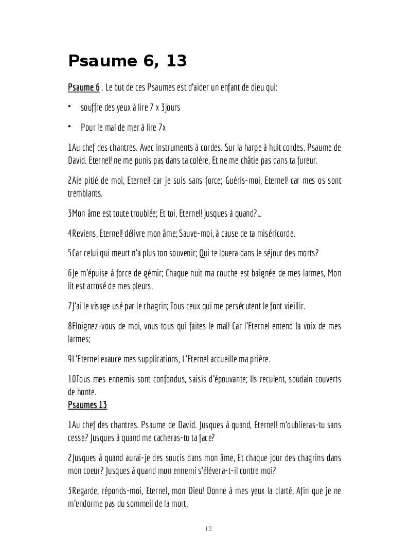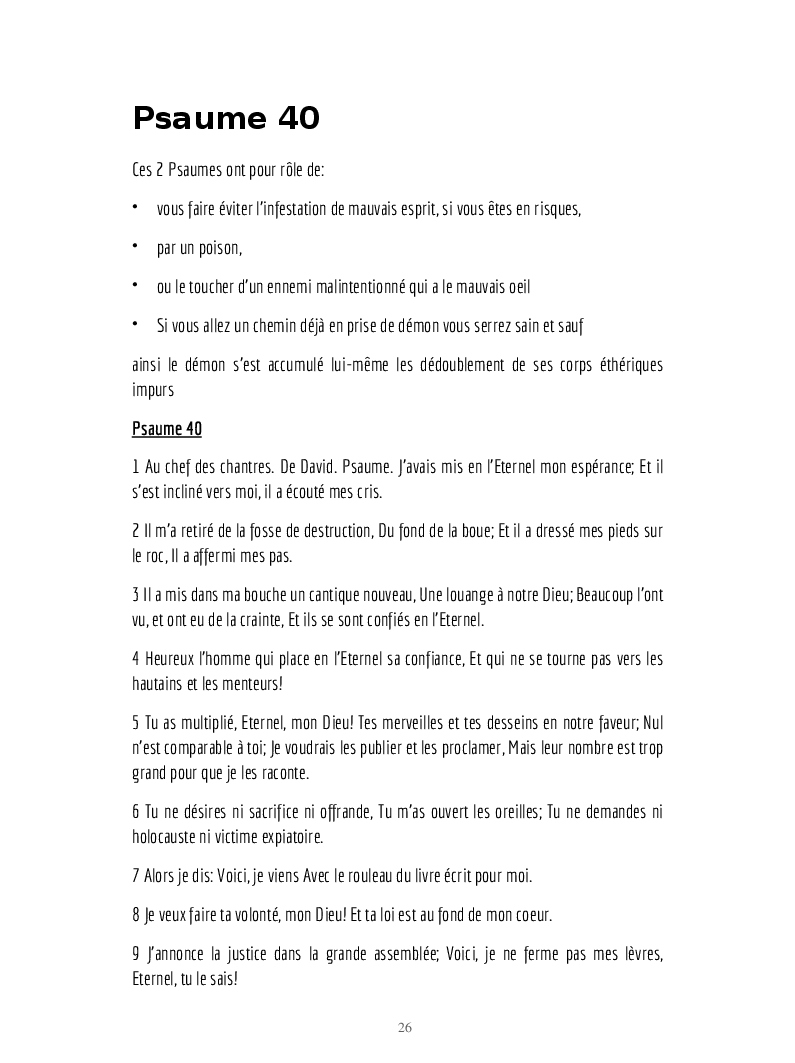 Psaumes et formules biblique et mode d'emploi.