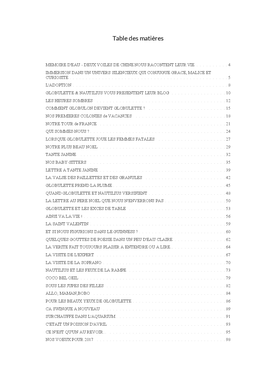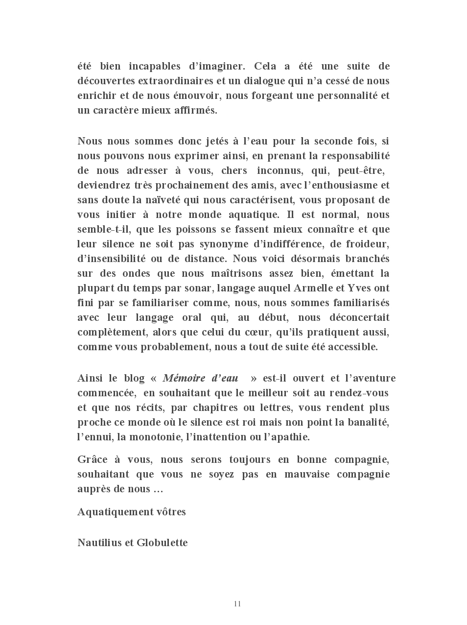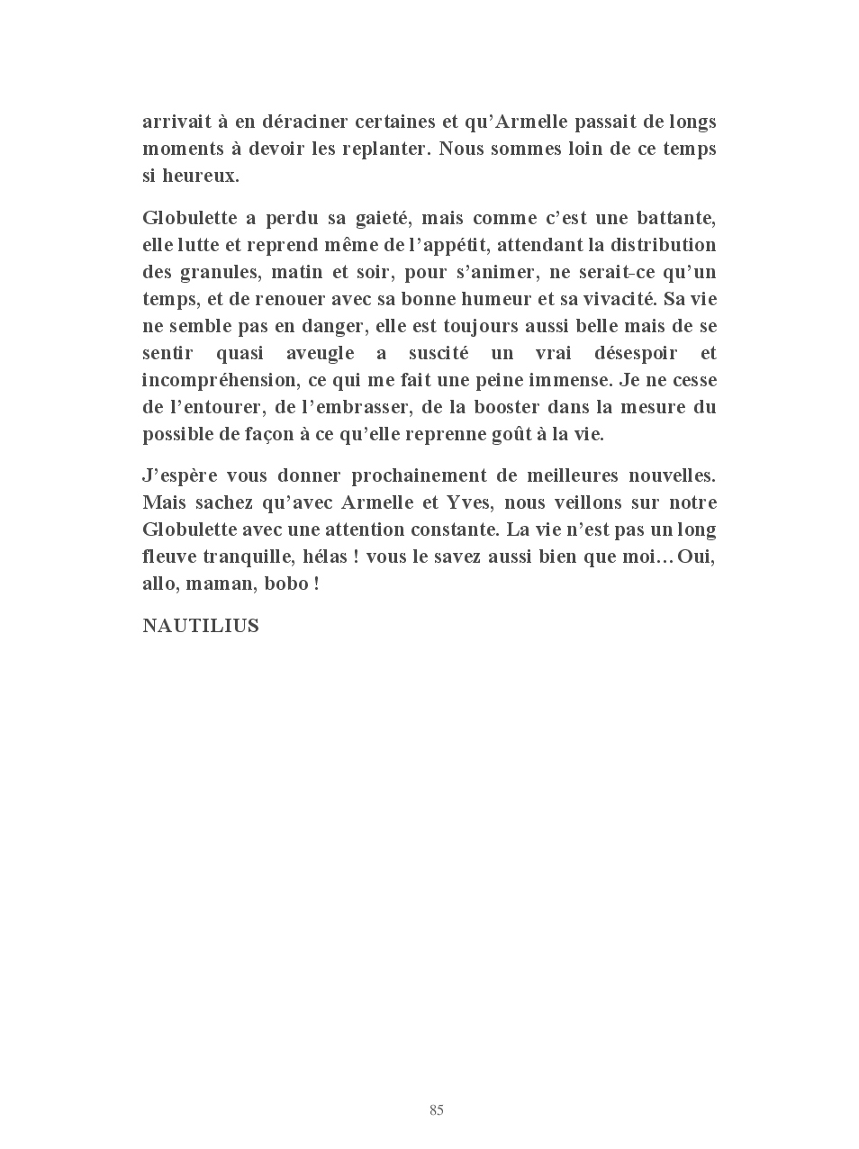 Cet ouvrage vous conte la vie de Globulette et Nautilius qui ont eu le souci de ne manquer aucun événement important de ces presque neuf années de vie partagées avec Yves et Armelle.