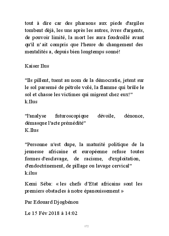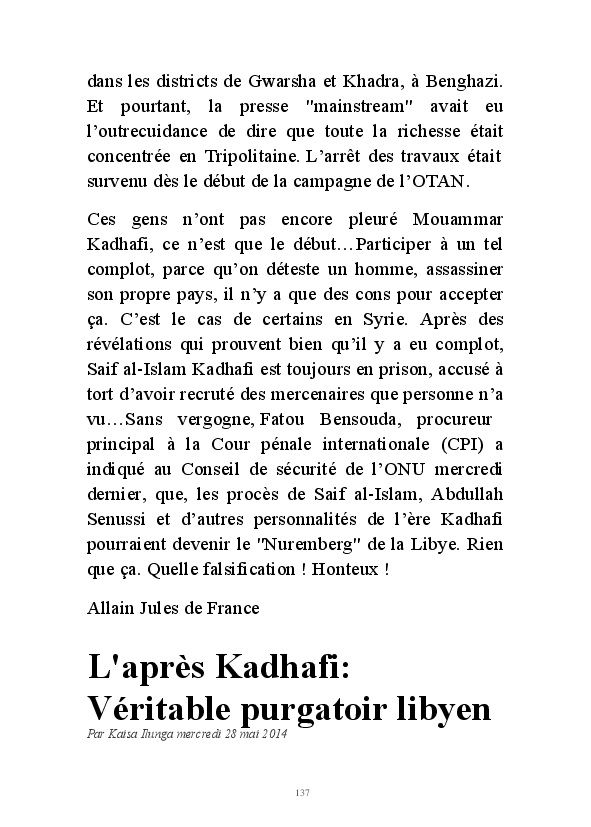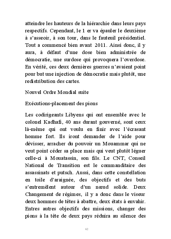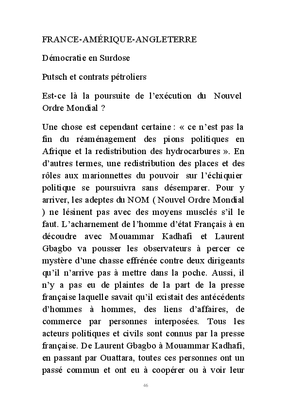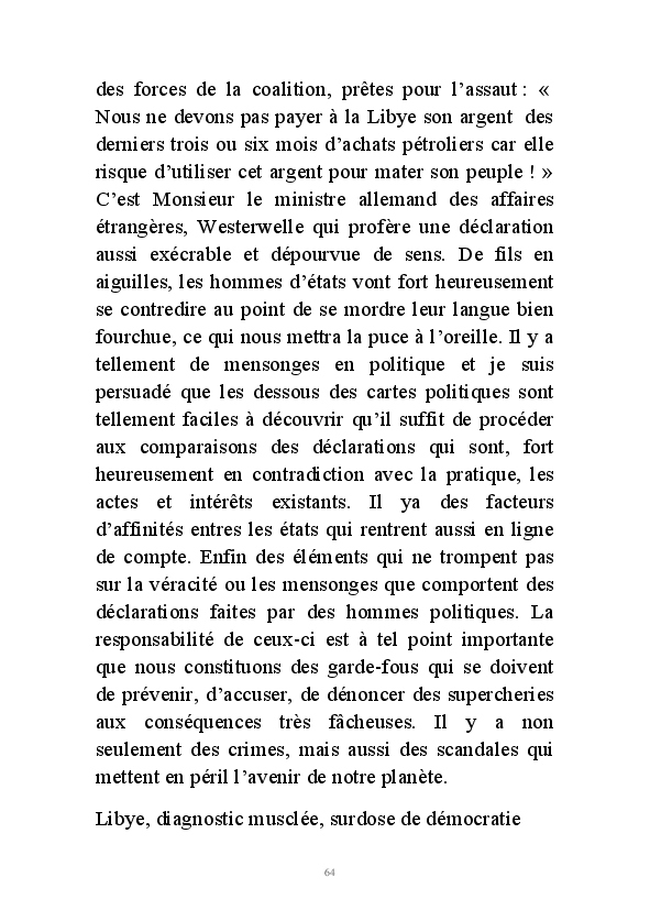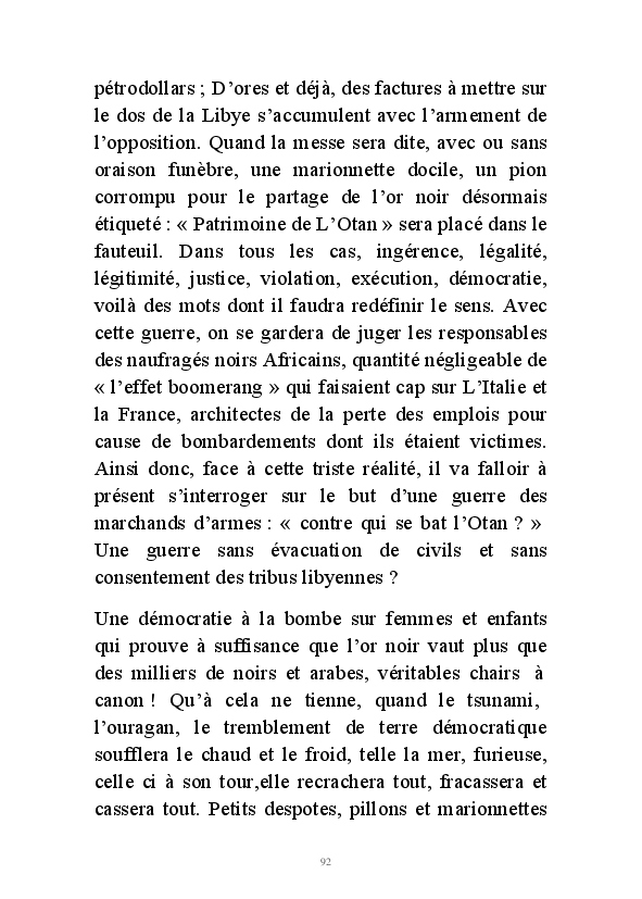 Des dates d'analyses préventives d'une actualité riche en conséquences, qui convoquent, révoquent et alarment, poussent à l'implication mais aussi et surtout à la dénonciation, au refus d'une complicité avec des politiques va-t-en-guerre; D'où, une autre façon, méthode d'analyser pour prévenir: " la "FUTUROLOGIE" l'analyse "FUTUROSCOPIQUE" permet de précéder des événements en conspiration, telles, des guerres bidons "d'injection de démocratie en Afrique et partout ailleurs" qui ce sont avérées des véritables overdoses aux conséquences migratoires pourtant prévisibles.