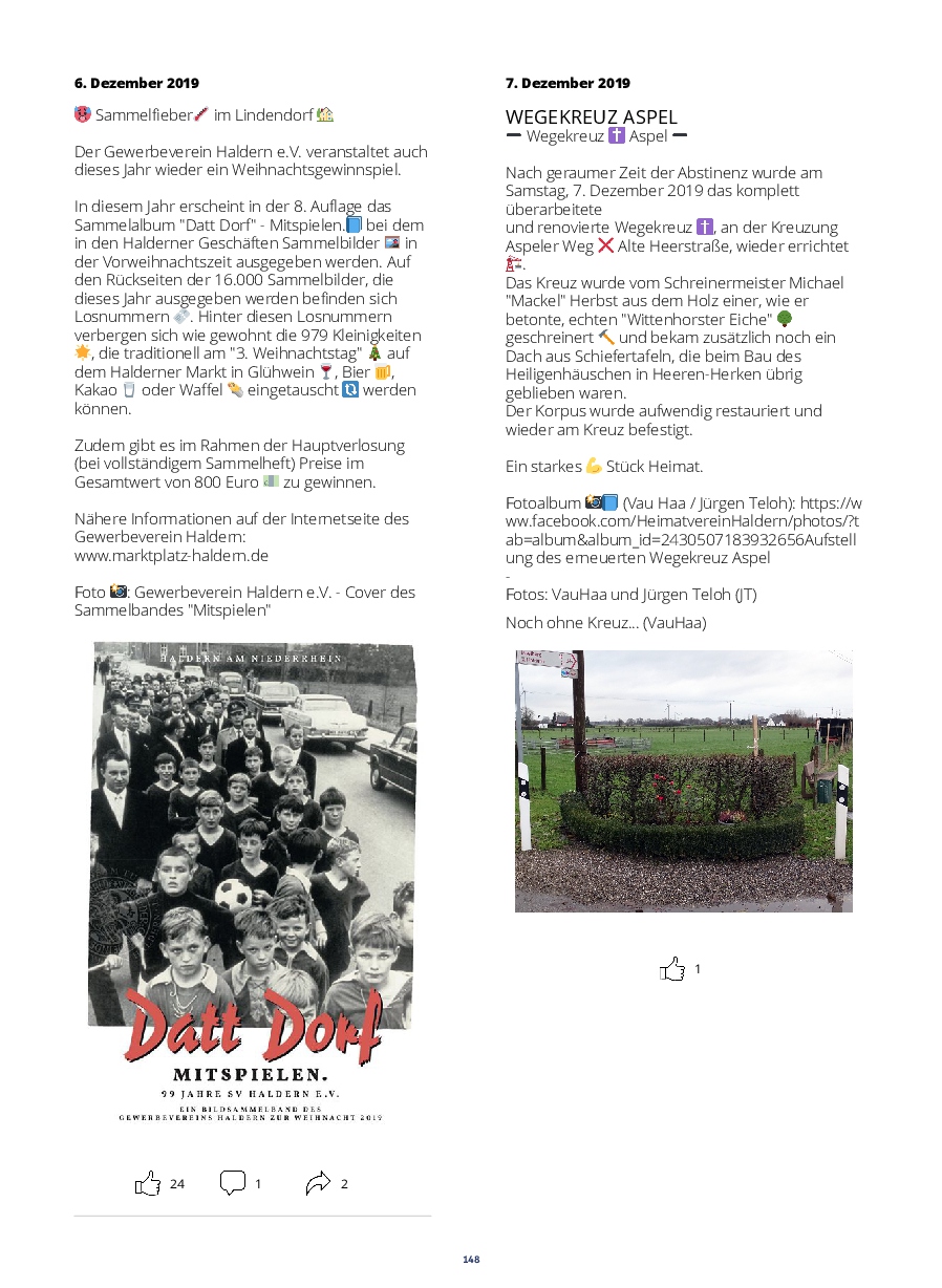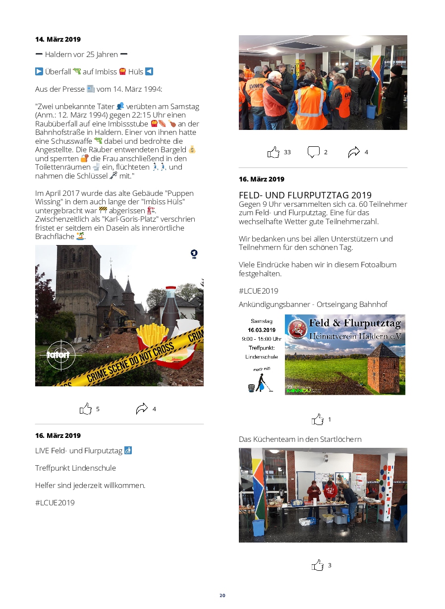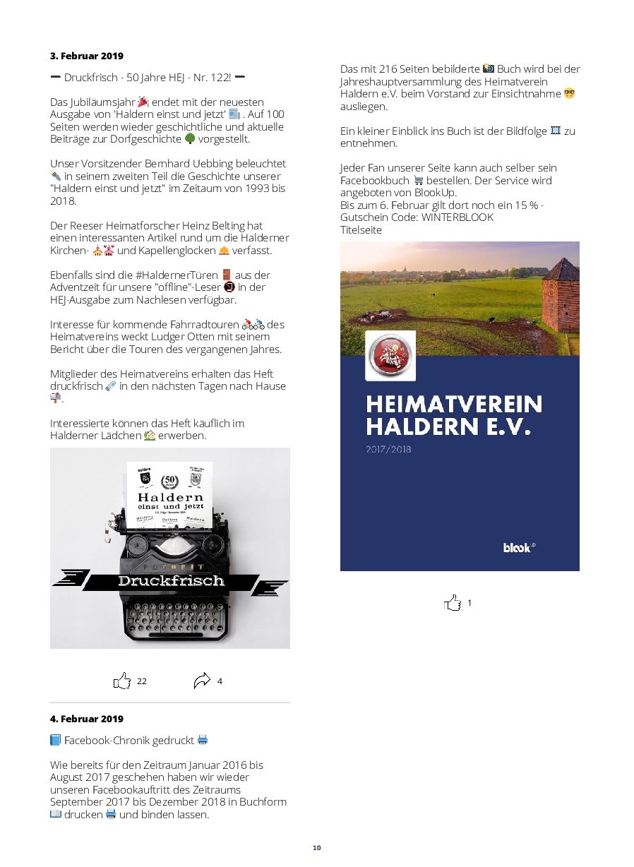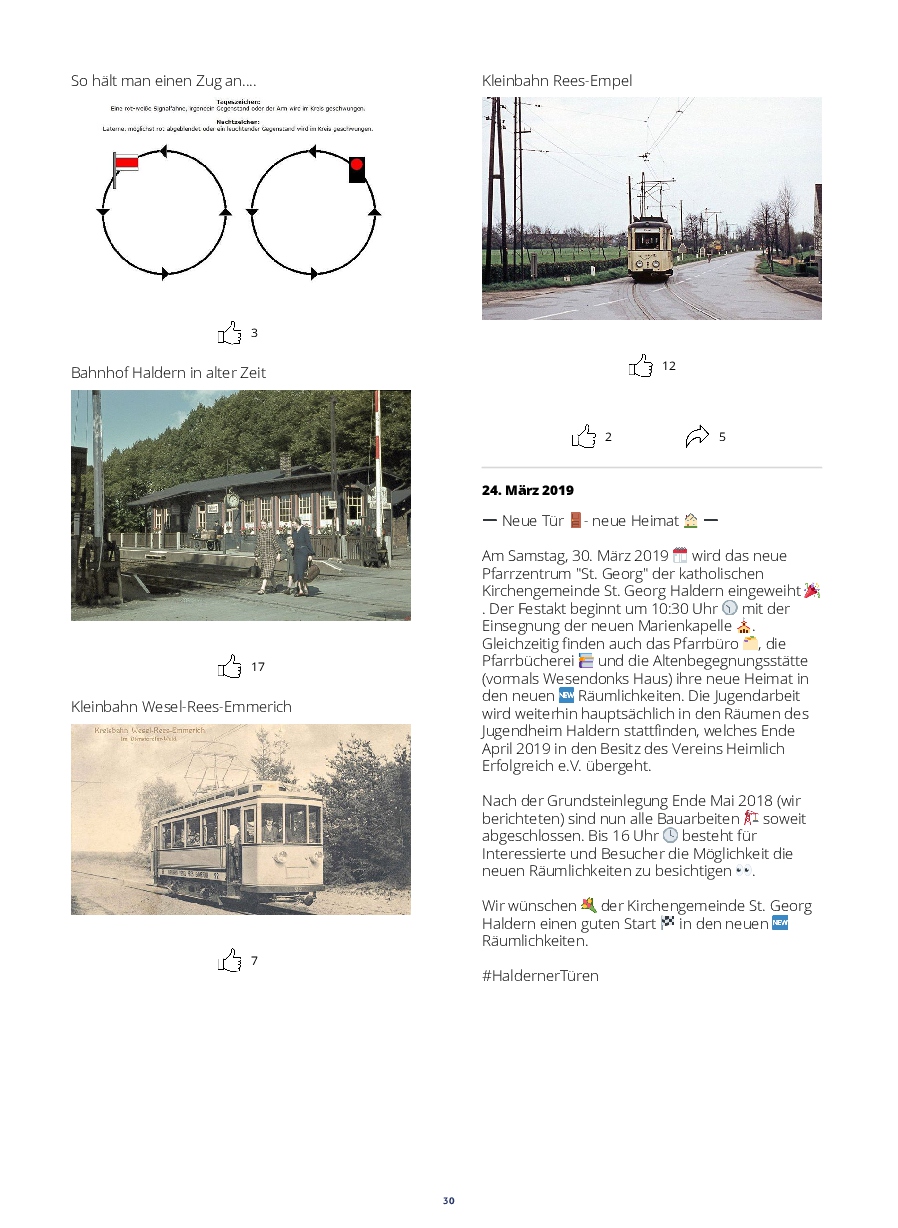 Facebook Chronik des Heimatverein Haldern e.V. für das Jahr 2019