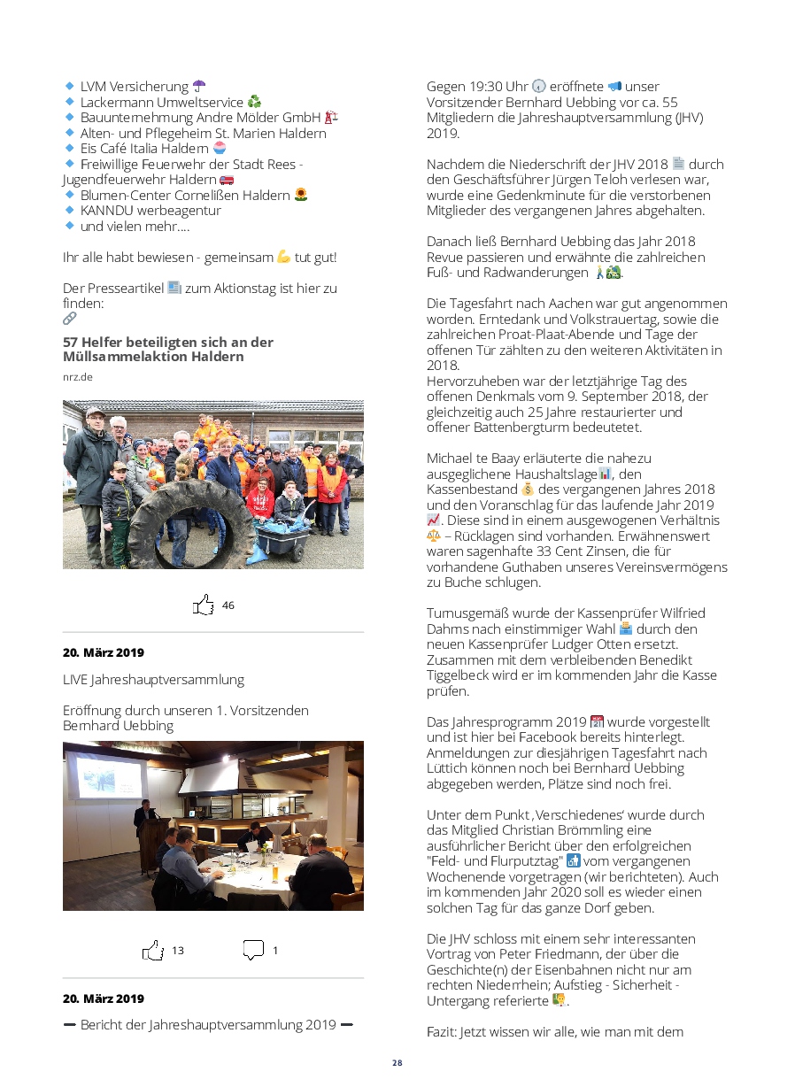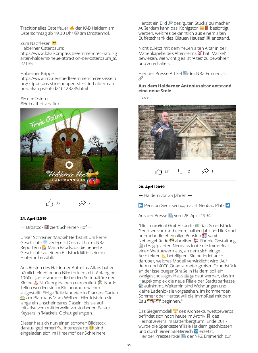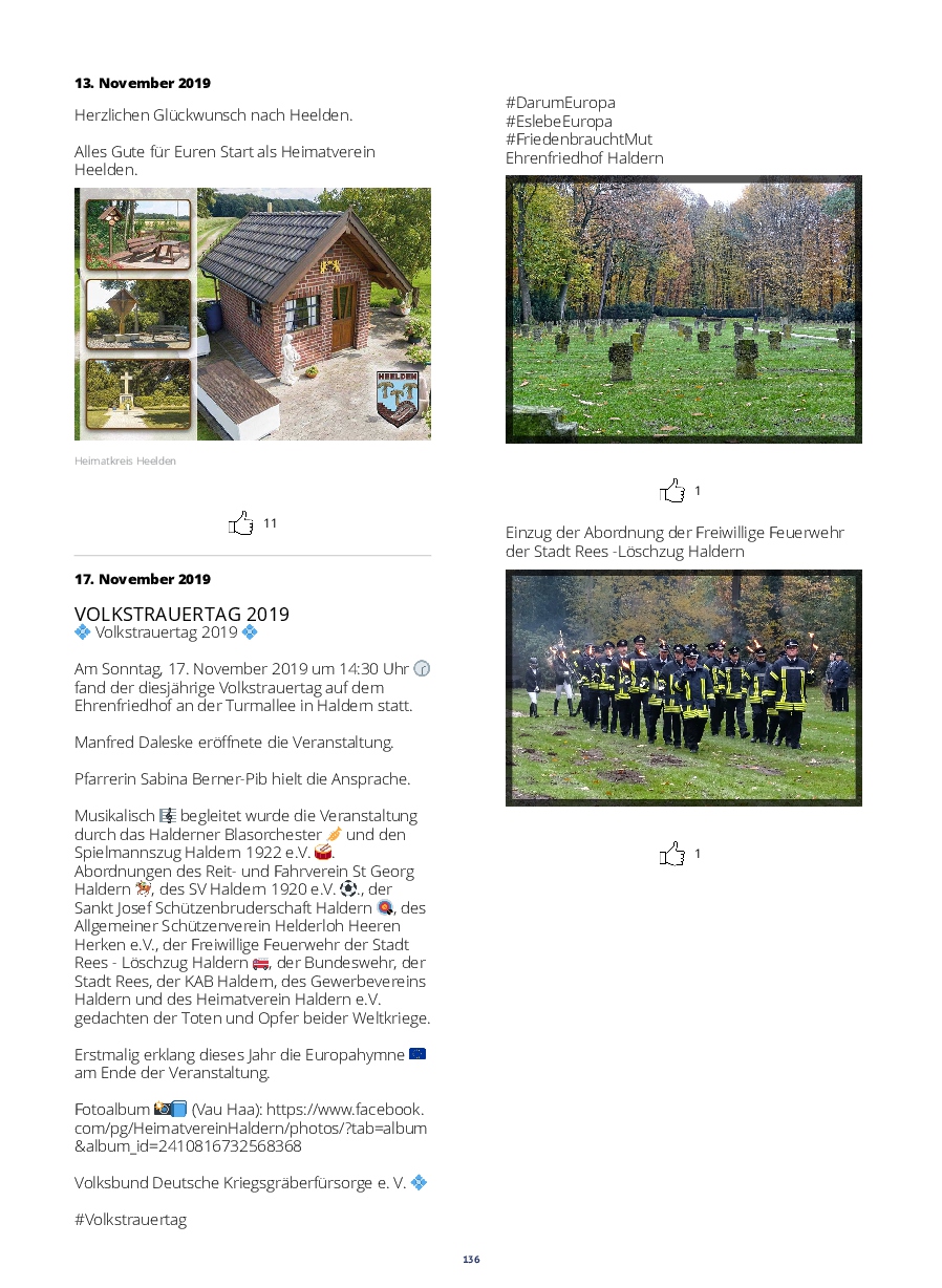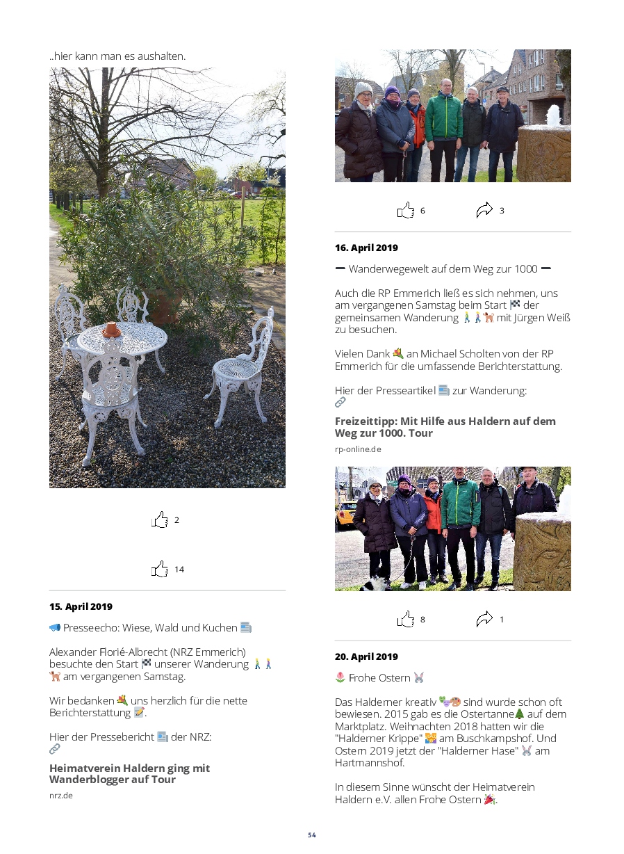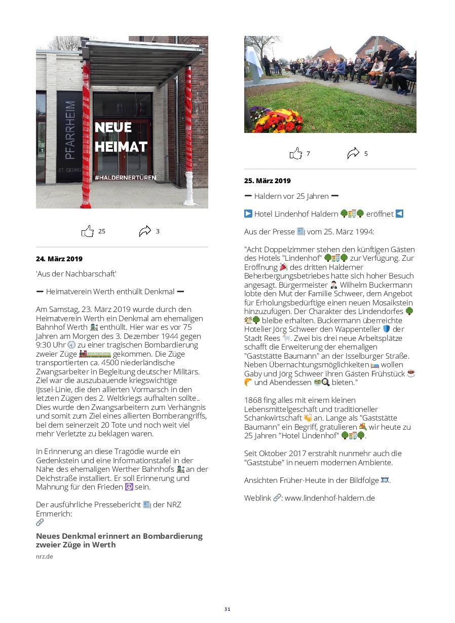 Facebook Chronik des Heimatverein Haldern e.V. für das Jahr 2019