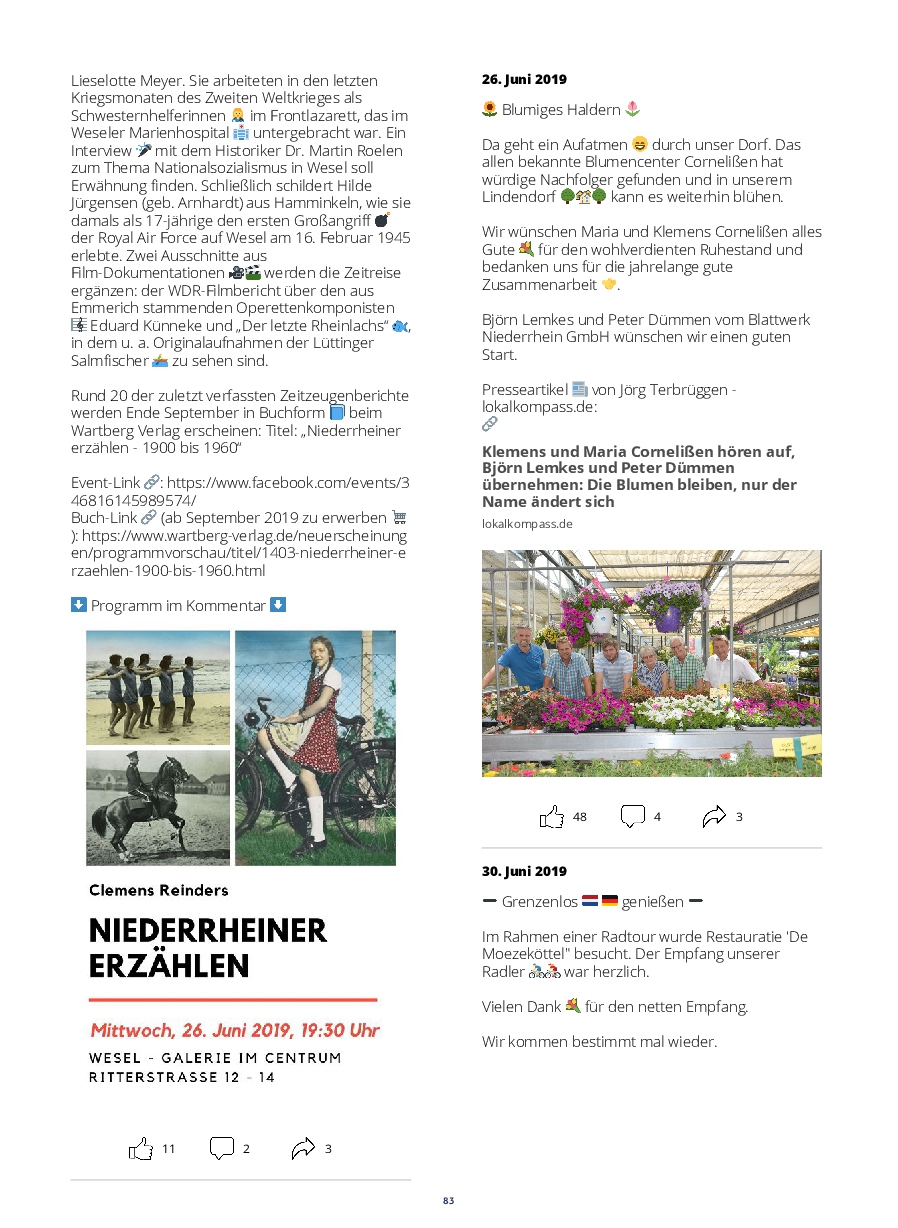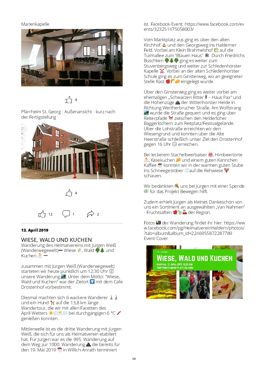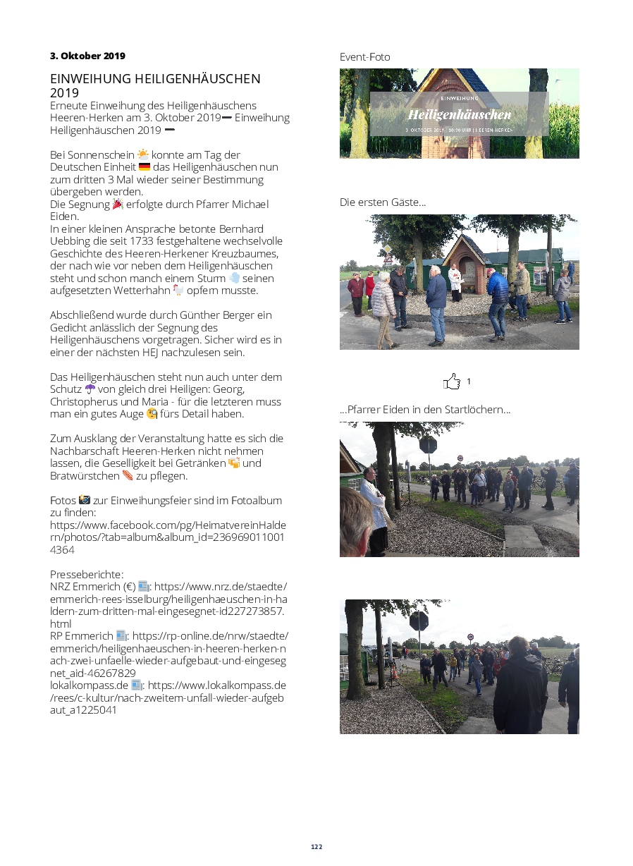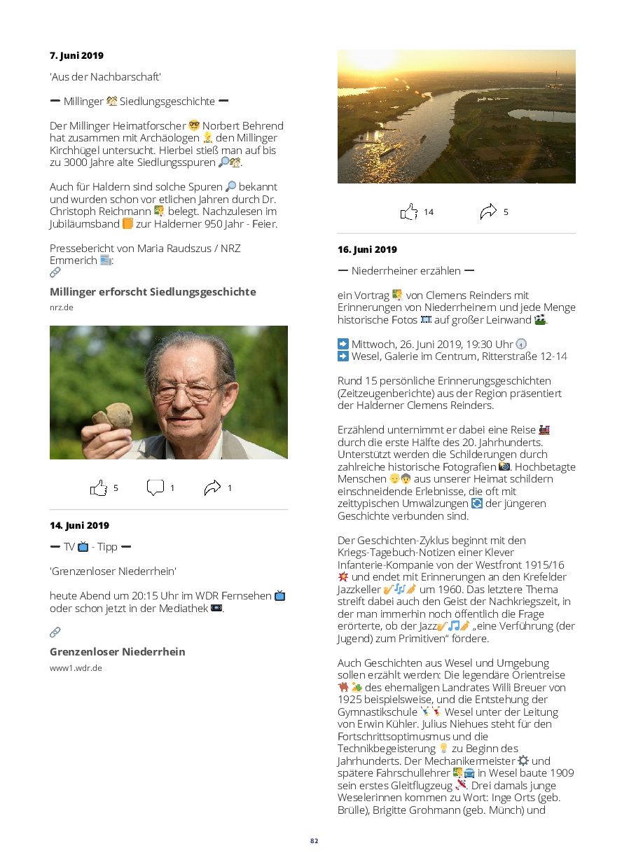 Facebook Chronik des Heimatverein Haldern e.V. für das Jahr 2019