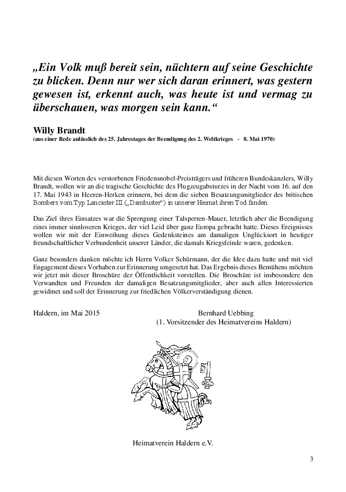 Heft anlässlich der Gedenksteinlegung des Dambuster Memorial Heeren-Herken 2015