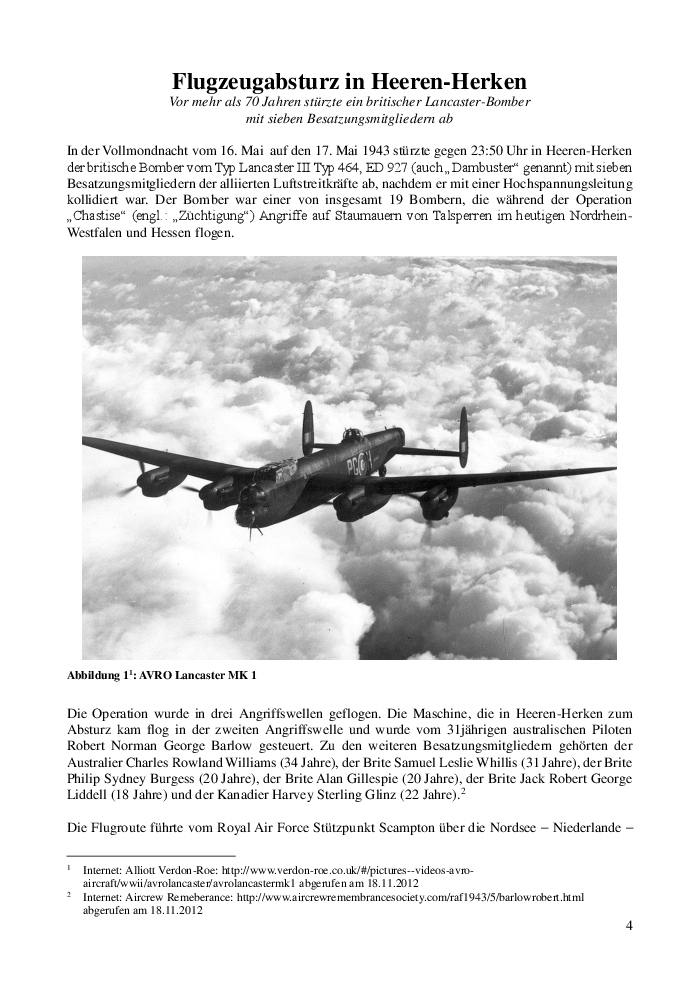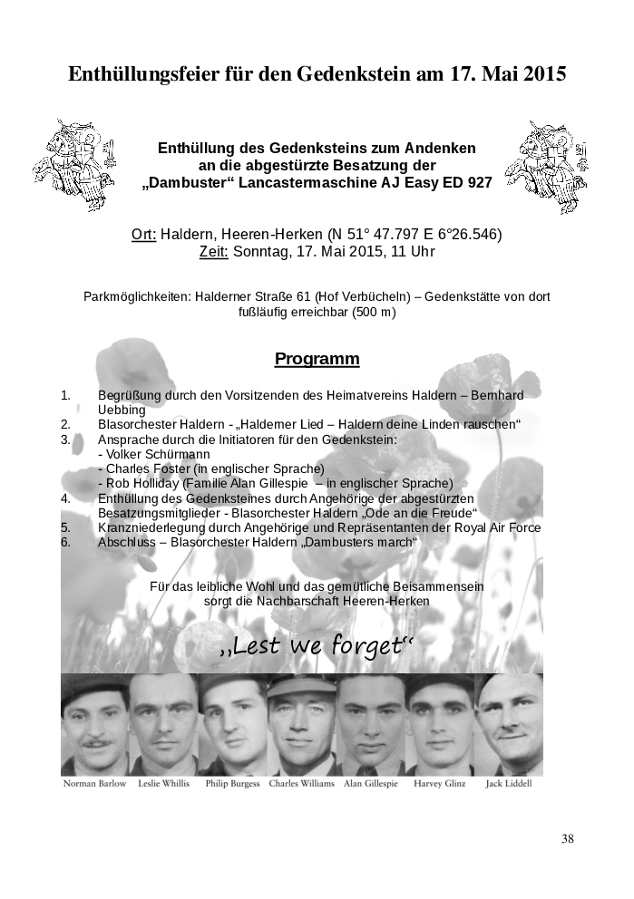 Heft anlässlich der Gedenksteinlegung des Dambuster Memorial Heeren-Herken 2015