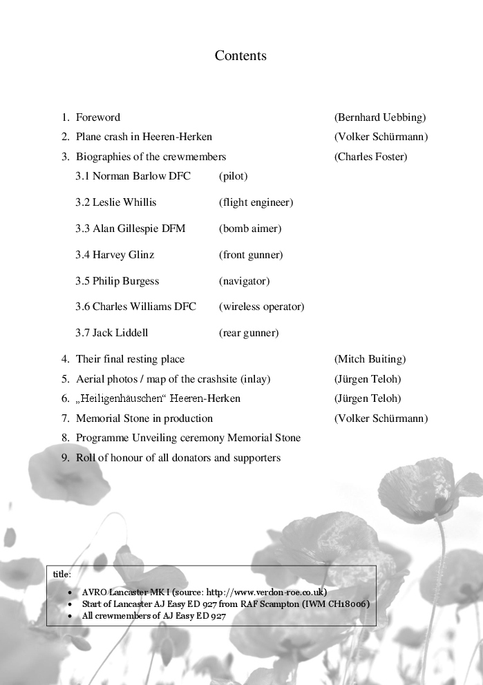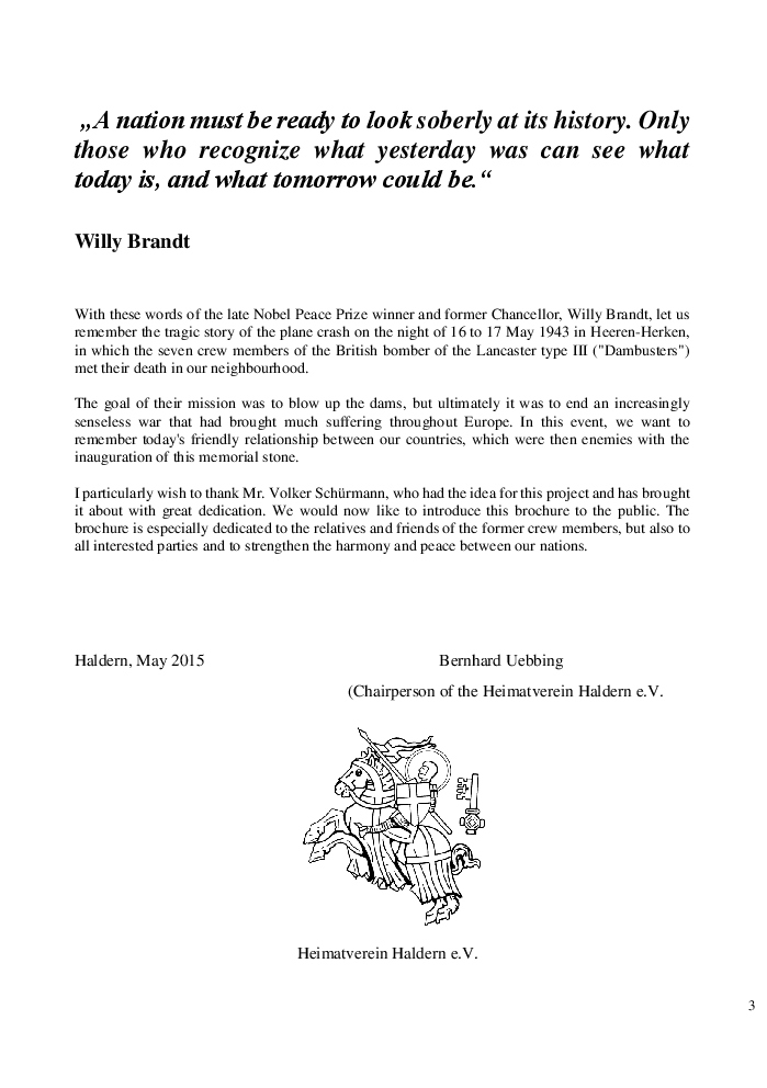 Booklet in case of the unveiling of the Dambuster Memorial Heeren-Herken 2015