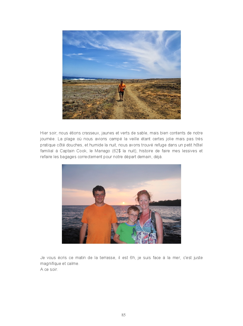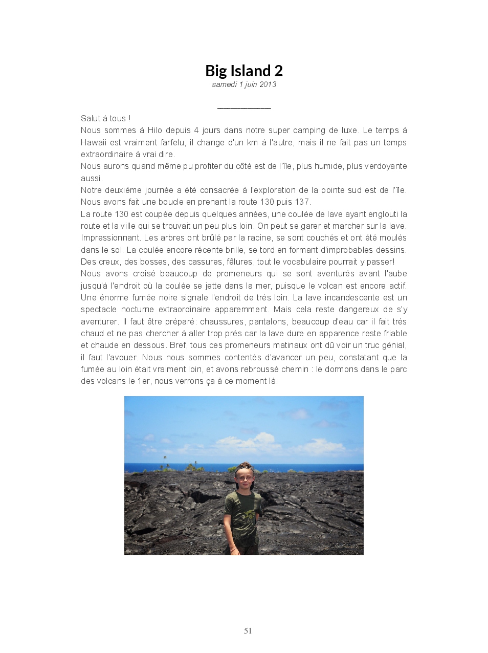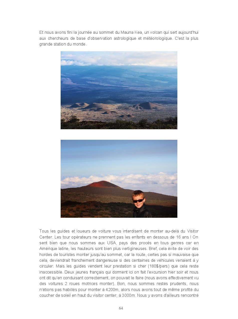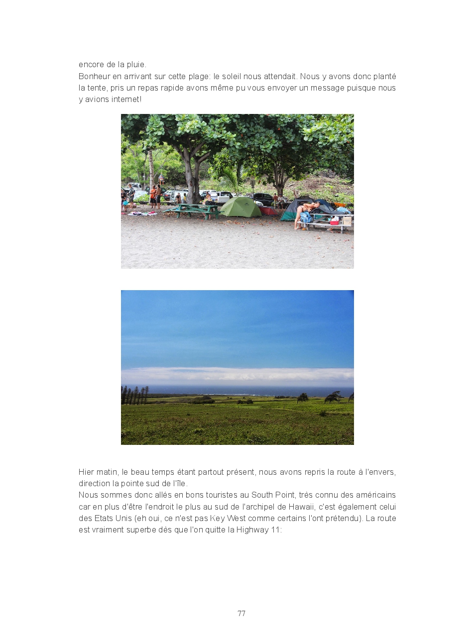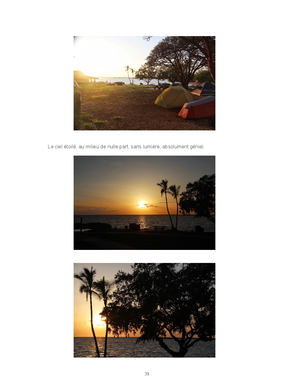 Ce second tome évoque notre périple américain, vaste continent que nous avons traversé en commençant par le sublime archipel de Hawaii, en finissant par Chicago: 2 mois de camping en tente de toile qui nous aura fait affronter la chaleur comme le froid!