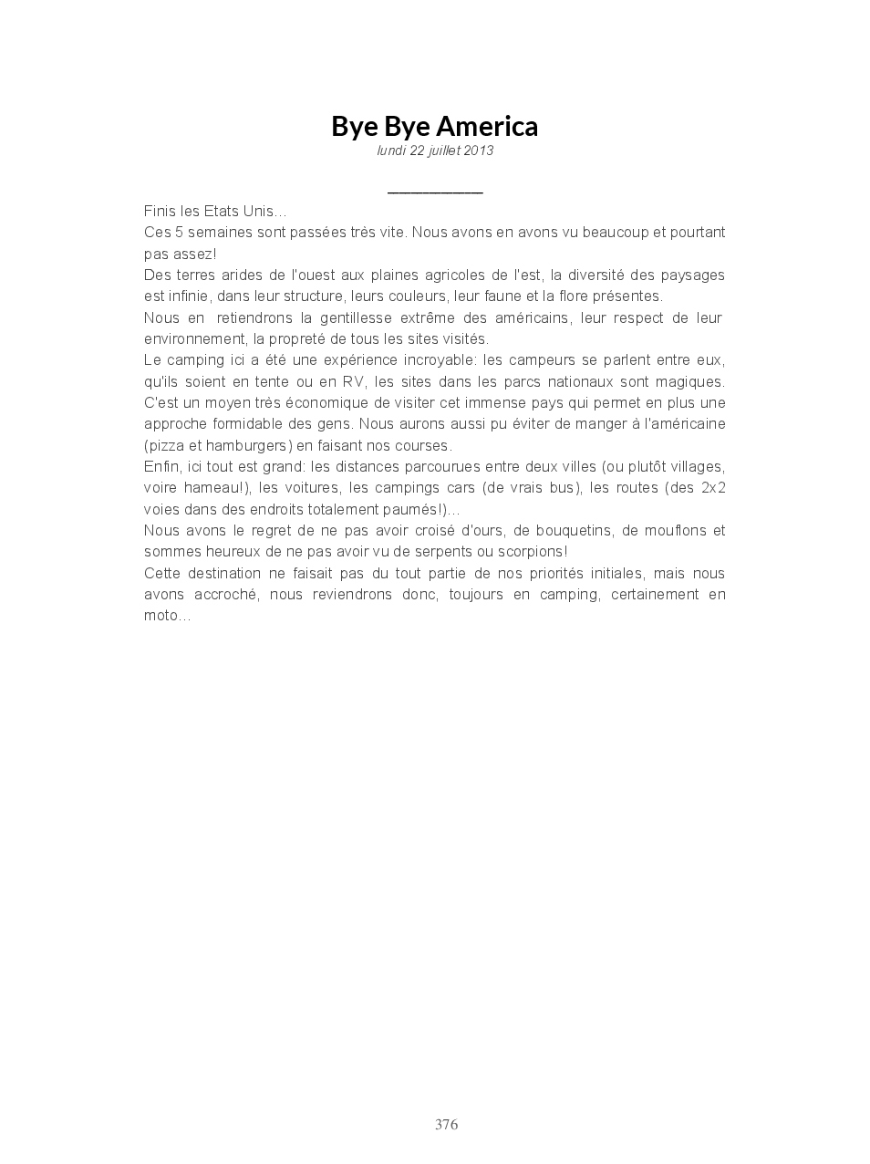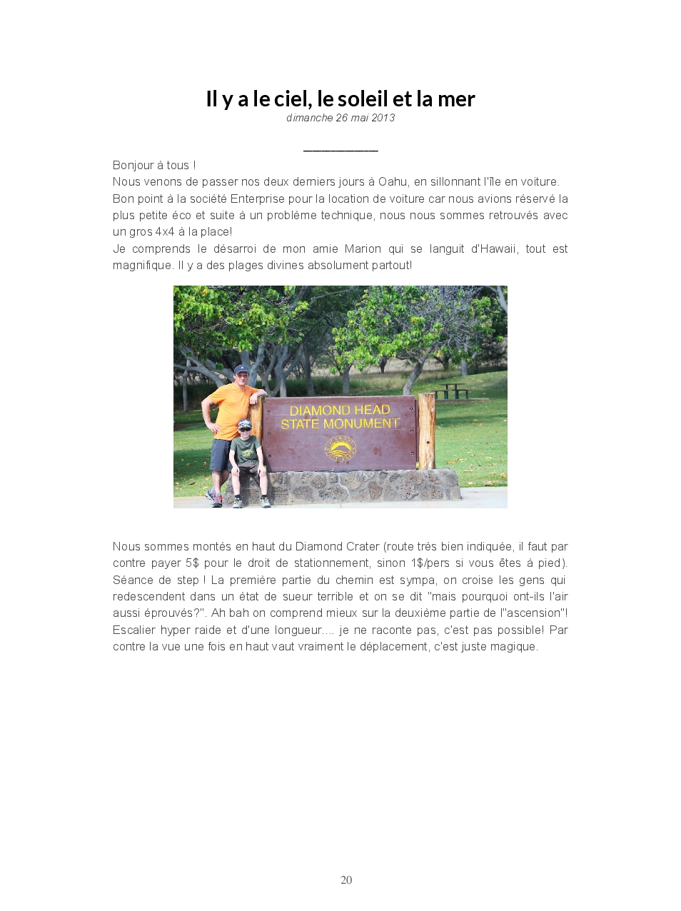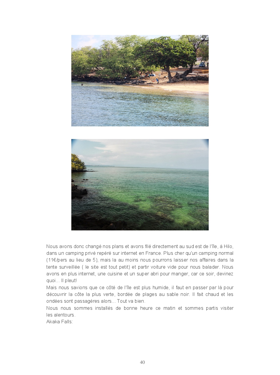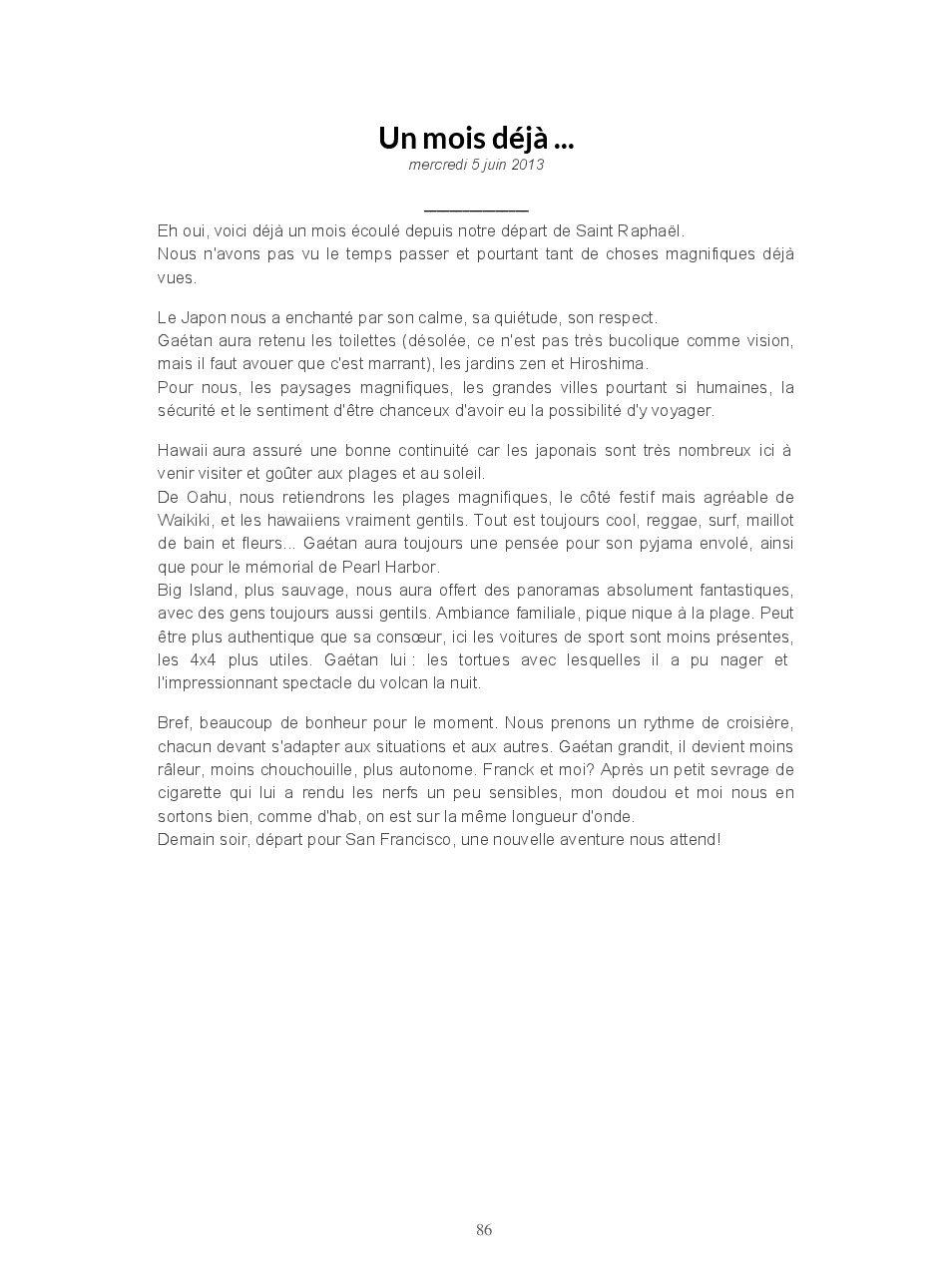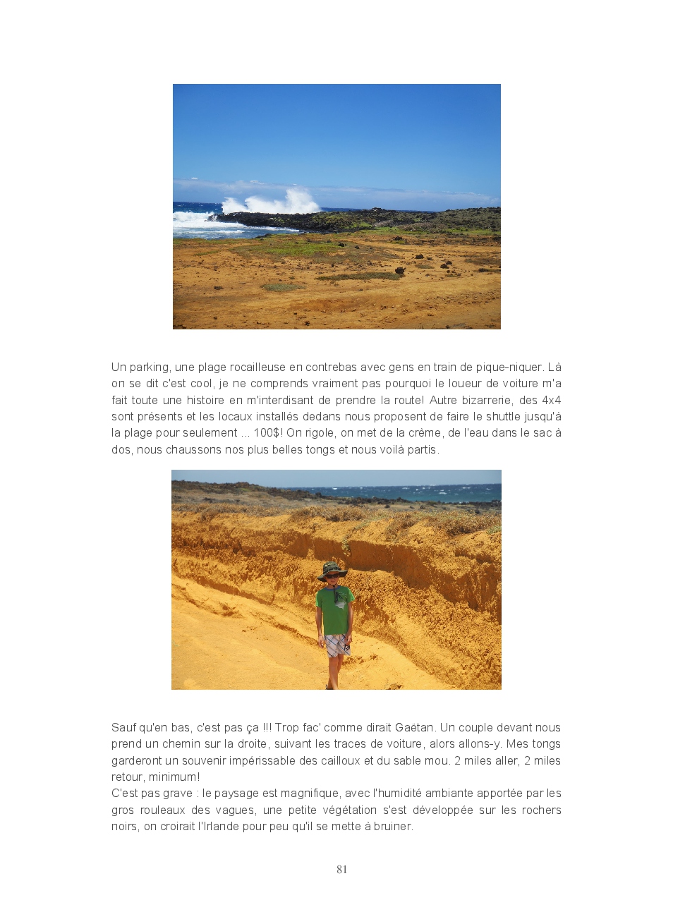 Ce second tome évoque notre périple américain, vaste continent que nous avons traversé en commençant par le sublime archipel de Hawaii, en finissant par Chicago: 2 mois de camping en tente de toile qui nous aura fait affronter la chaleur comme le froid!