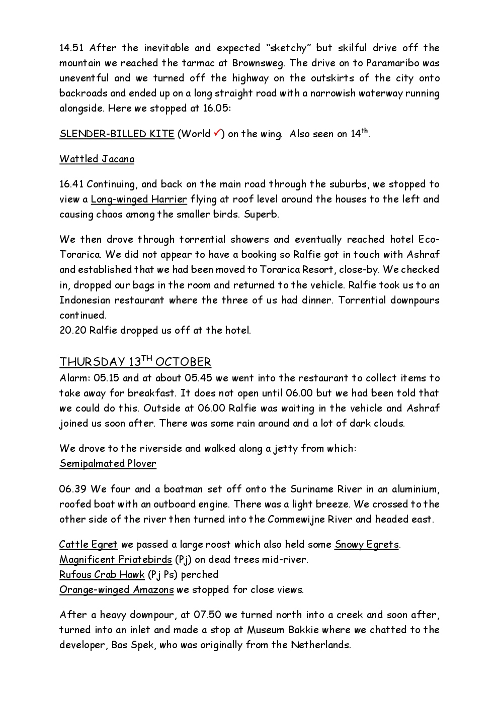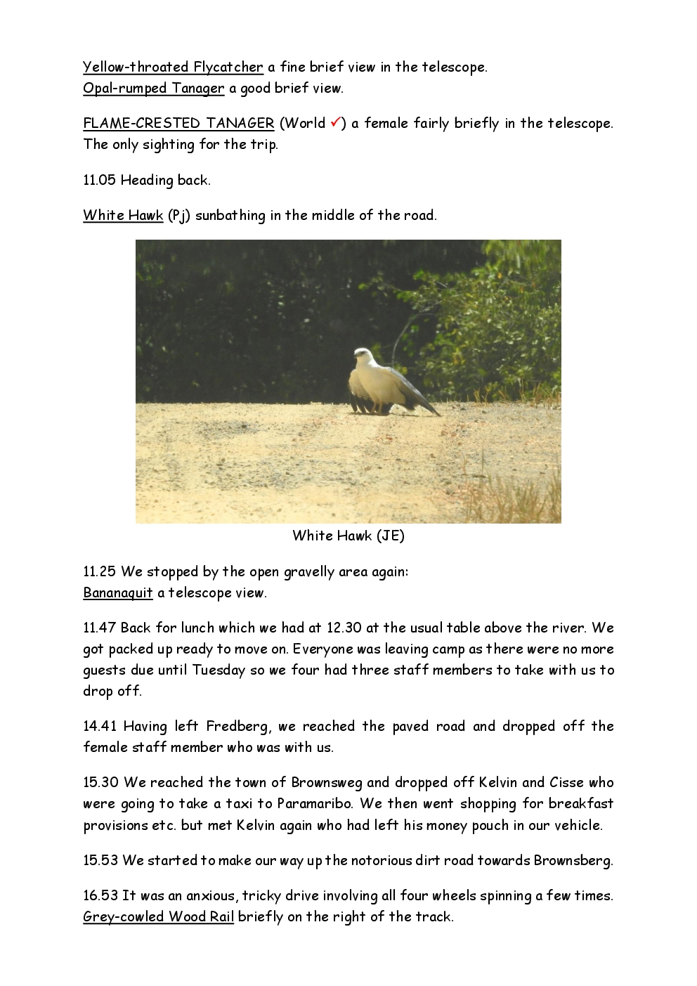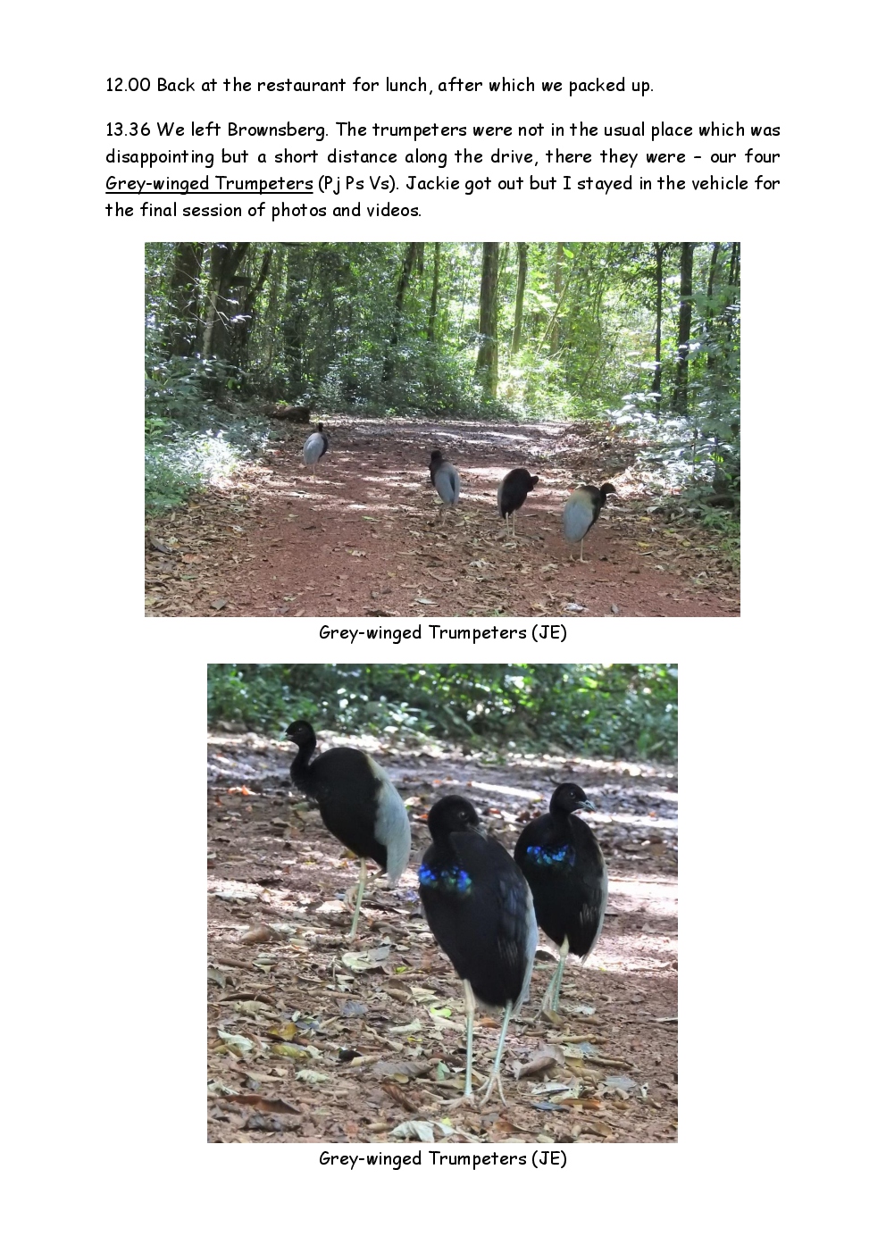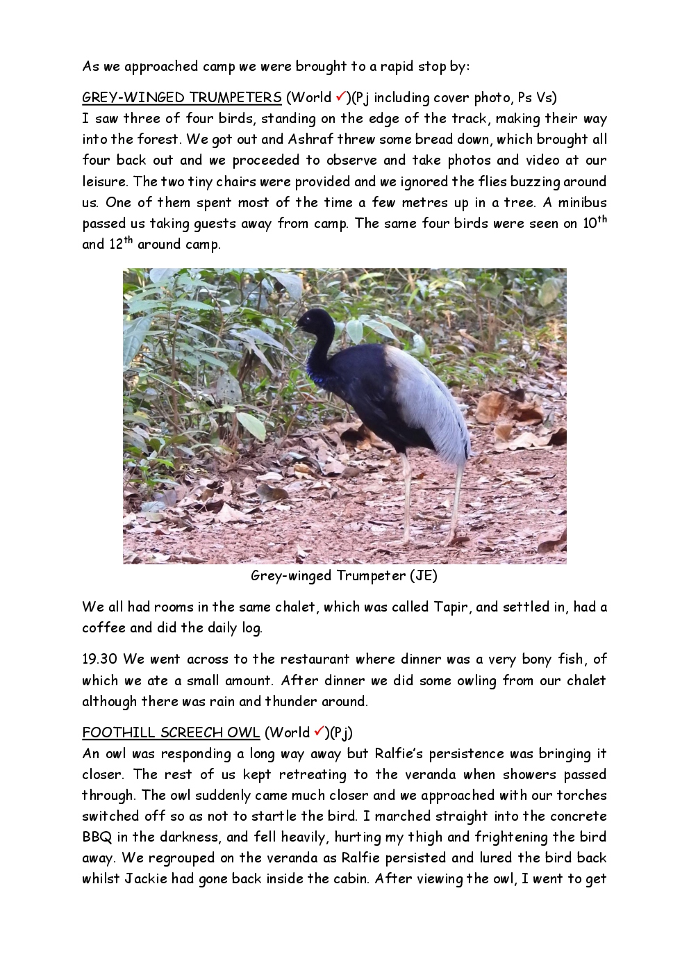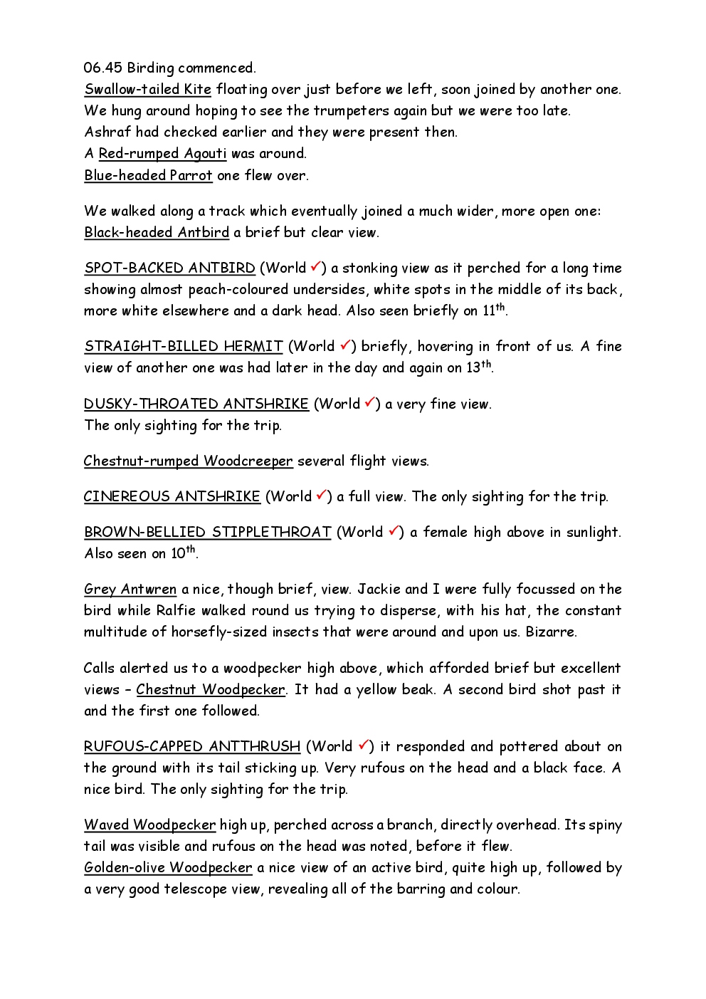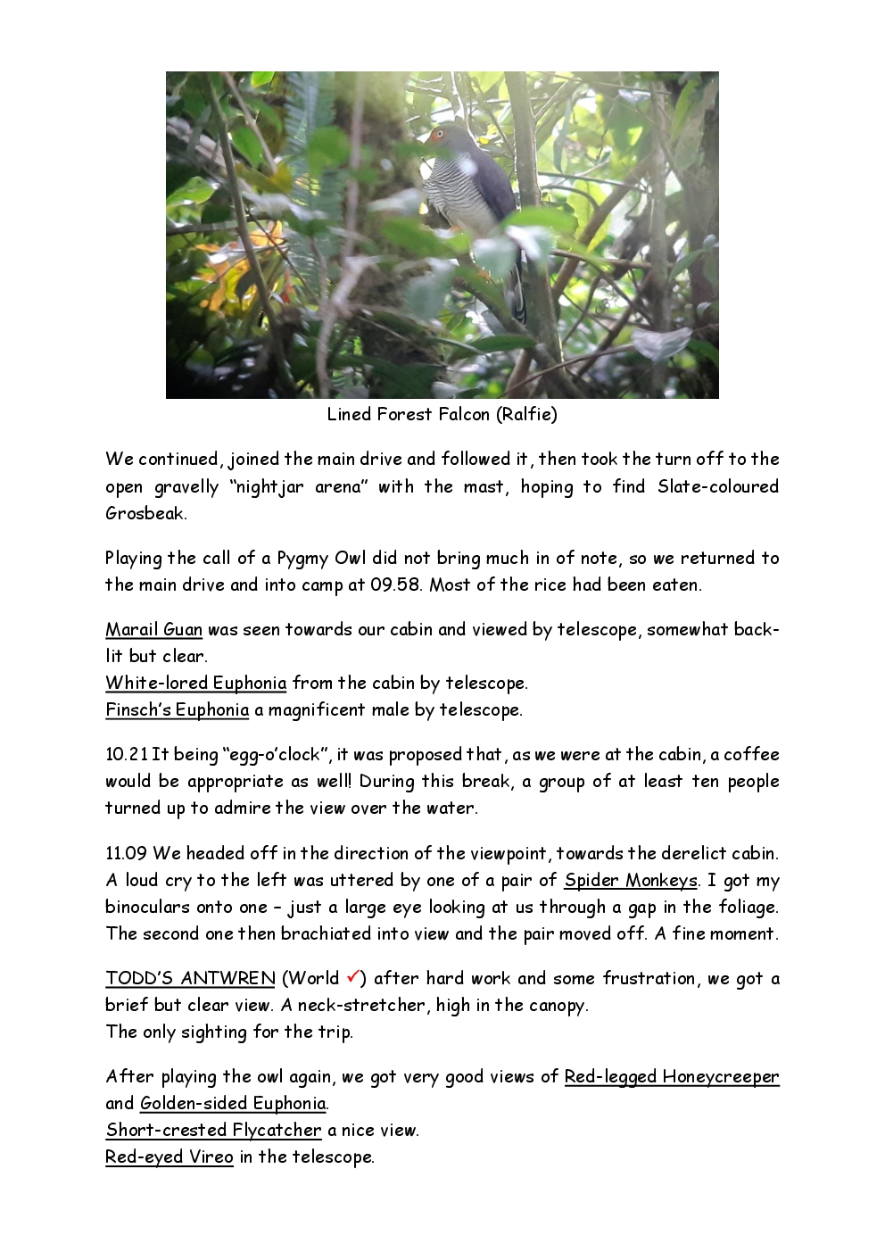 In 2022, Steve and Jackie embarked on a tailor-made birding trip to Suriname, organised by Naturetrek. They hoped to see, amongst many other species of bird, the Grey-winged Trumpeter which they were unfortunate to miss in neighbouring Guyana in 2019. This would complete a long-term project to see species from all of the 108 families of non-passerine birds. They were fortunate enough to have the services of two outstanding bird guides, Ashraf Tilburg and Rasool Boobo Ralfie Aseni both of whom had incredible field-craft and infectious humour, which ensured that a most successful and enjoyable time was had.