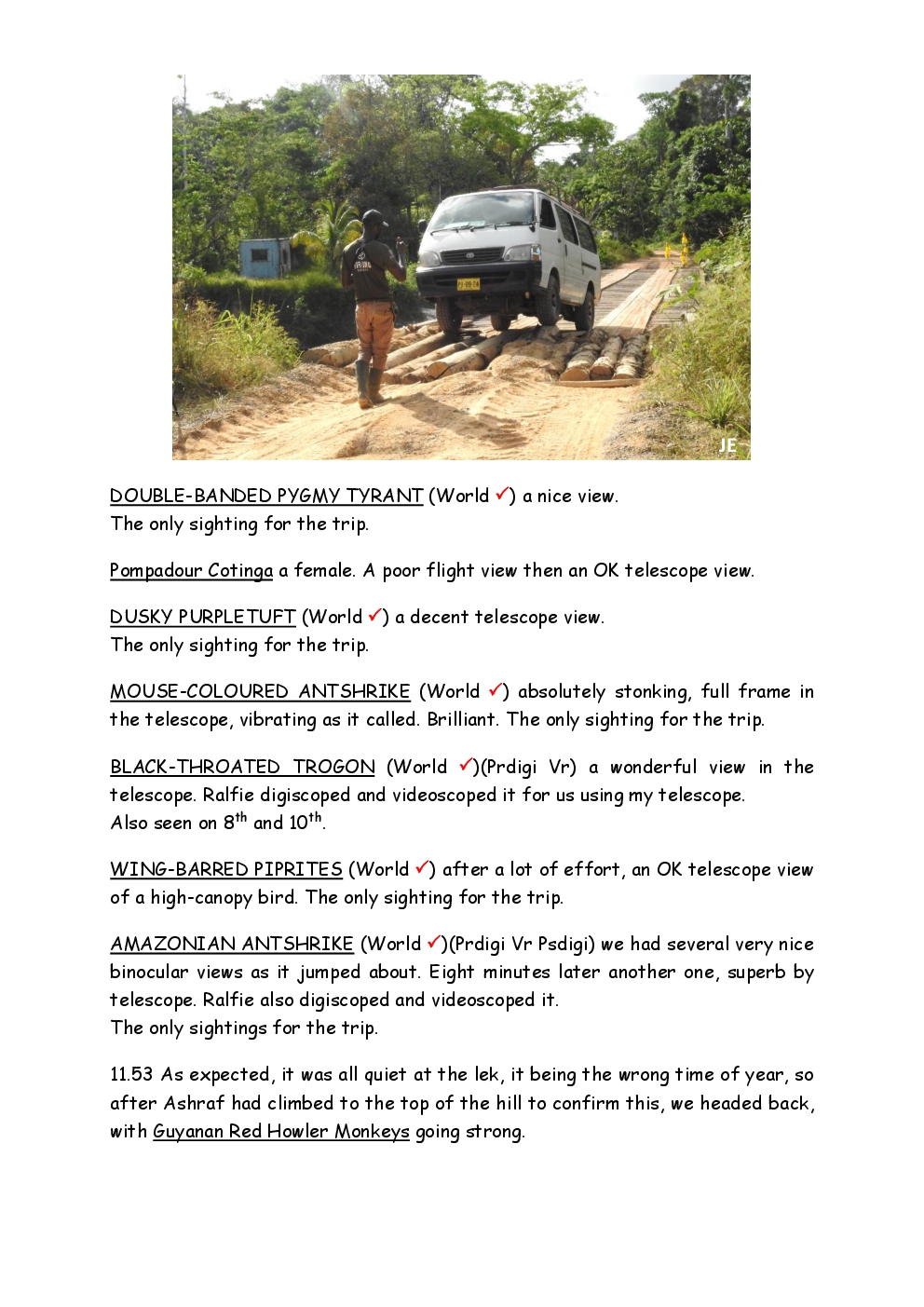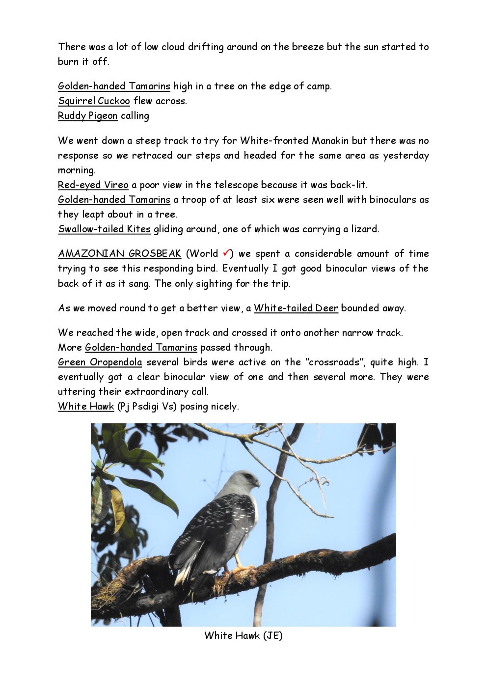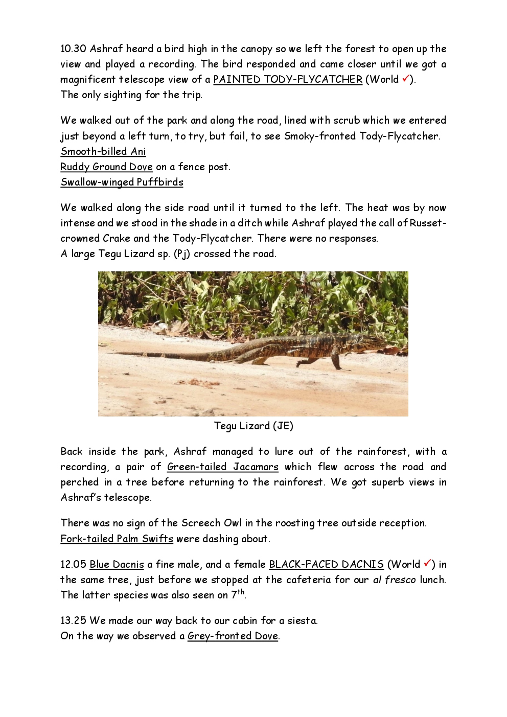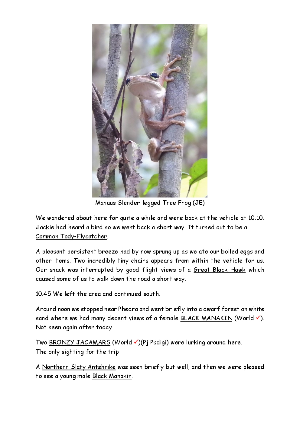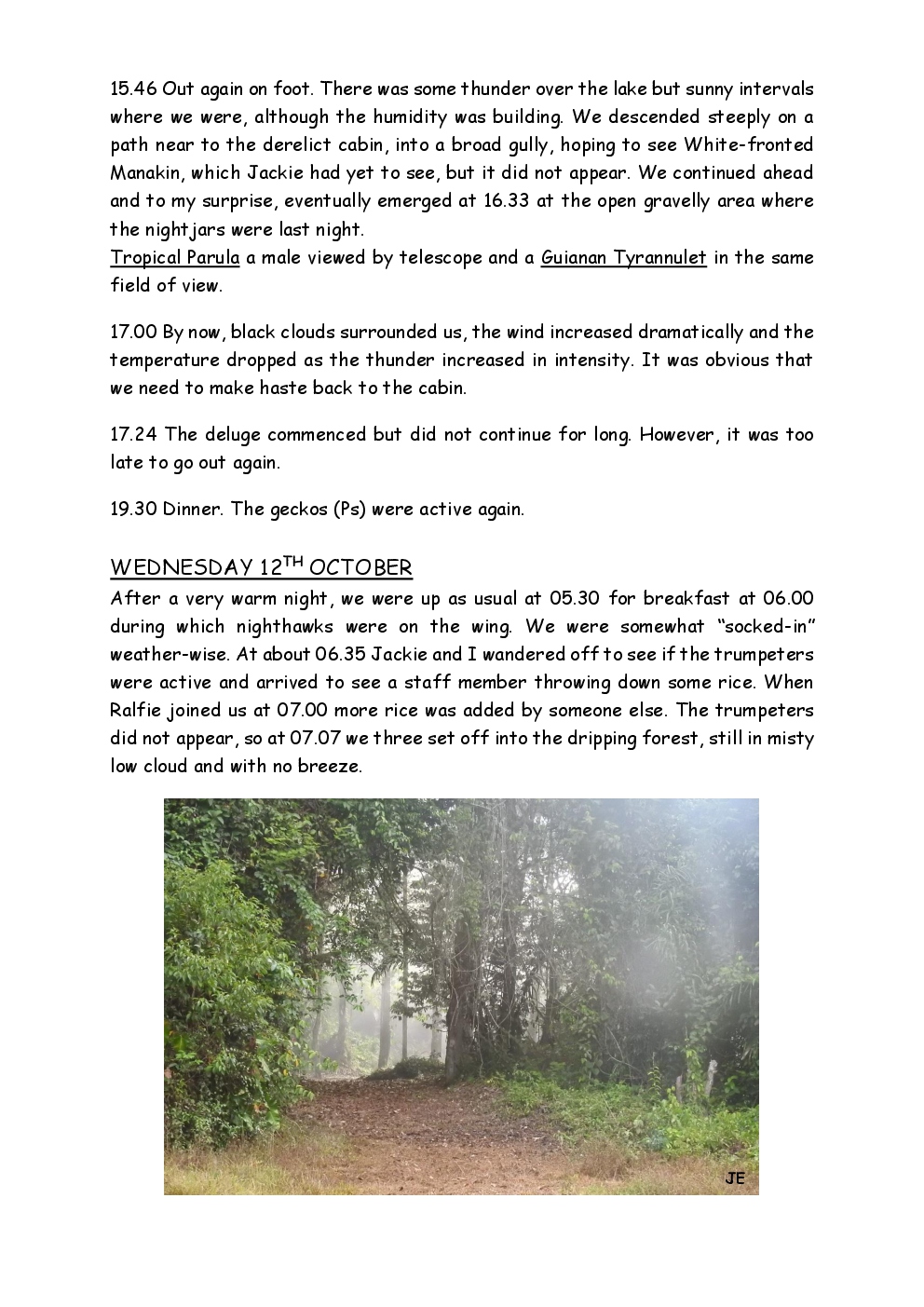 In 2022, Steve and Jackie embarked on a tailor-made birding trip to Suriname, organised by Naturetrek. They hoped to see, amongst many other species of bird, the Grey-winged Trumpeter which they were unfortunate to miss in neighbouring Guyana in 2019. This would complete a long-term project to see species from all of the 108 families of non-passerine birds. They were fortunate enough to have the services of two outstanding bird guides, Ashraf Tilburg and Rasool Boobo Ralfie Aseni both of whom had incredible field-craft and infectious humour, which ensured that a most successful and enjoyable time was had.