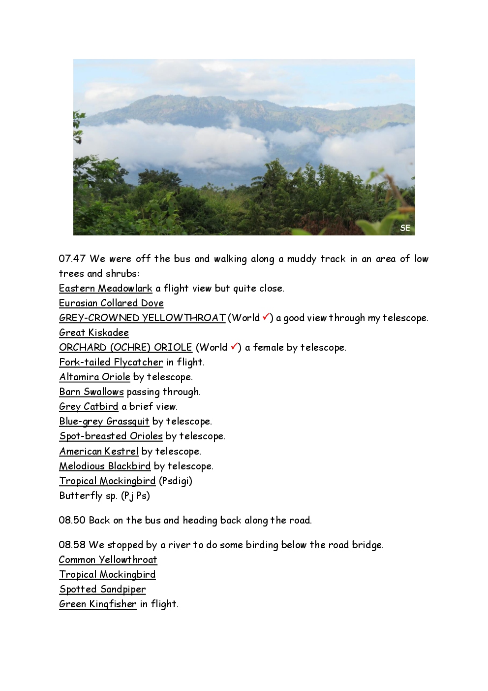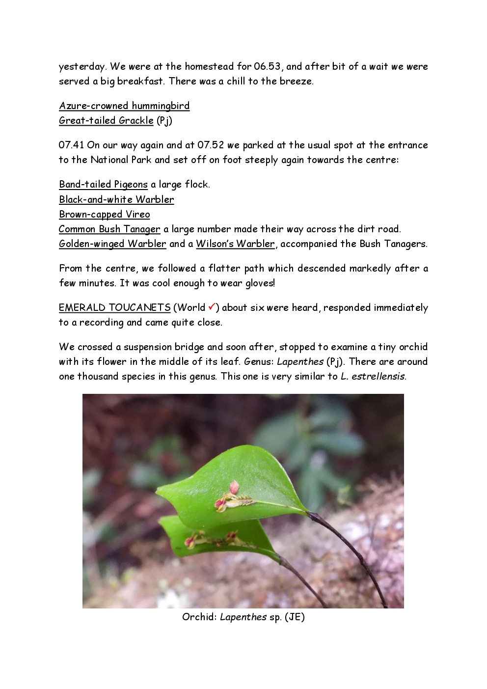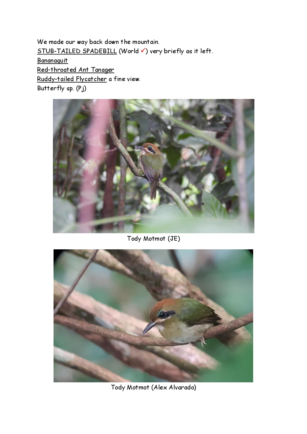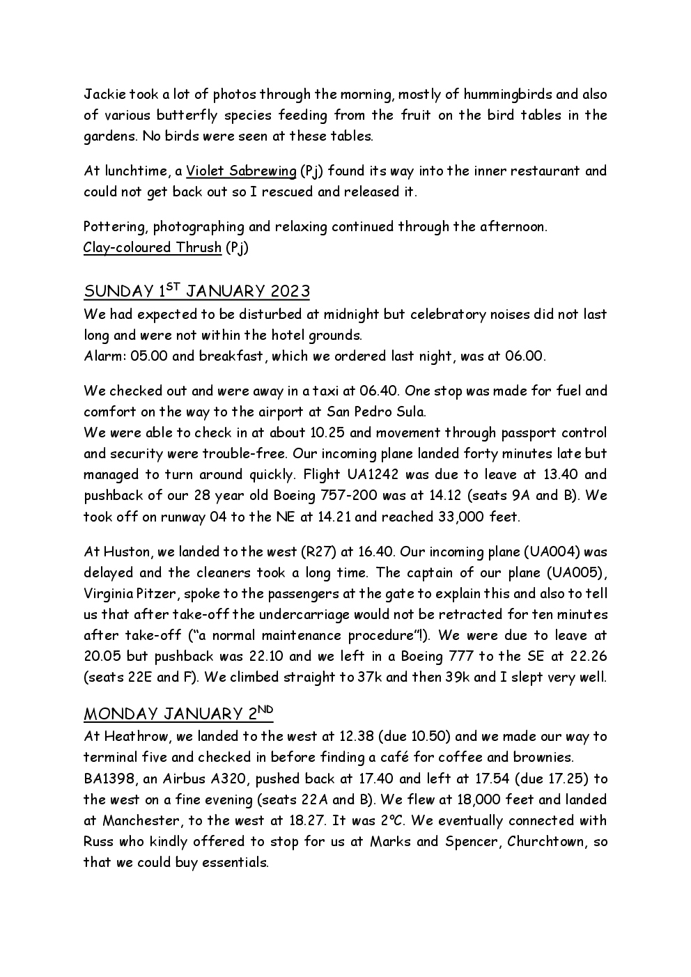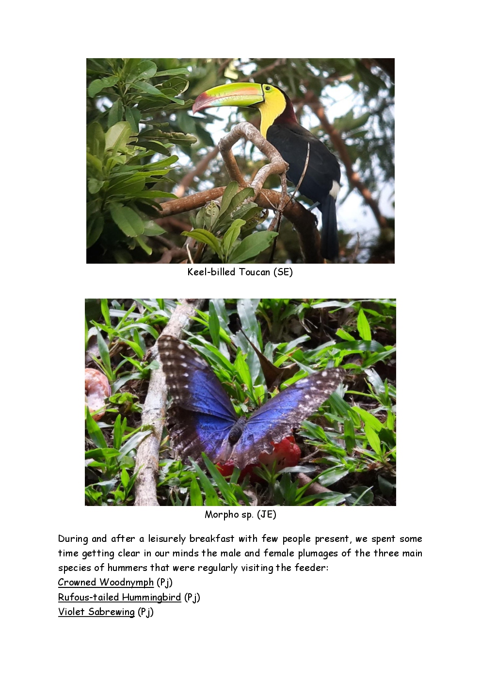 Over Christmas and New Year 2022/3, Steve and Jackie fled the UK winter and joined a Naturetrek group, birding in Honduras. They and three others plus Alex Alvarado, their guide, first spent a few days in the mountains, where the highlight was a male Resplendent Quetzal, before joining five more travellers for the lowland part of the trip. The weather was not good during the latter but nevertheless, a wide diversity of birds and other wildlife was seen. Steve and Jackie remained there, at Pico Bonito Lodge for two extra days, when the sun shone once more and the rain ceased.