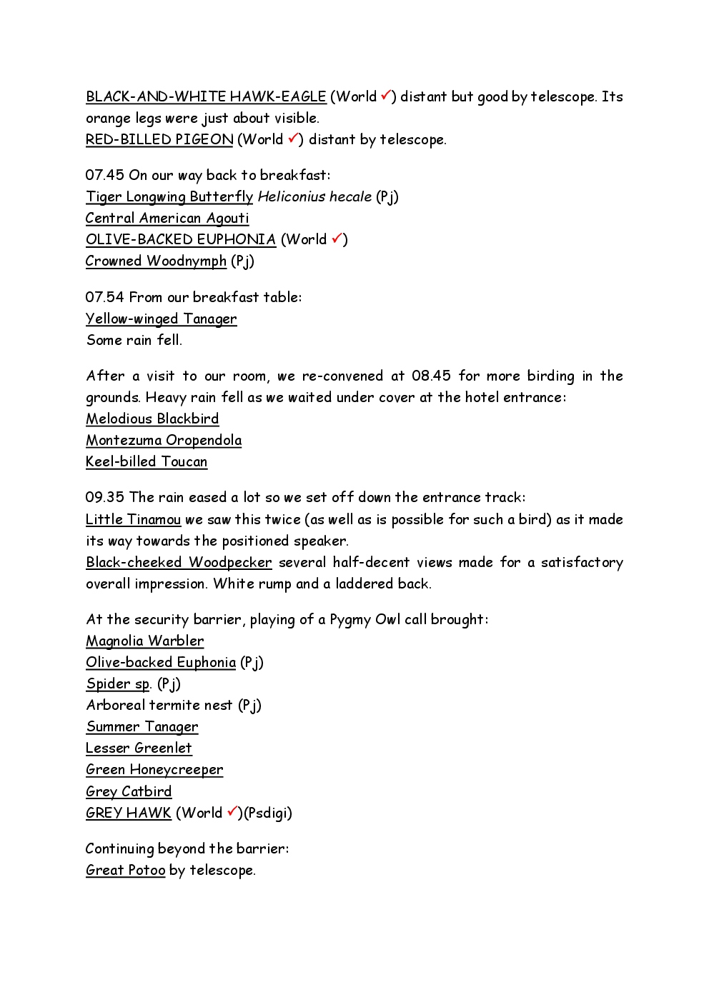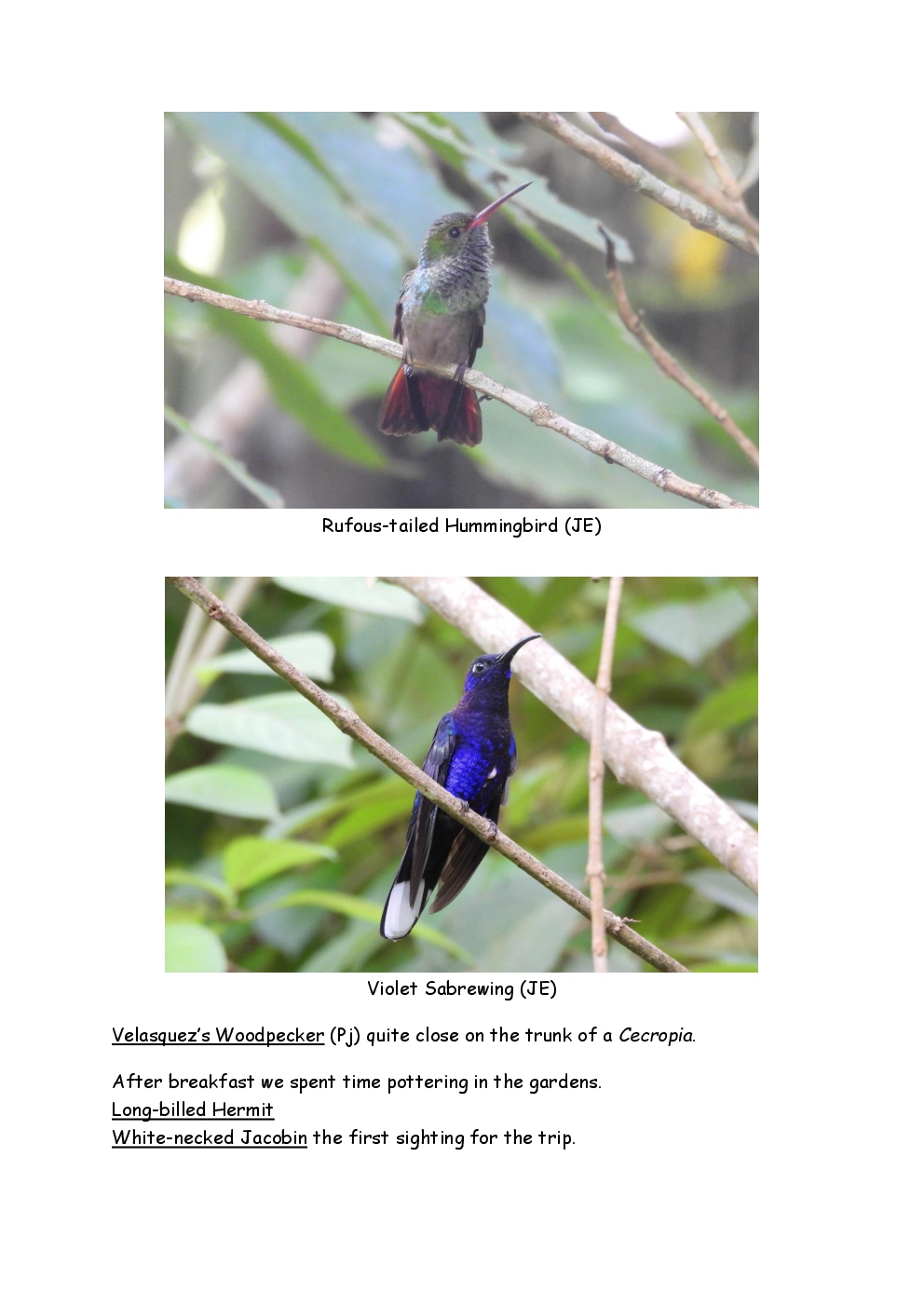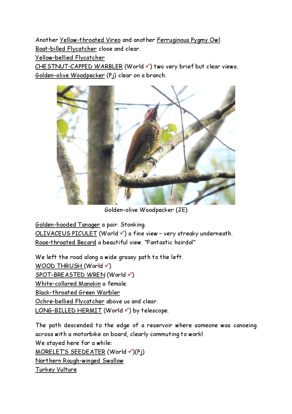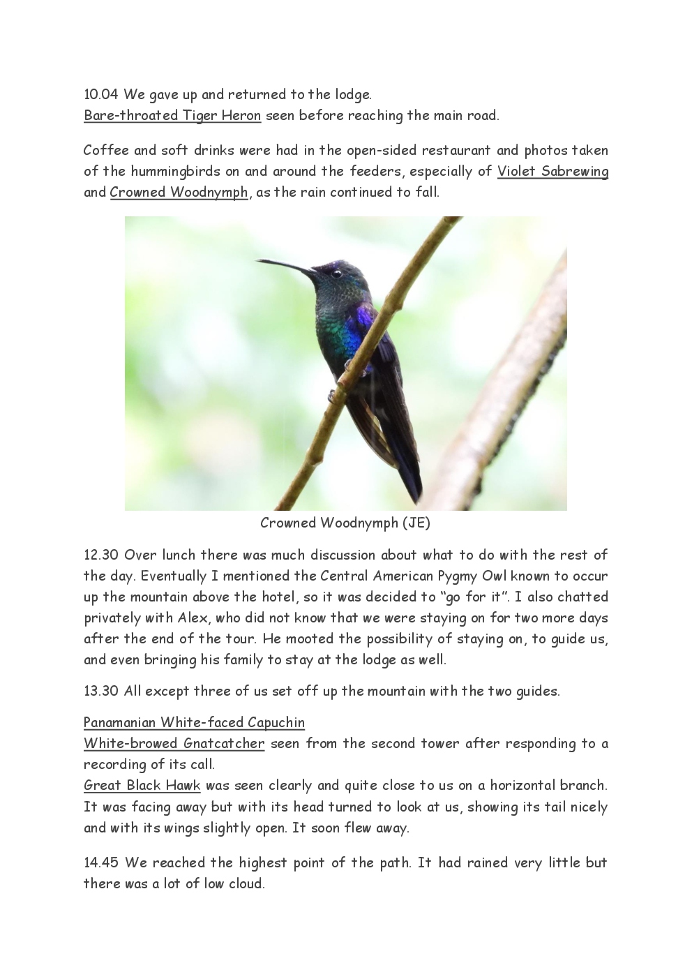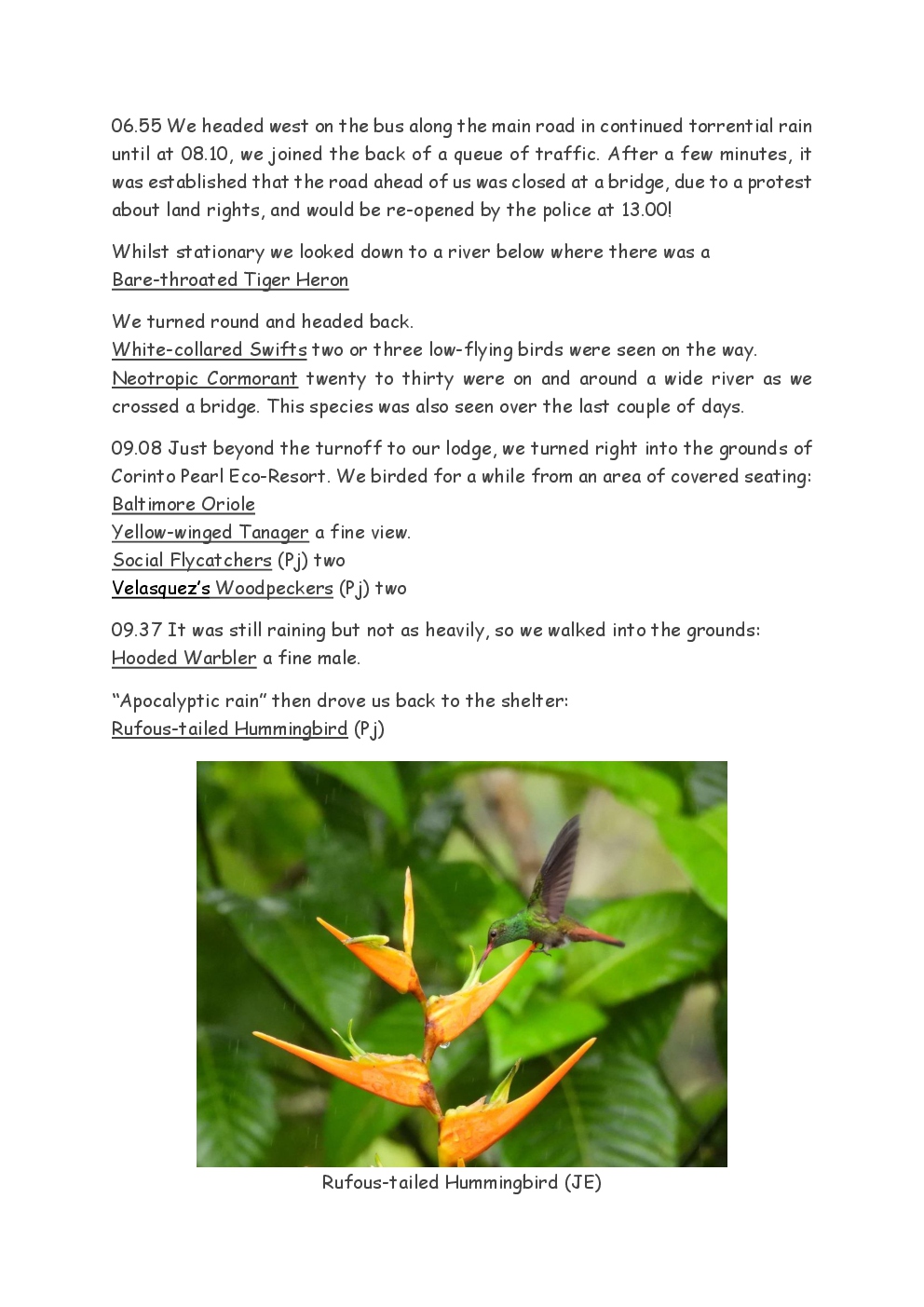 Over Christmas and New Year 2022/3, Steve and Jackie fled the UK winter and joined a Naturetrek group, birding in Honduras. They and three others plus Alex Alvarado, their guide, first spent a few days in the mountains, where the highlight was a male Resplendent Quetzal, before joining five more travellers for the lowland part of the trip. The weather was not good during the latter but nevertheless, a wide diversity of birds and other wildlife was seen. Steve and Jackie remained there, at Pico Bonito Lodge for two extra days, when the sun shone once more and the rain ceased.