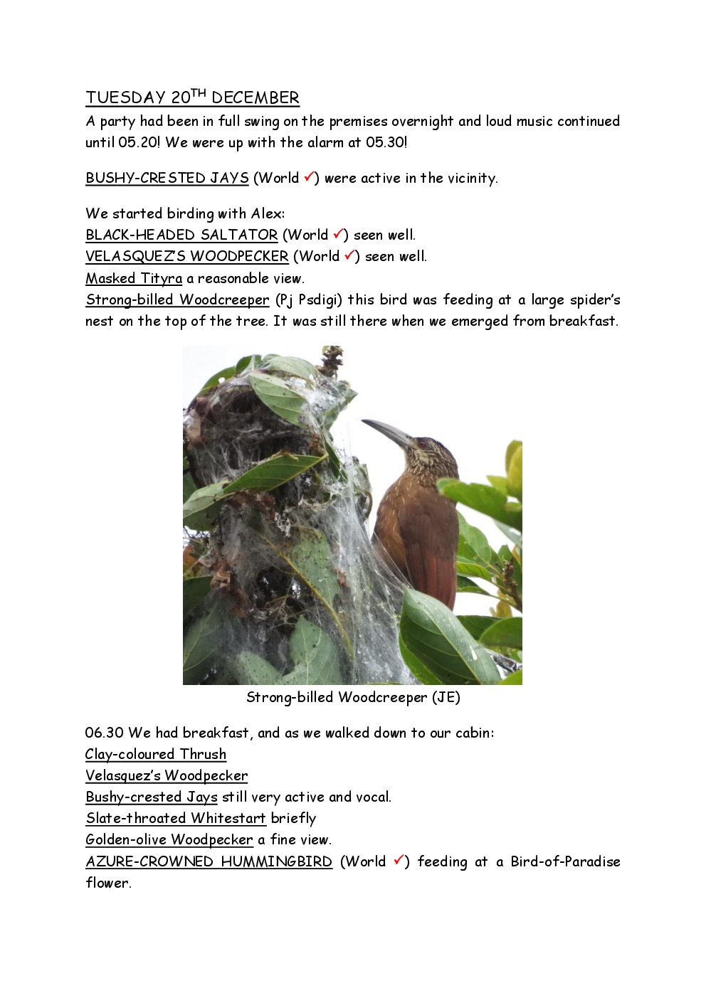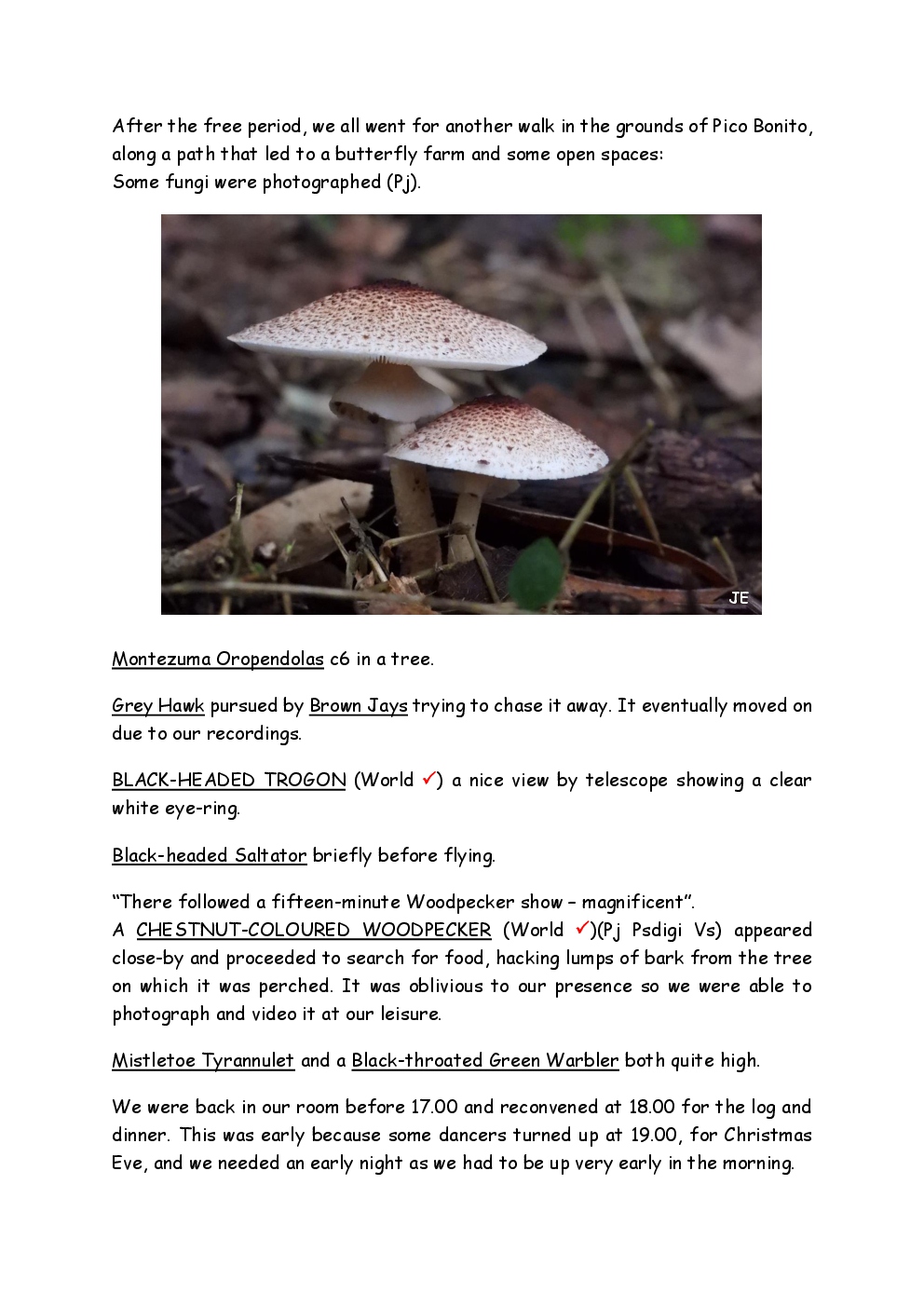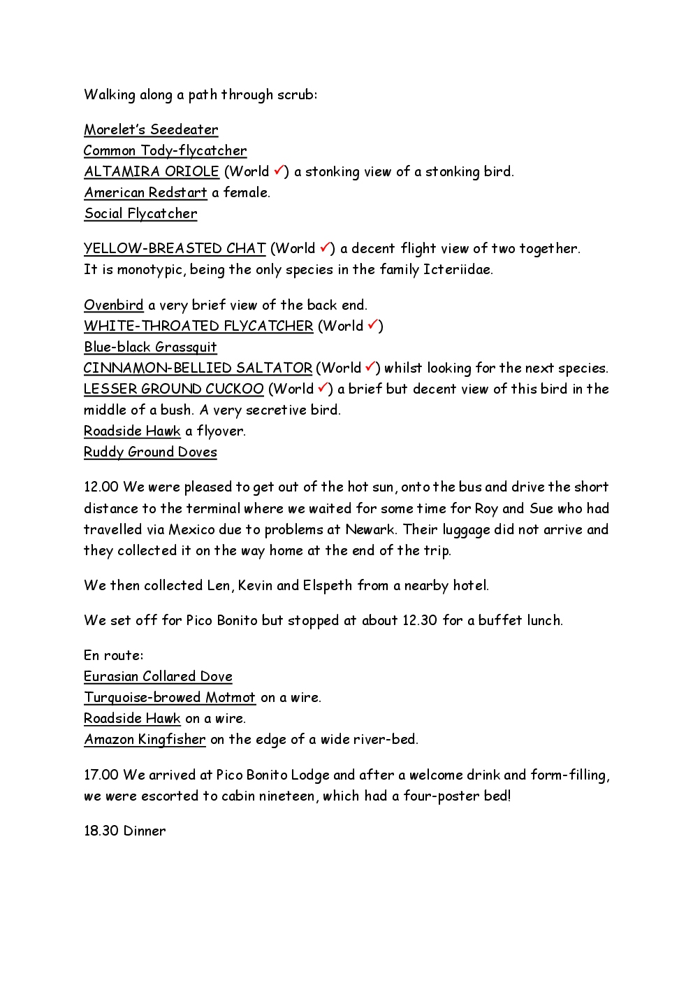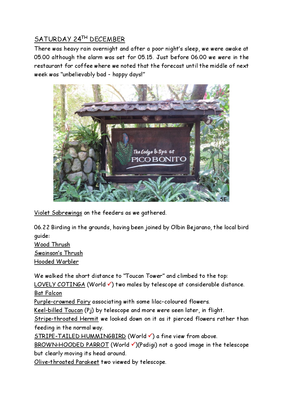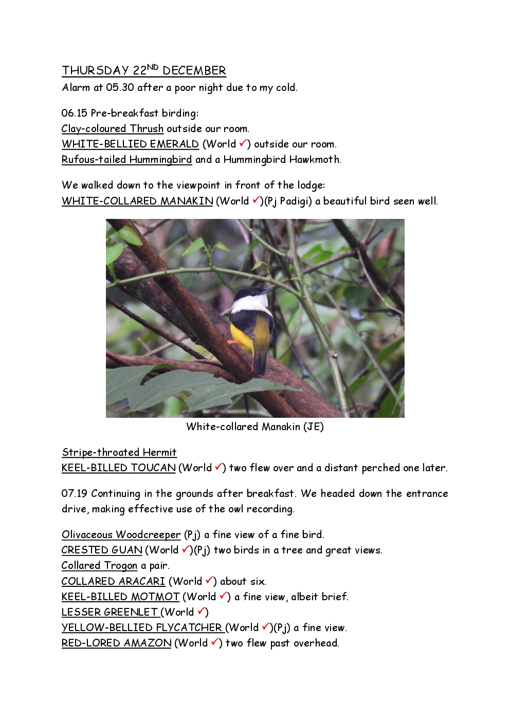 Over Christmas and New Year 2022/3, Steve and Jackie fled the UK winter and joined a Naturetrek group, birding in Honduras. They and three others plus Alex Alvarado, their guide, first spent a few days in the mountains, where the highlight was a male Resplendent Quetzal, before joining five more travellers for the lowland part of the trip. The weather was not good during the latter but nevertheless, a wide diversity of birds and other wildlife was seen. Steve and Jackie remained there, at Pico Bonito Lodge for two extra days, when the sun shone once more and the rain ceased.