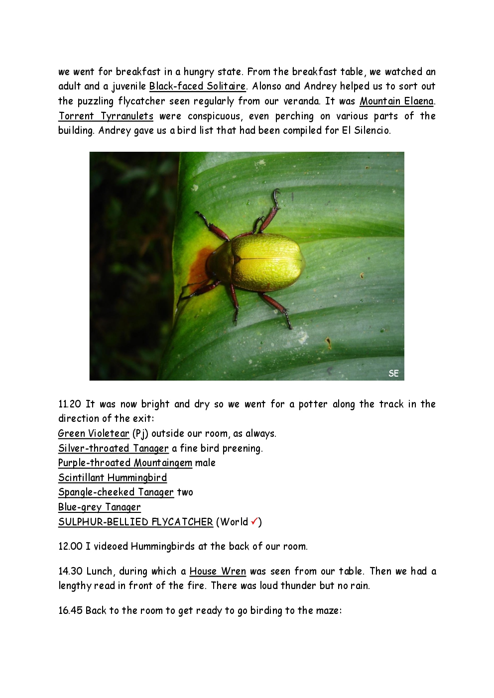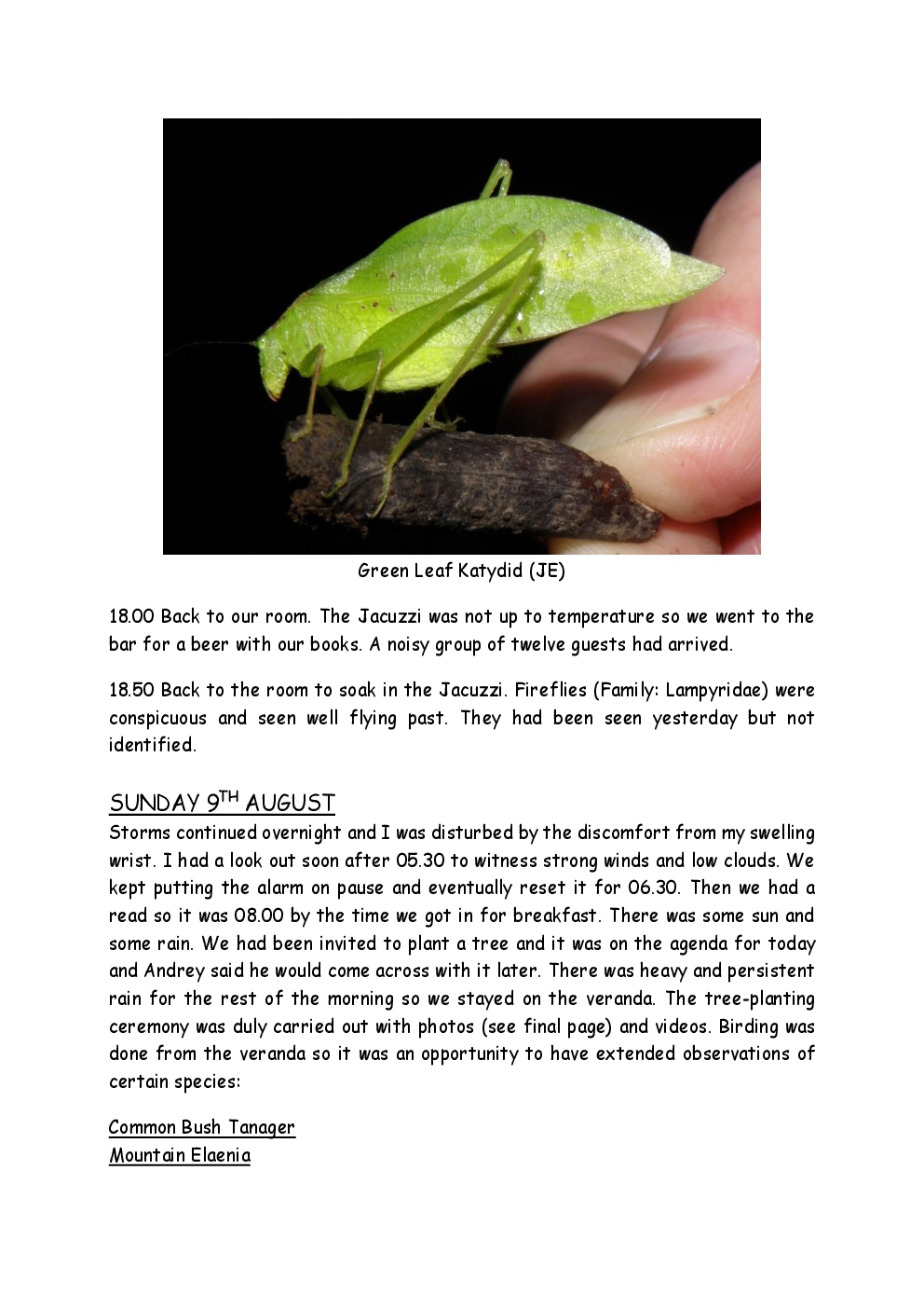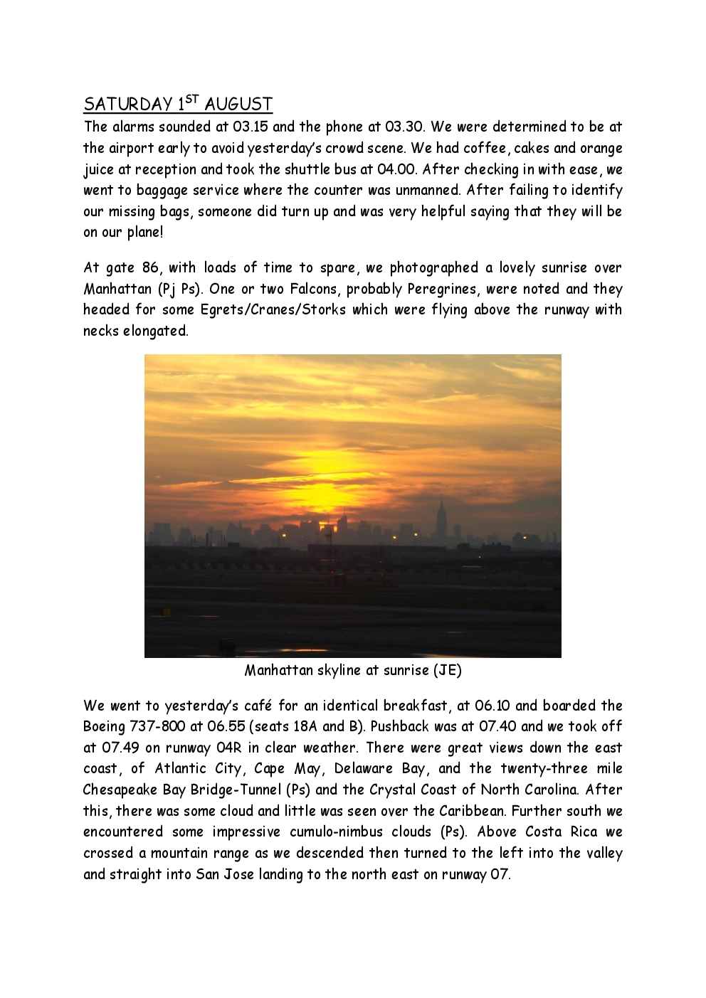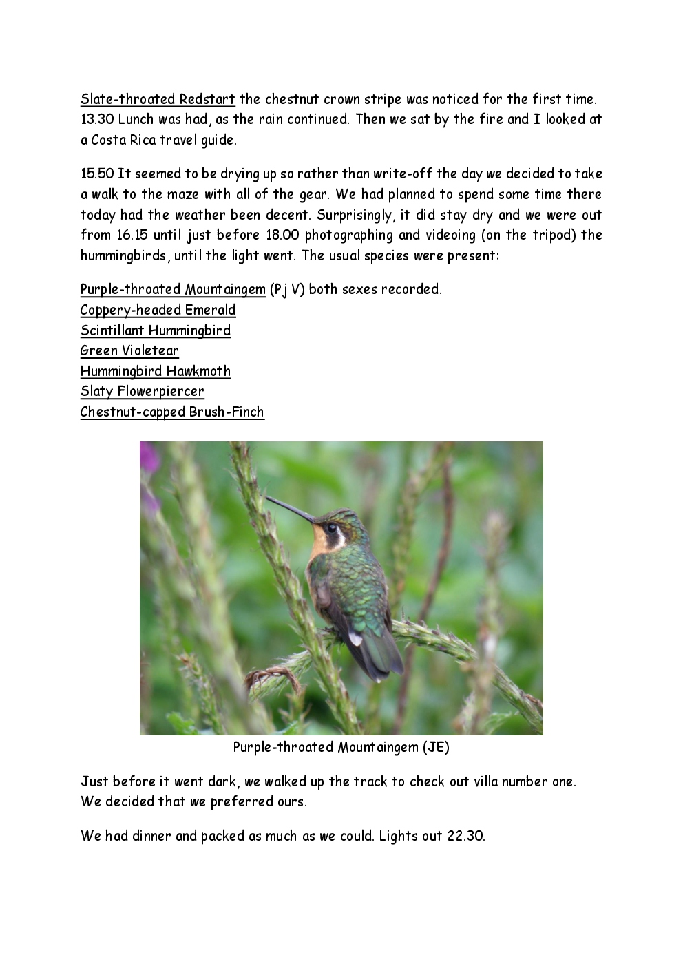 In 2009, Steve and Jackie visited Central America for the first time, with a trip to Costa Rica. They were delayed by thirty six hours on the outward journey due to bad weather in New York, so they missed their first night's accommodation in the capital, San Jose. They had a two-centre holiday, firstly on the Pacific coast close to Manuel Antonio National Park and then at an ecolodge in a 500-acre private cloud-forest reserve in the mountains.