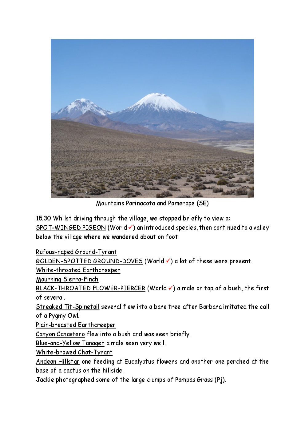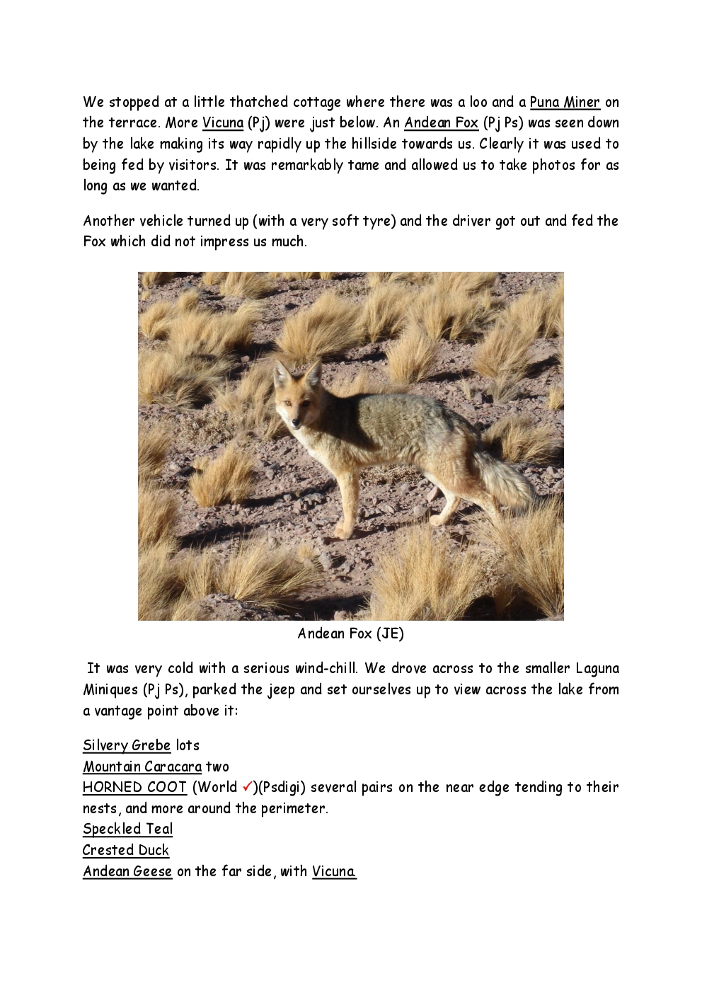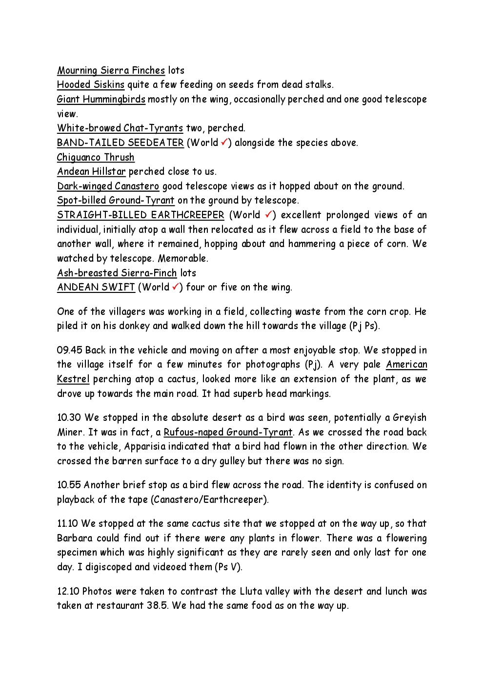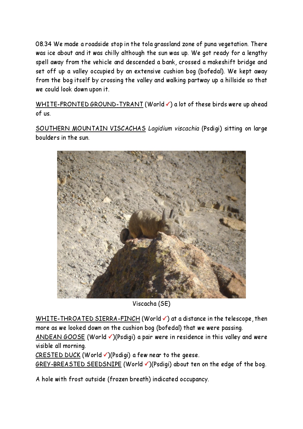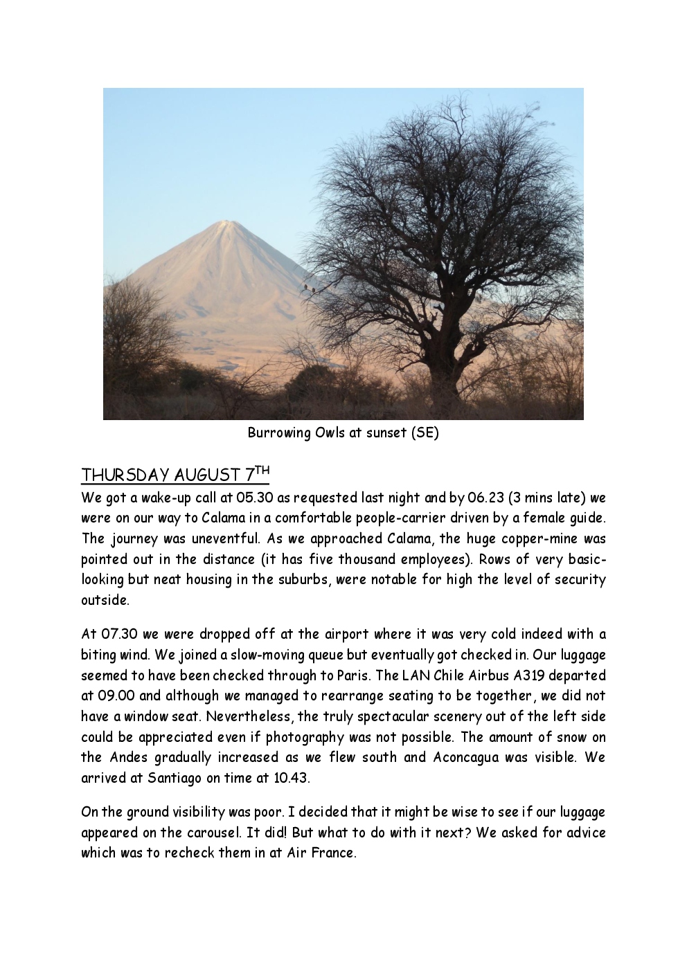 In the summer of 2008, Steve and Jackie travelled to Chile for a 17-day holiday. For the first 10 days they were in the far north of the country with a birding guide, Barbara Knapton, who looked after them as they explored the habitats of the Pacific coast, the Atacama Desert and the Andean Altiplano. For the remainder of the trip, they relocated south to the town of San Pedro de Atacama, based at a boutique hotel, from which they continued to explore the desert and the Altiplano with their guide, Mol and driver, Carlos.