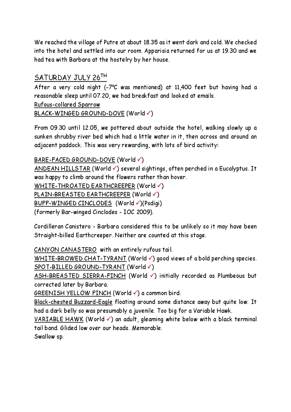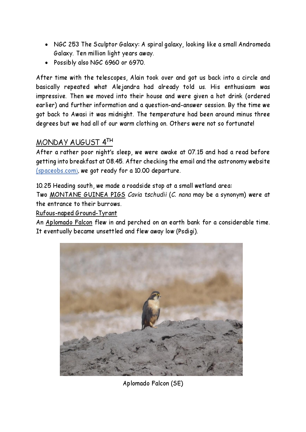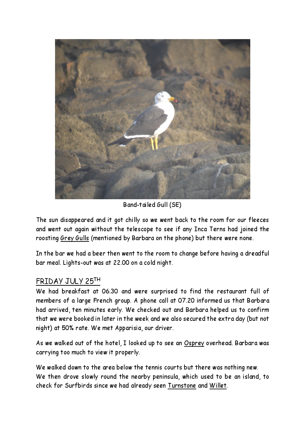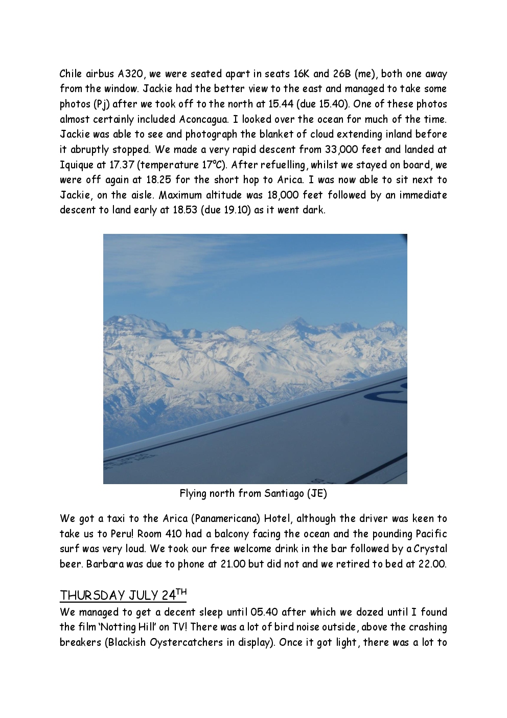 In the summer of 2008, Steve and Jackie travelled to Chile for a 17-day holiday. For the first 10 days they were in the far north of the country with a birding guide, Barbara Knapton, who looked after them as they explored the habitats of the Pacific coast, the Atacama Desert and the Andean Altiplano. For the remainder of the trip, they relocated south to the town of San Pedro de Atacama, based at a boutique hotel, from which they continued to explore the desert and the Altiplano with their guide, Mol and driver, Carlos.