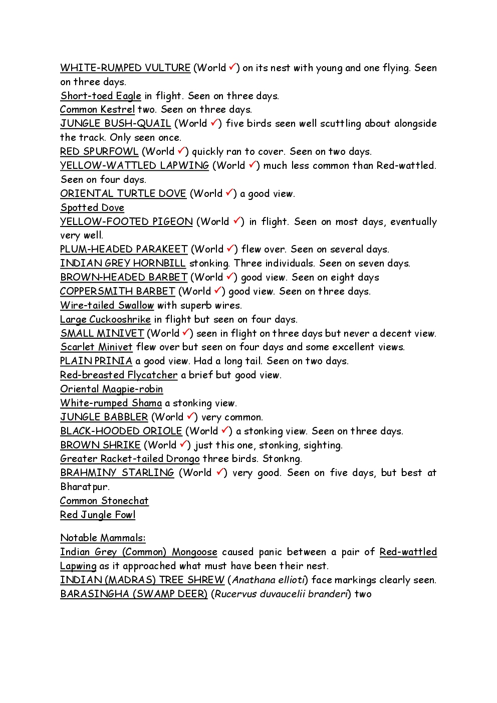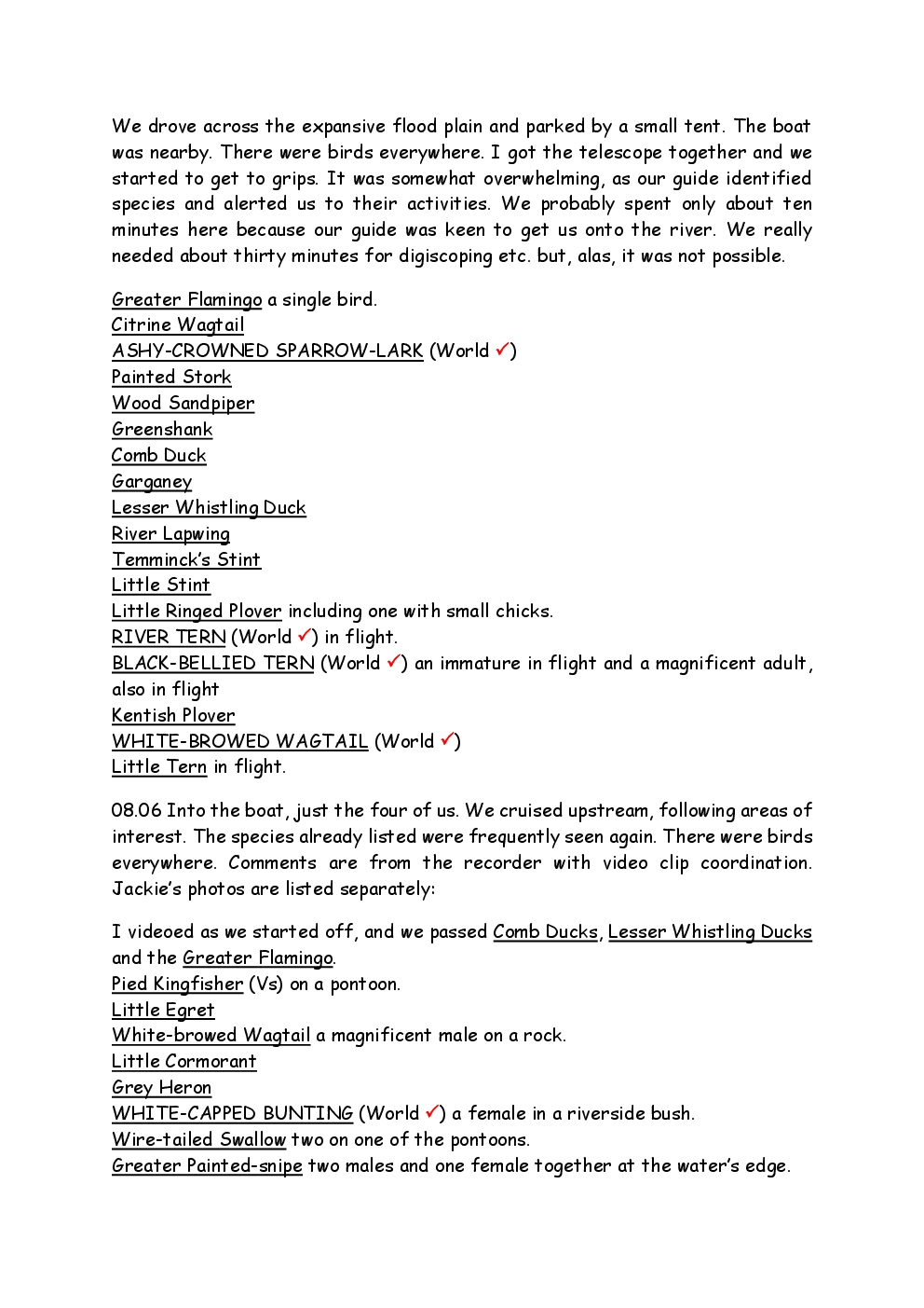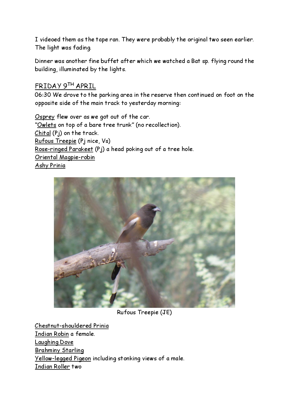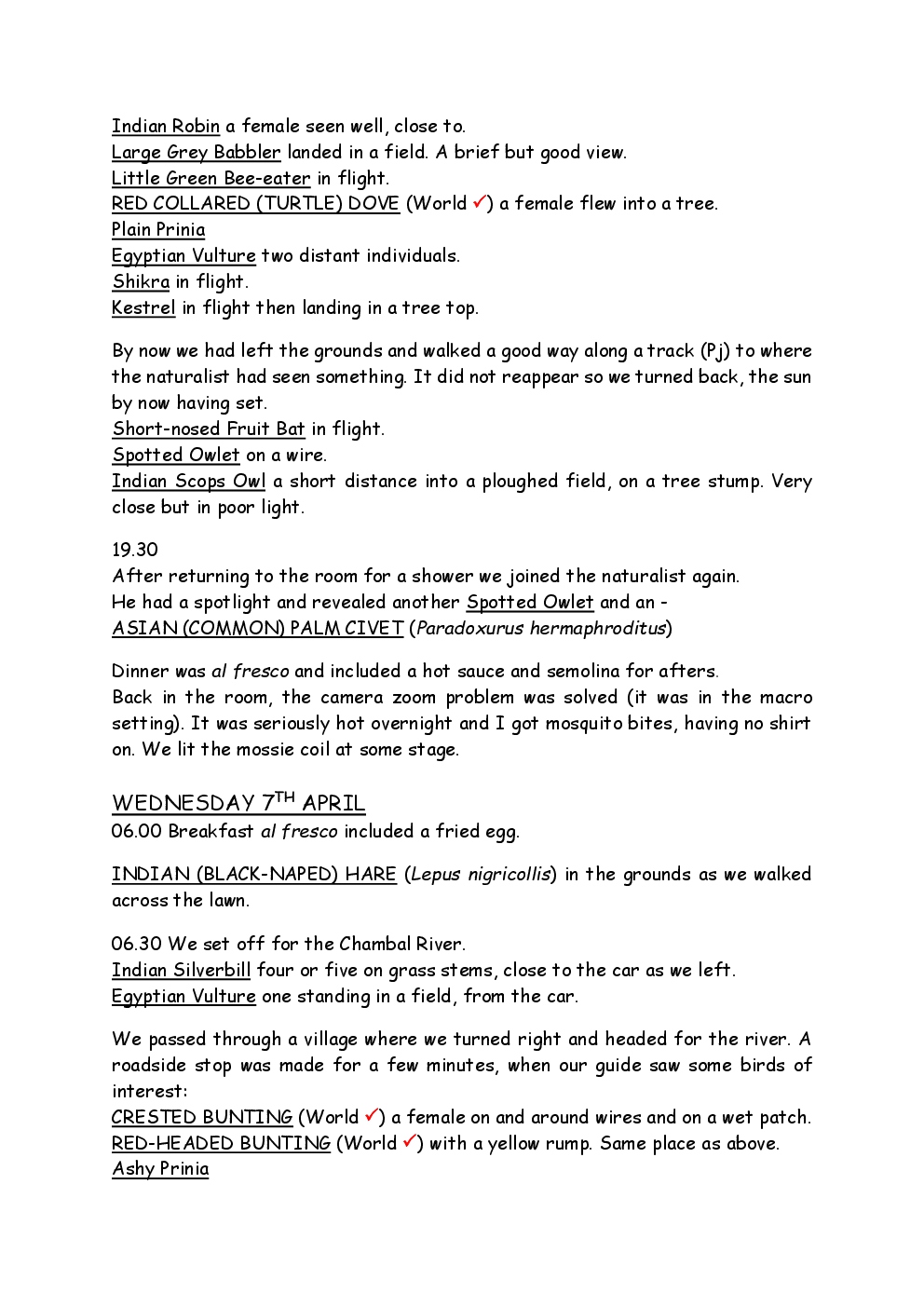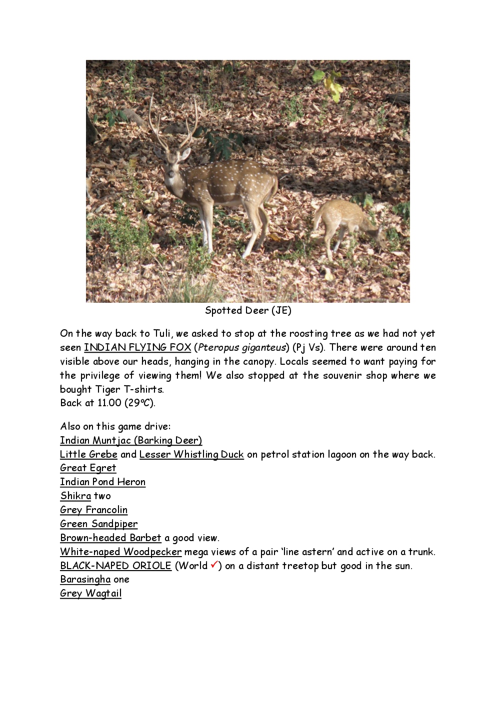 In 2010, Steve and Jackie travelled to India on a two-week group trip, organised by Naturetrek. The tour was entitled "Just Tigers" and there were six participants plus Dhanya, their guide. In Kanha National Park, they had twelve separate sightings of seven different tigers, two of which were from the back of an elephant. They also visited the Taj Mahal, spent time birding in Bharatpur Bird Sanctuary and had a memorable safari on the Chambal River.