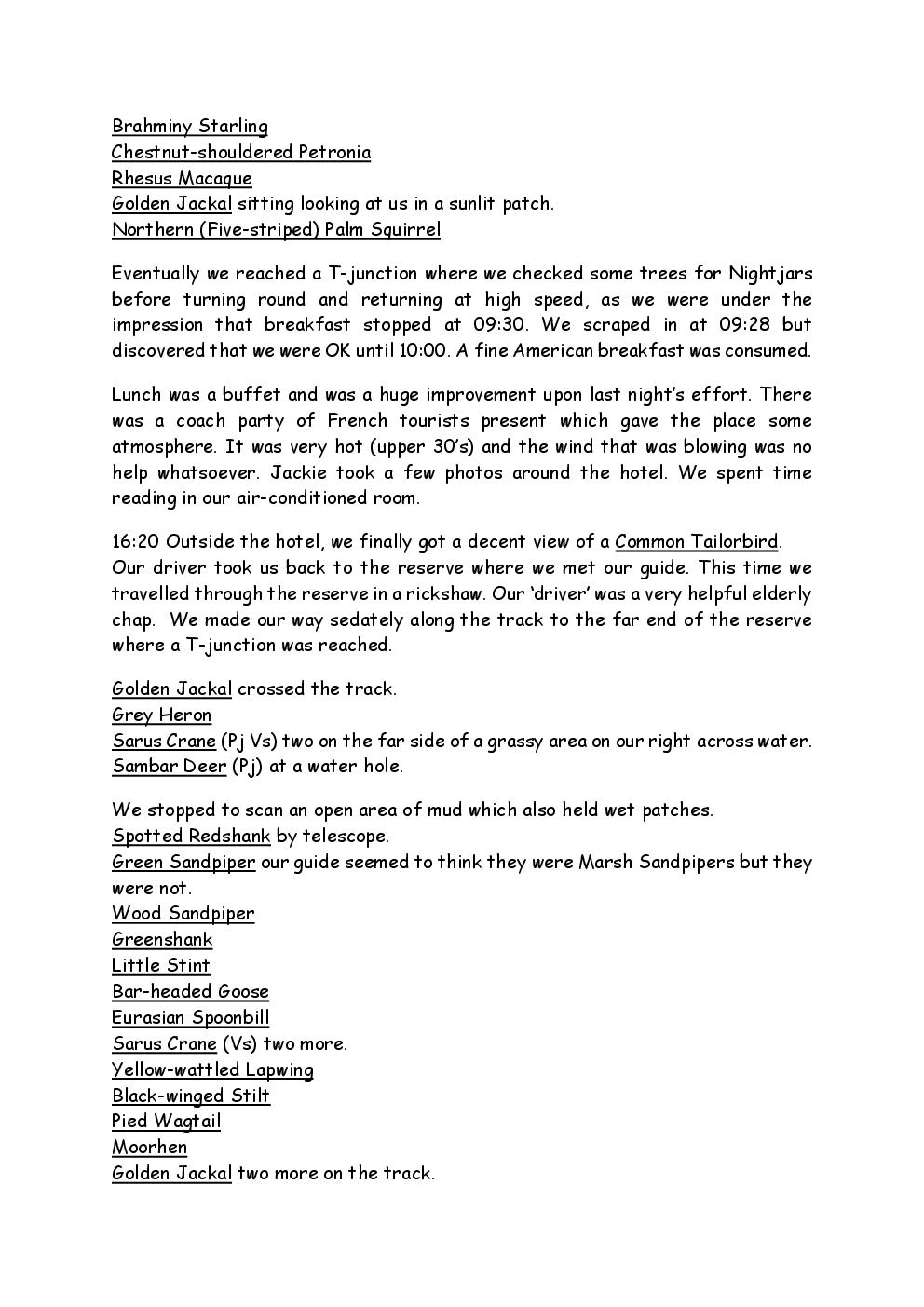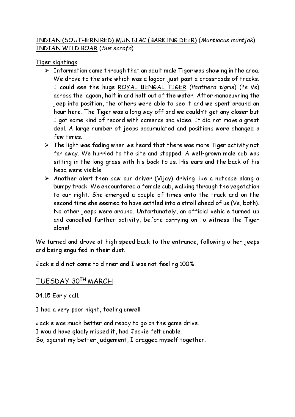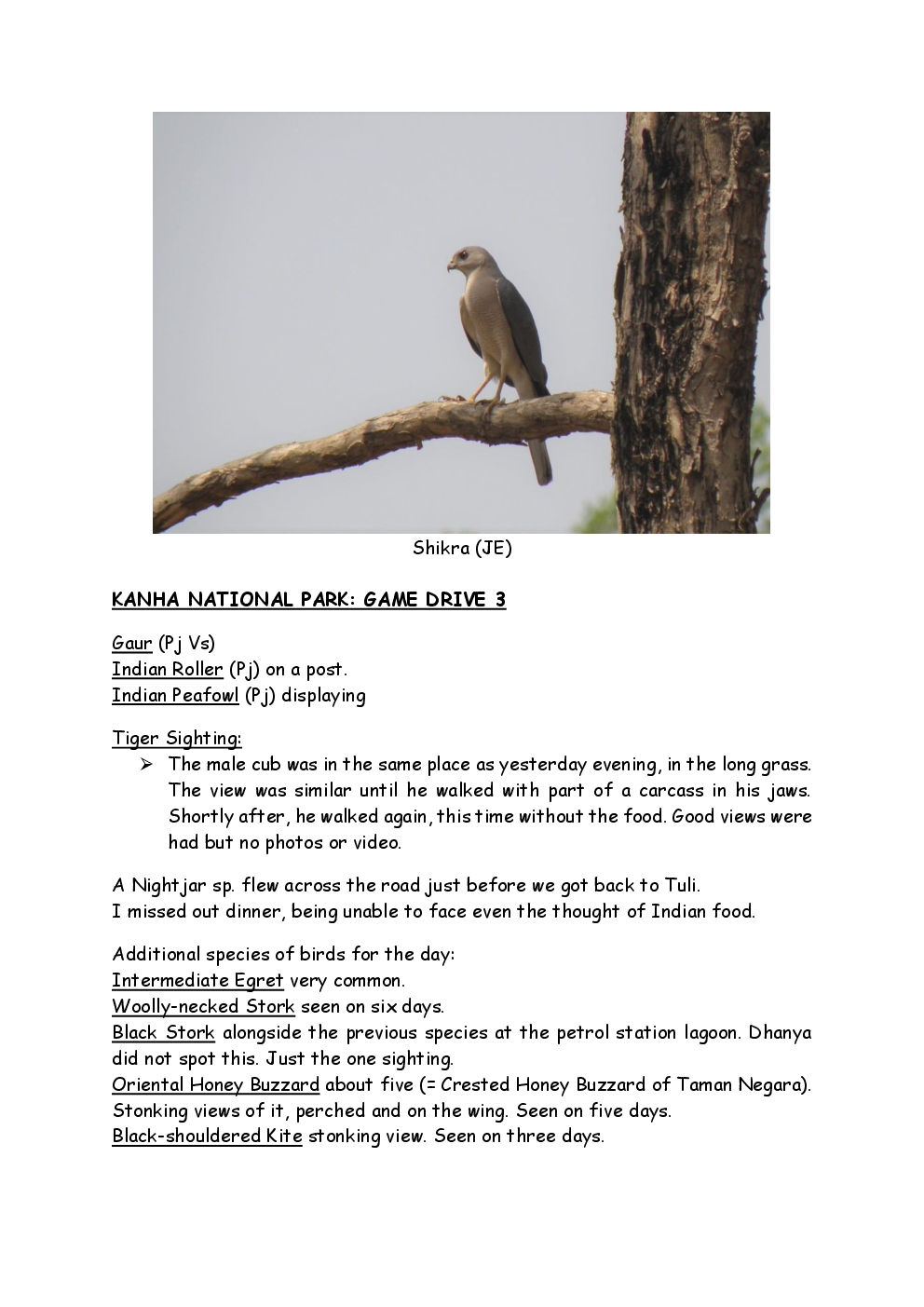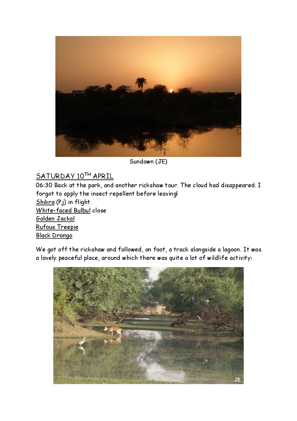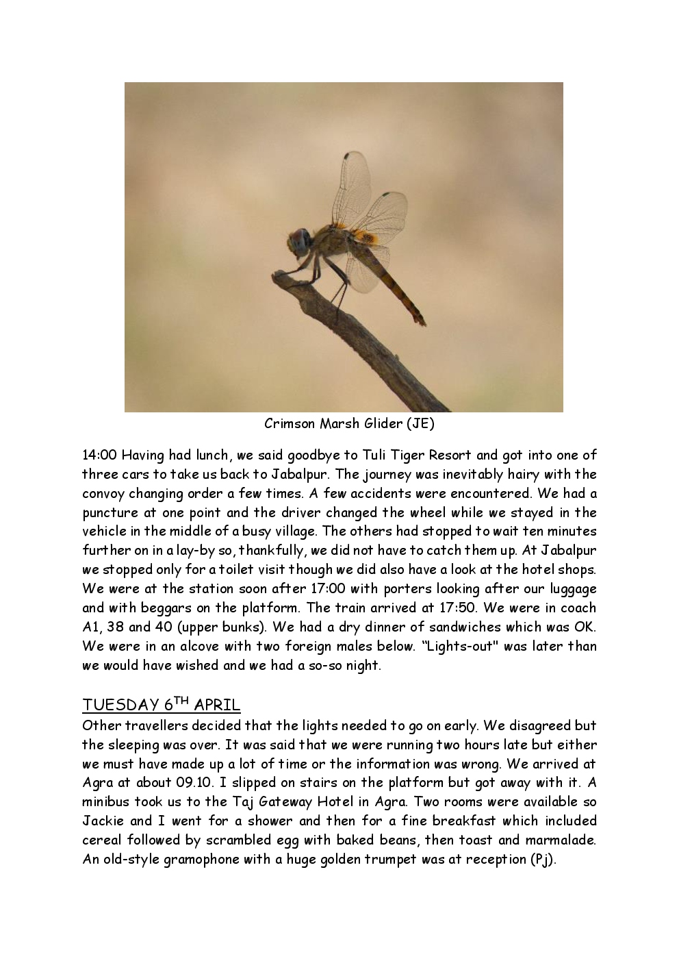 In 2010, Steve and Jackie travelled to India on a two-week group trip, organised by Naturetrek. The tour was entitled "Just Tigers" and there were six participants plus Dhanya, their guide. In Kanha National Park, they had twelve separate sightings of seven different tigers, two of which were from the back of an elephant. They also visited the Taj Mahal, spent time birding in Bharatpur Bird Sanctuary and had a memorable safari on the Chambal River.