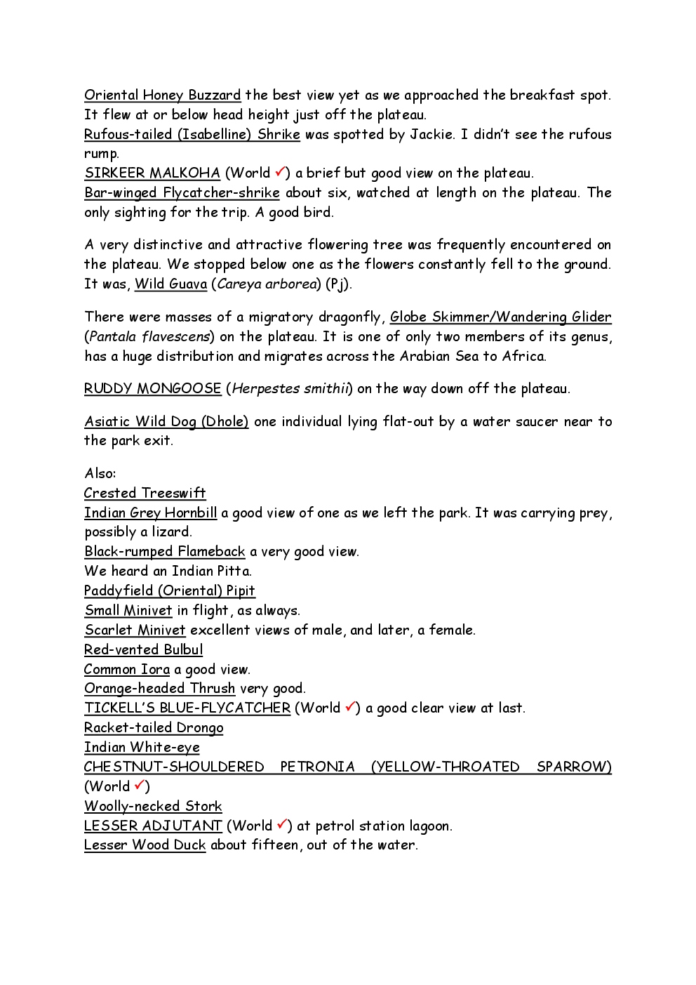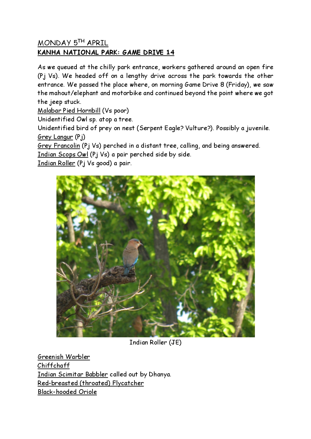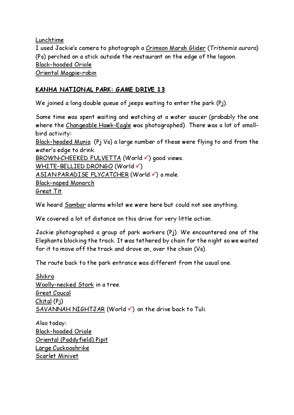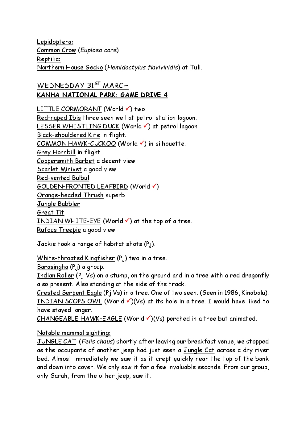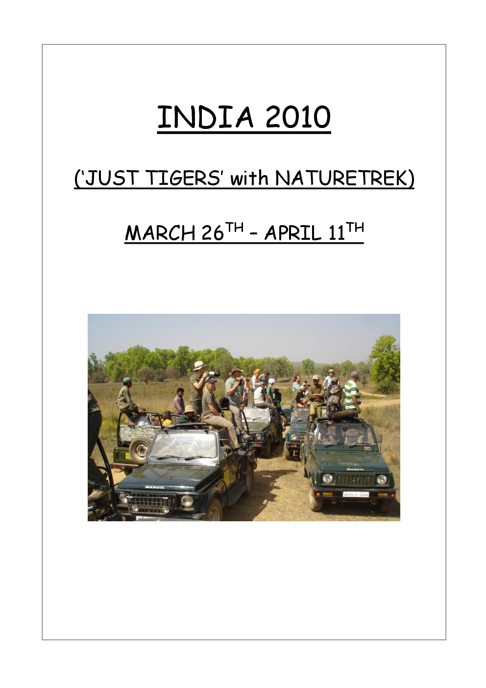 In 2010, Steve and Jackie travelled to India on a two-week group trip, organised by Naturetrek. The tour was entitled "Just Tigers" and there were six participants plus Dhanya, their guide. In Kanha National Park, they had twelve separate sightings of seven different tigers, two of which were from the back of an elephant. They also visited the Taj Mahal, spent time birding in Bharatpur Bird Sanctuary and had a memorable safari on the Chambal River.