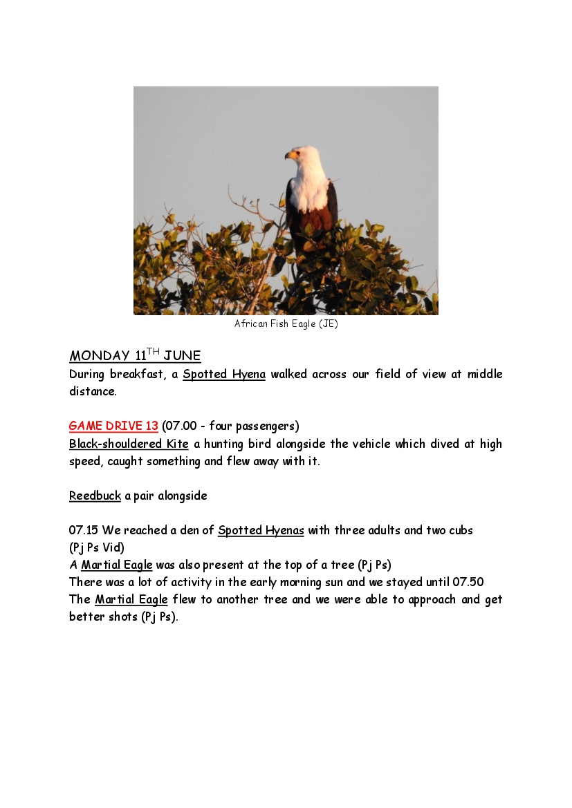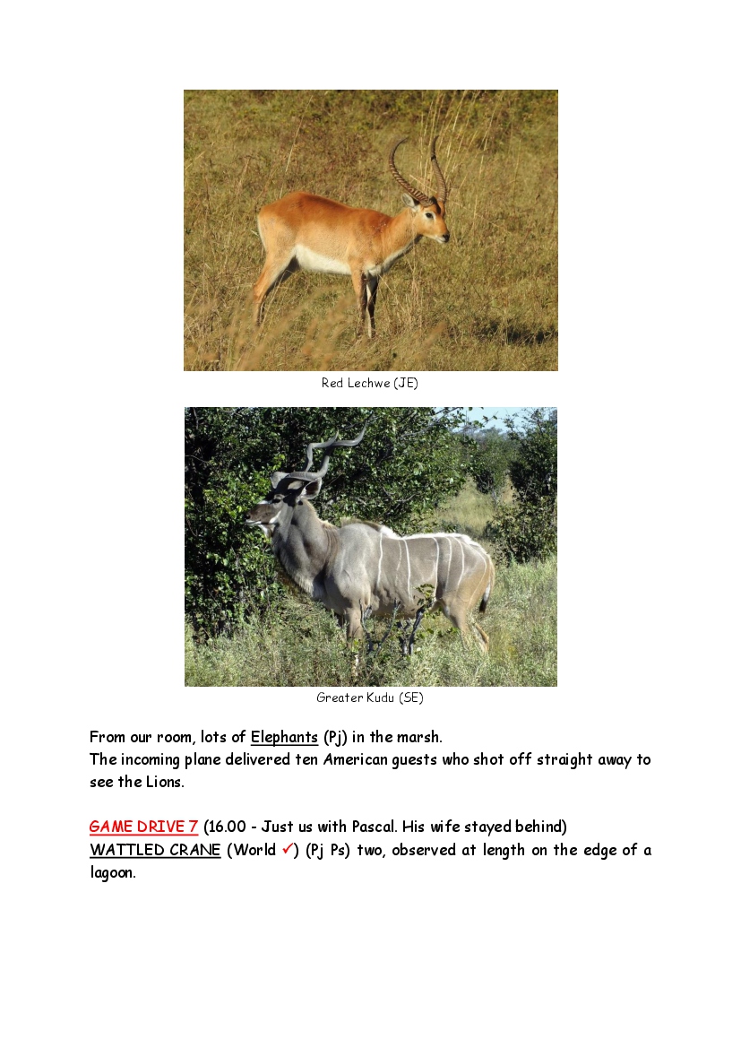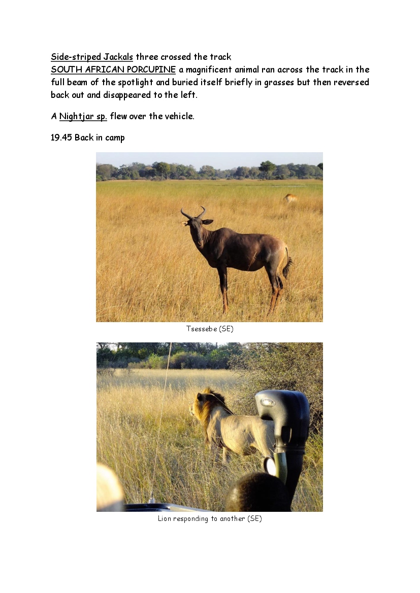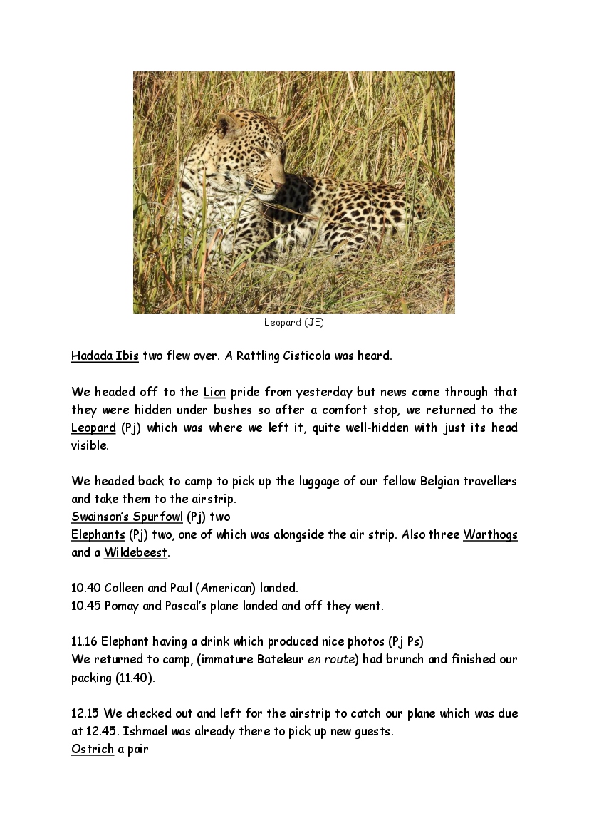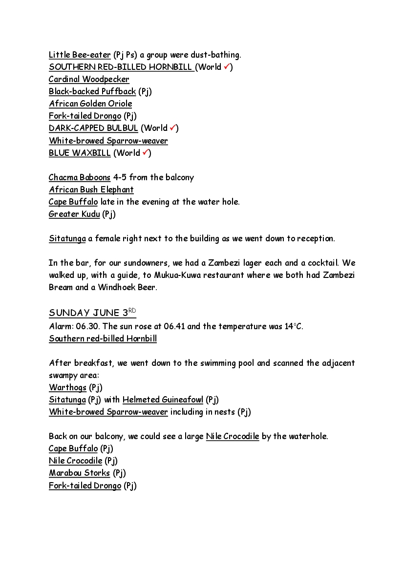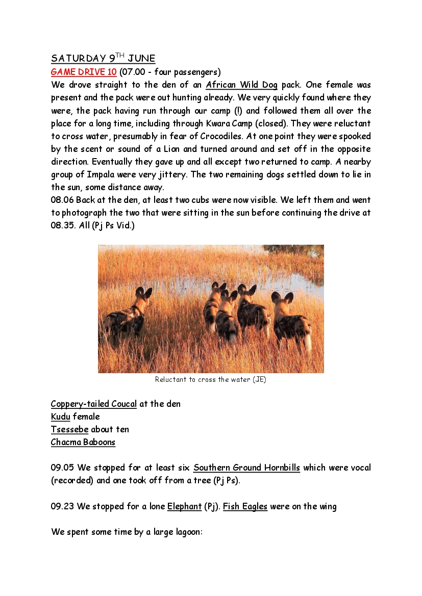 In June 2018, Steve and Jackie returned to Africa. After a visit to Victoria Falls and Zimbabwe National Park, they crossed into northern Botswana and spent time at three tented camps. The first two were close to the border with Namibia and the third was further south, in the Okavango Delta. Transport between the camps was by chartered light aircraft. Two of their most sought-after species were the Painted Wolf (aka African Hunting Dog) and the Secretary Bird. After fifteen game drives and one boat trip, these hopes had been well and truly fulfilled but they did, of course, see much more besides. This is an illustrated account of the trip.