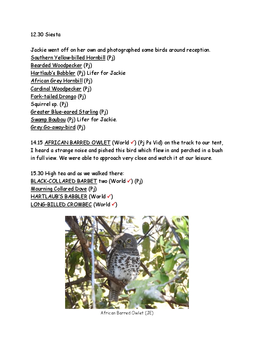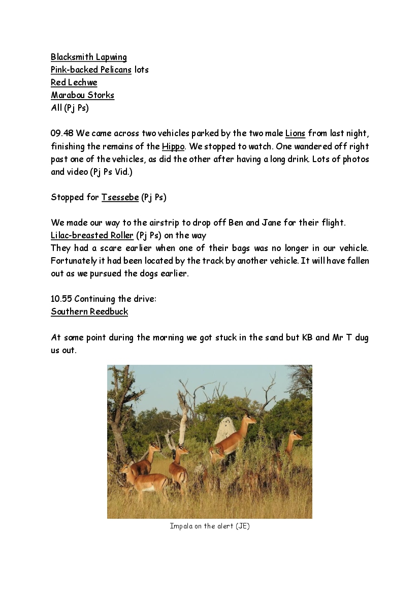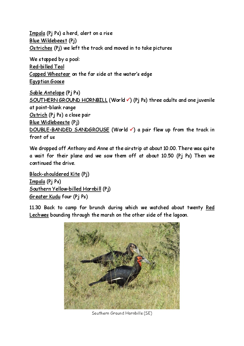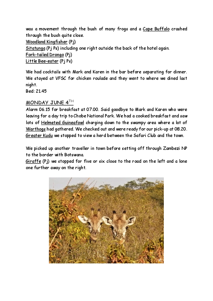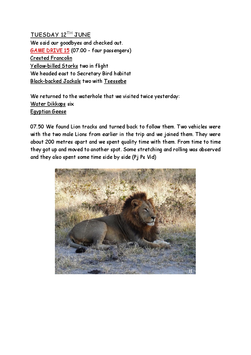 In June 2018, Steve and Jackie returned to Africa. After a visit to Victoria Falls and Zimbabwe National Park, they crossed into northern Botswana and spent time at three tented camps. The first two were close to the border with Namibia and the third was further south, in the Okavango Delta. Transport between the camps was by chartered light aircraft. Two of their most sought-after species were the Painted Wolf (aka African Hunting Dog) and the Secretary Bird. After fifteen game drives and one boat trip, these hopes had been well and truly fulfilled but they did, of course, see much more besides. This is an illustrated account of the trip.