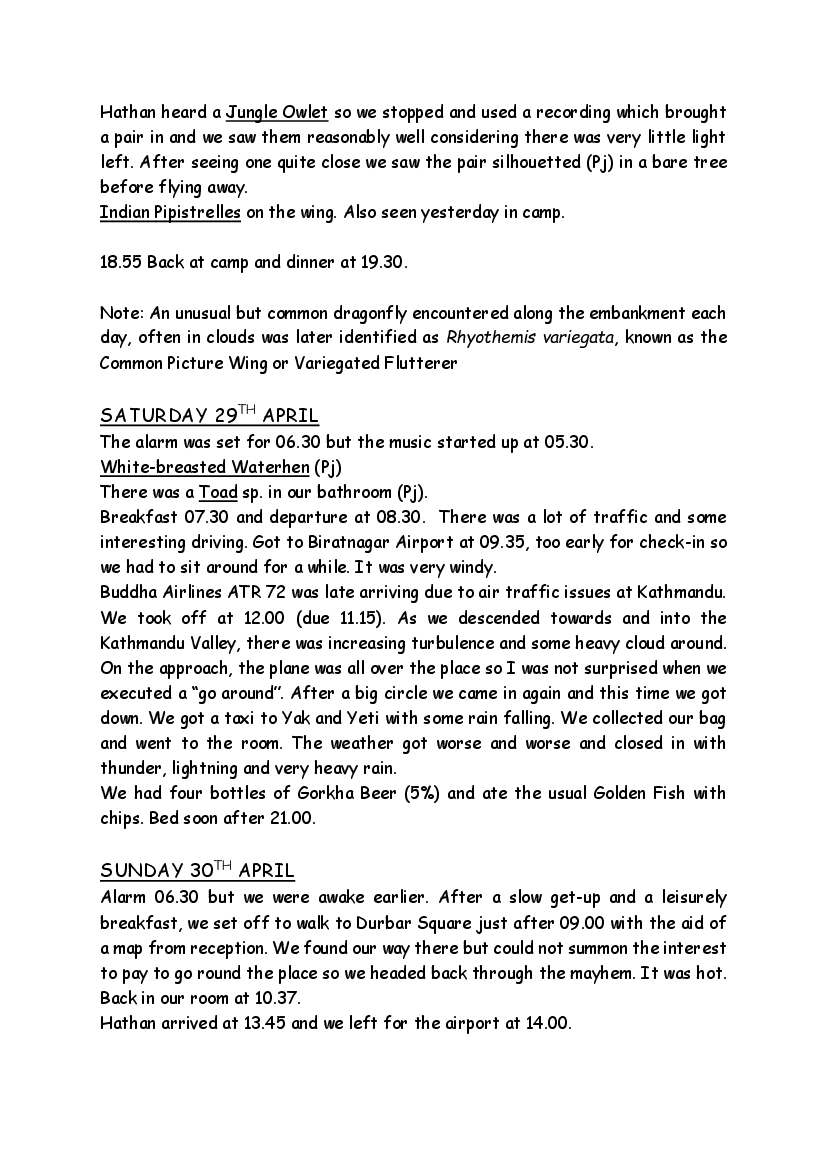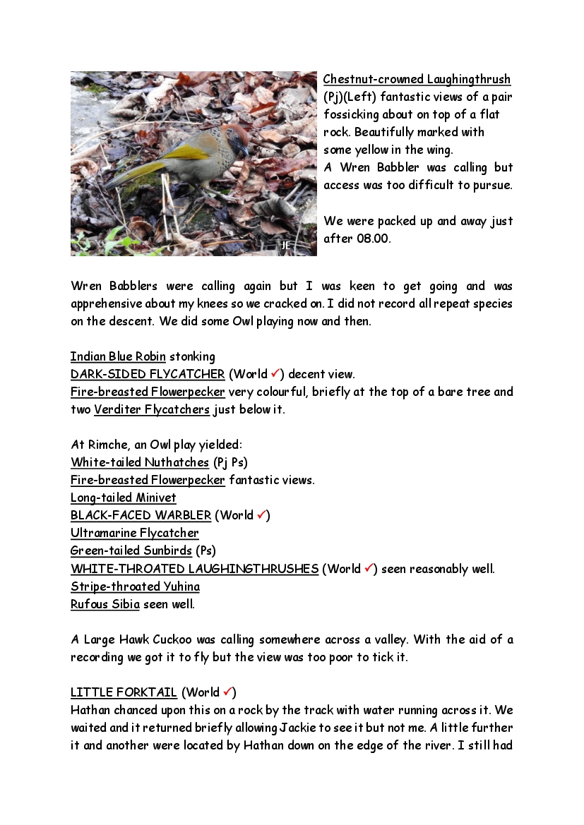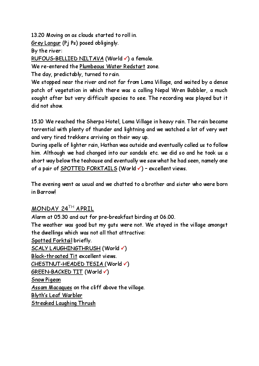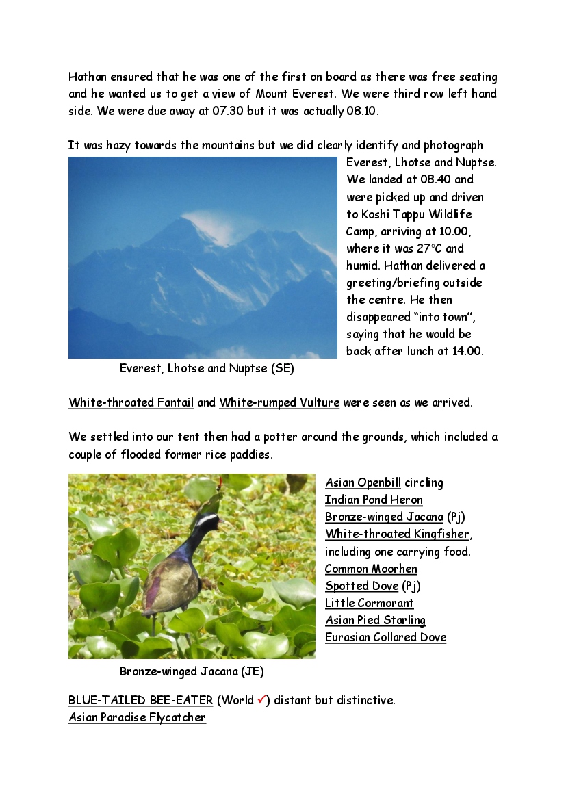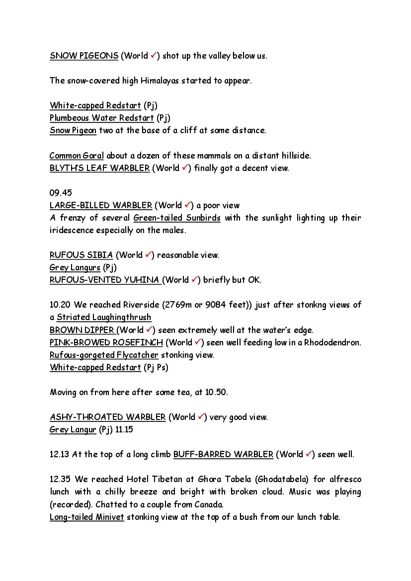 Over many years, Steve and Jackie have undertaken a project to see, in the wild, every species of non-passerine bird that belongs to a monotypic family. This has taken them to many parts of the world and culminated, in 2017, with a Himalayan trek to try and see the Ibisbill, the final bird needed to complete the project. This is an illustrated account of the trip.