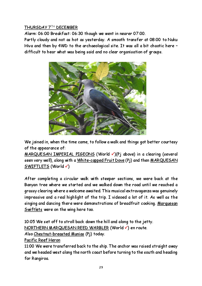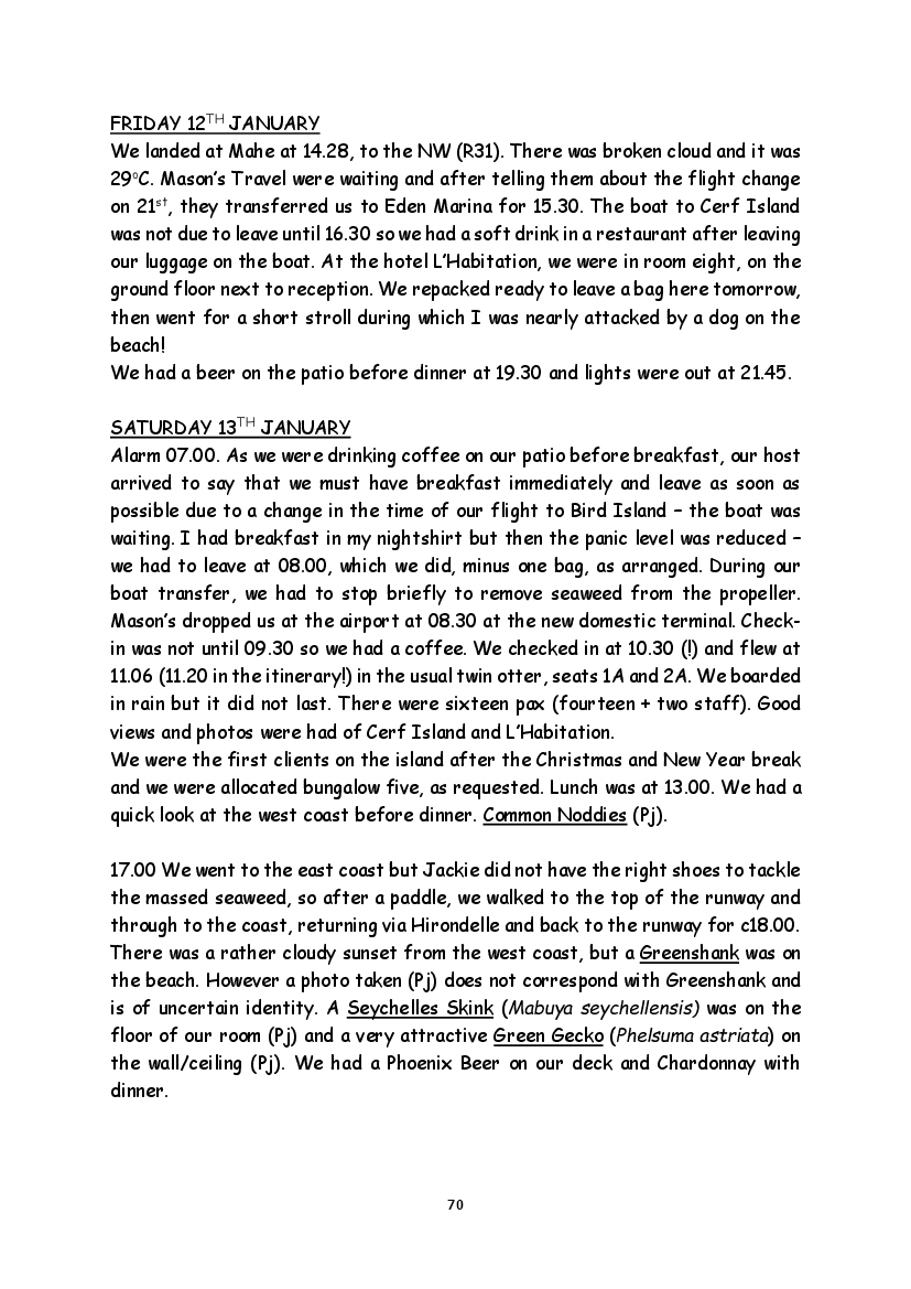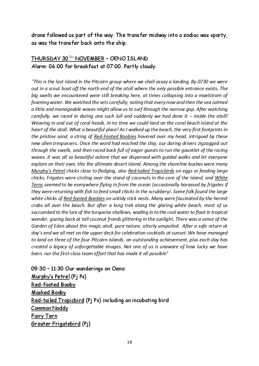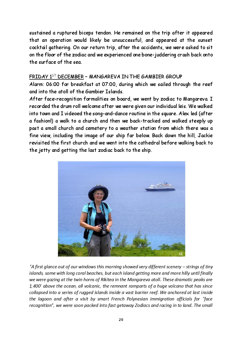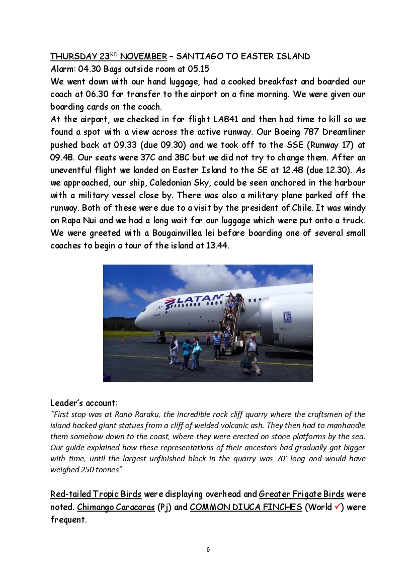 Steve and Jackie first flew to Santiago, Chile, and after a couple of days there, continued to Easter Island where they joined an expedition cruise, run by Nobel Caledonia. Over the next three weeks, they crossed the South Pacific to Tahiti, via the Pitcairns and various islands of French Polynesia. After saying goodbye to their fellow travellers, they continued to South Australia, spending time on Kangaroo Island, at Victor Harbour and at a Bird and Bushland Retreat. After a week with friends on the Sunshine Coast of Queensland, they then visited their much-loved bolt-hole of Bird Island in the Seychelles, for a week, before returning to the UK to complete the circle.