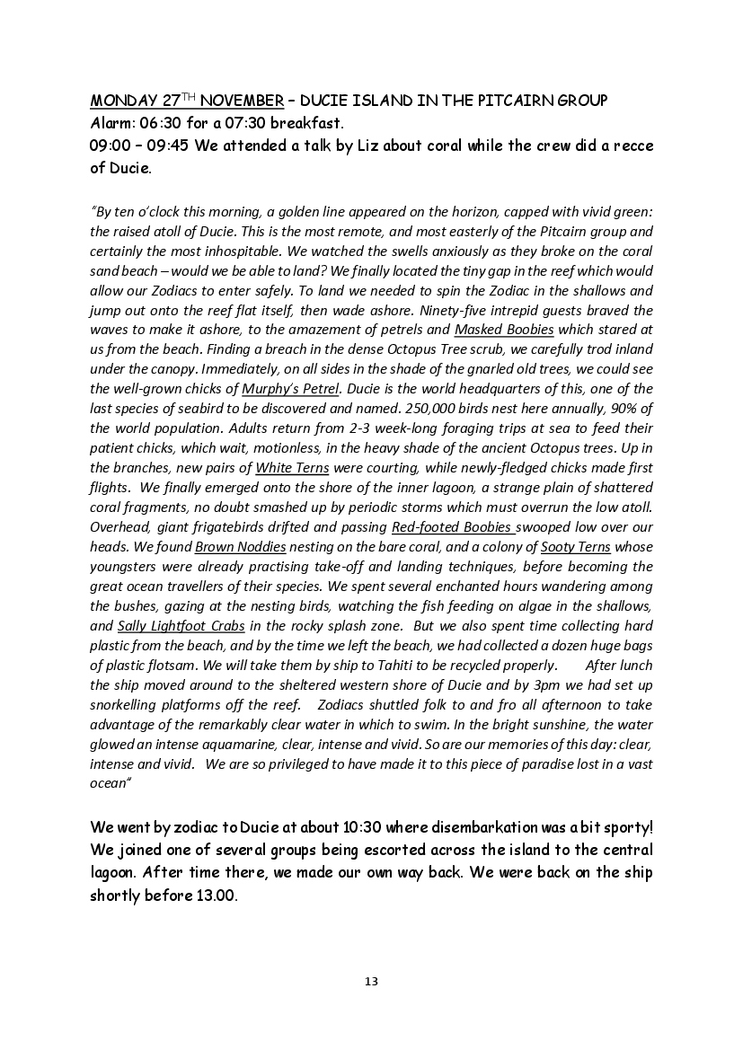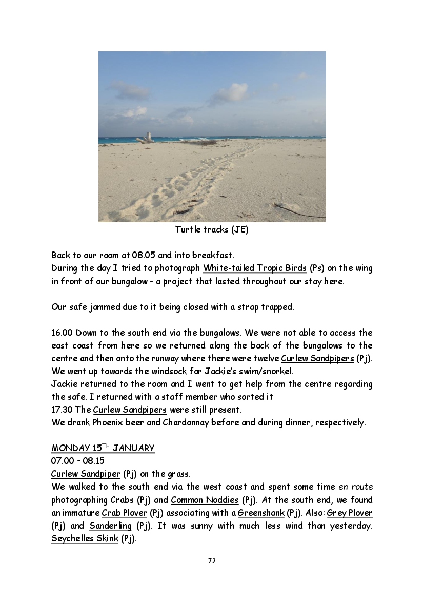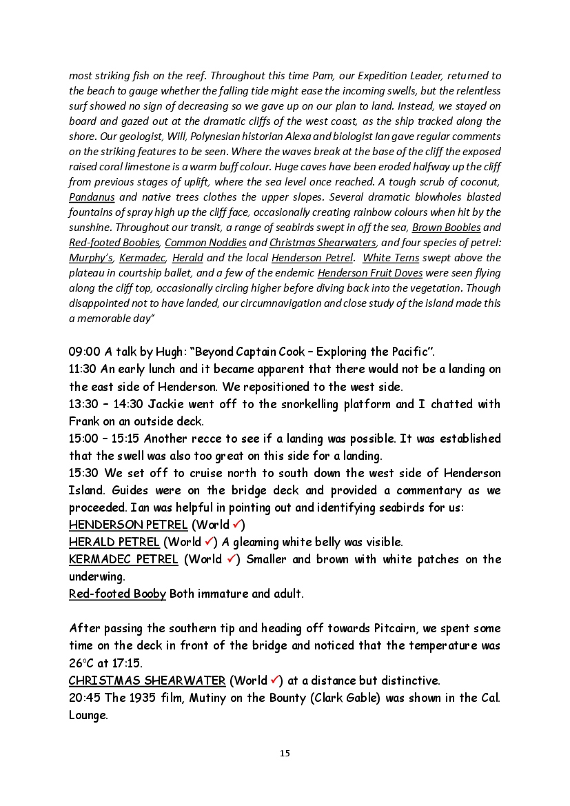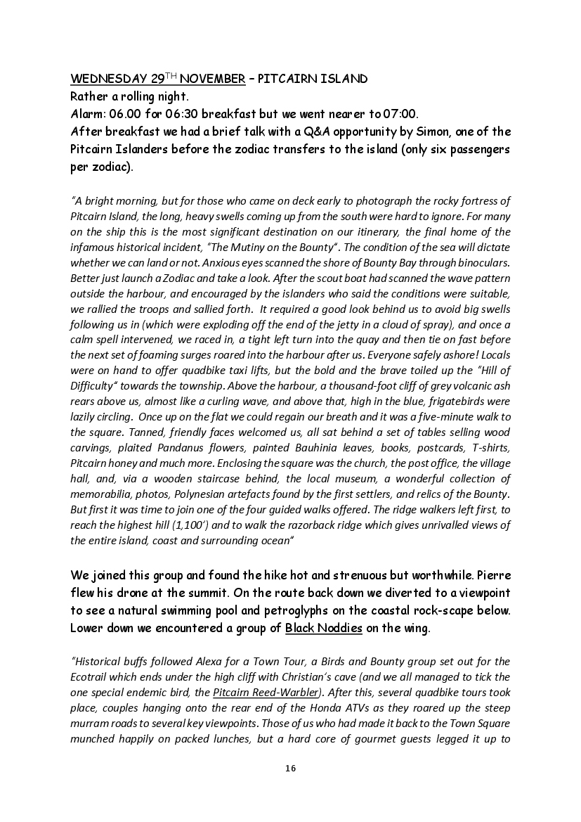 Steve and Jackie first flew to Santiago, Chile, and after a couple of days there, continued to Easter Island where they joined an expedition cruise, run by Nobel Caledonia. Over the next three weeks, they crossed the South Pacific to Tahiti, via the Pitcairns and various islands of French Polynesia. After saying goodbye to their fellow travellers, they continued to South Australia, spending time on Kangaroo Island, at Victor Harbour and at a Bird and Bushland Retreat. After a week with friends on the Sunshine Coast of Queensland, they then visited their much-loved bolt-hole of Bird Island in the Seychelles, for a week, before returning to the UK to complete the circle.