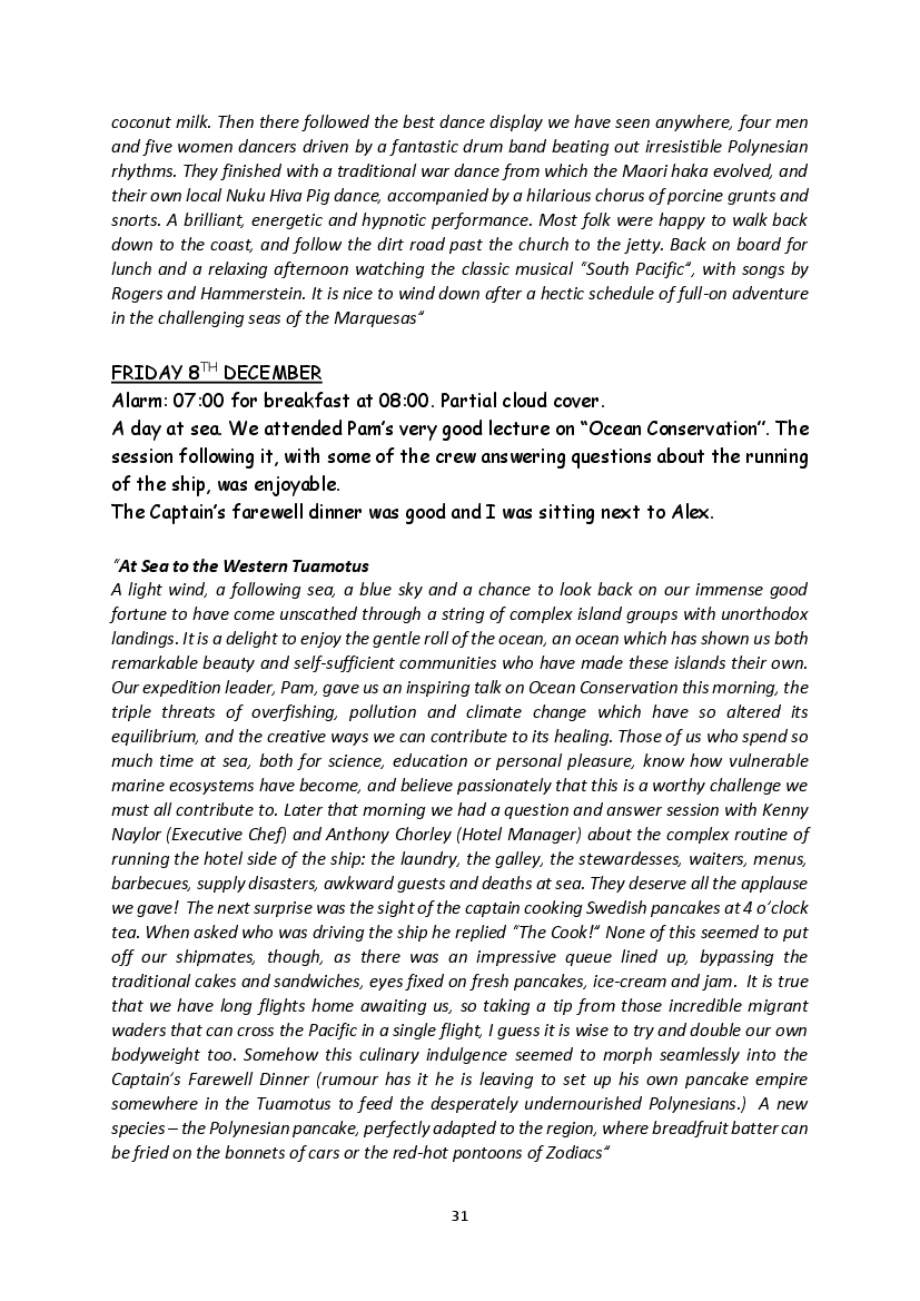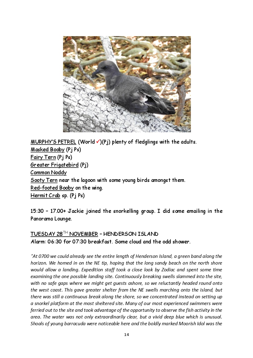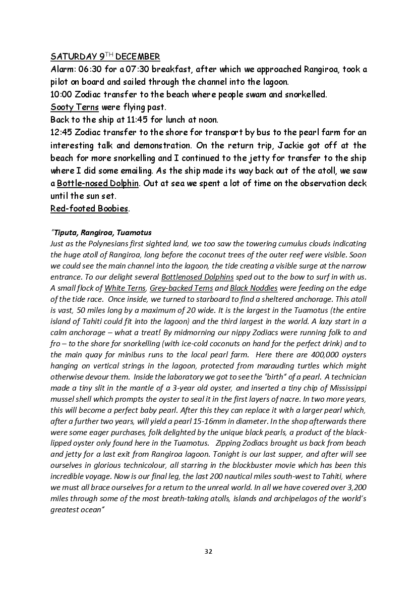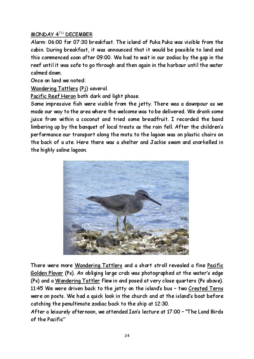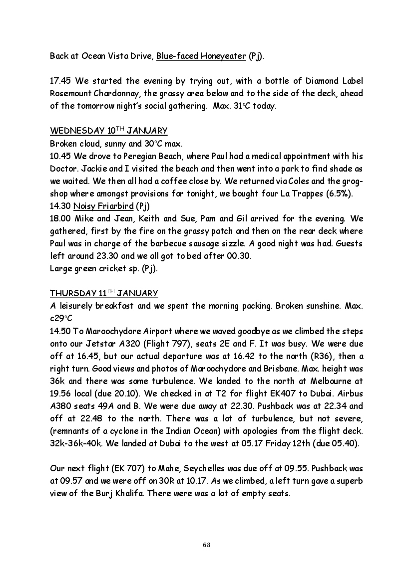 Steve and Jackie first flew to Santiago, Chile, and after a couple of days there, continued to Easter Island where they joined an expedition cruise, run by Nobel Caledonia. Over the next three weeks, they crossed the South Pacific to Tahiti, via the Pitcairns and various islands of French Polynesia. After saying goodbye to their fellow travellers, they continued to South Australia, spending time on Kangaroo Island, at Victor Harbour and at a Bird and Bushland Retreat. After a week with friends on the Sunshine Coast of Queensland, they then visited their much-loved bolt-hole of Bird Island in the Seychelles, for a week, before returning to the UK to complete the circle.
