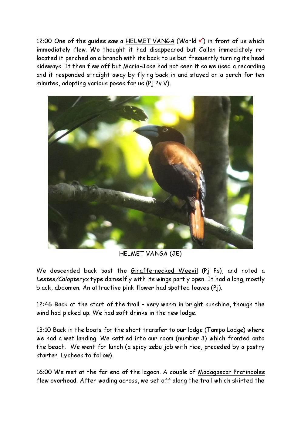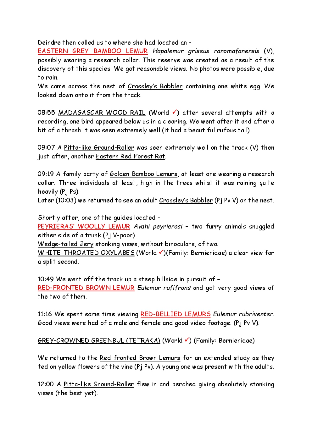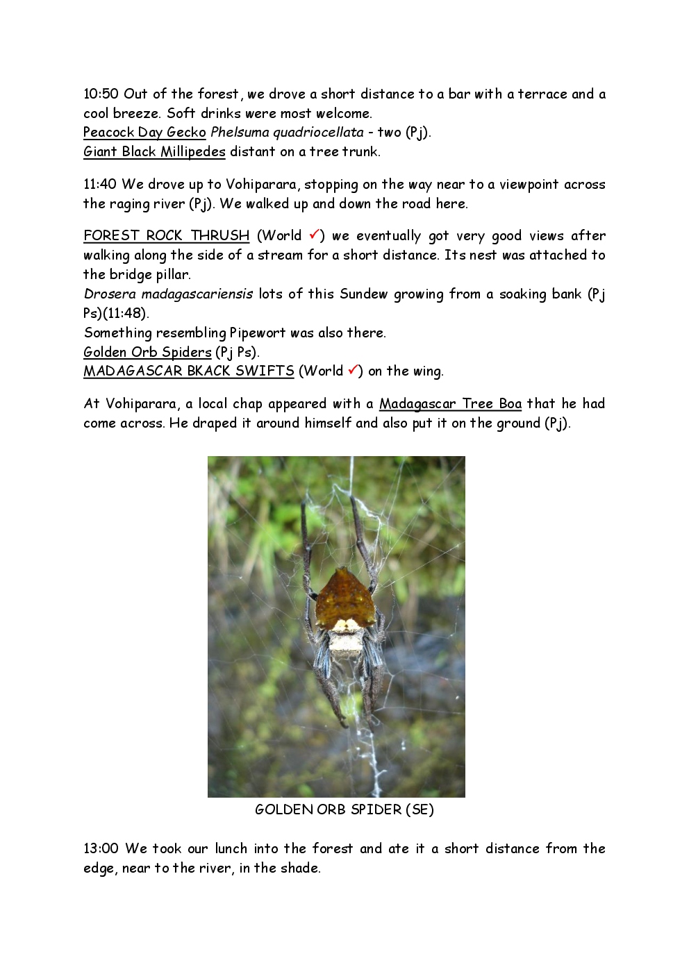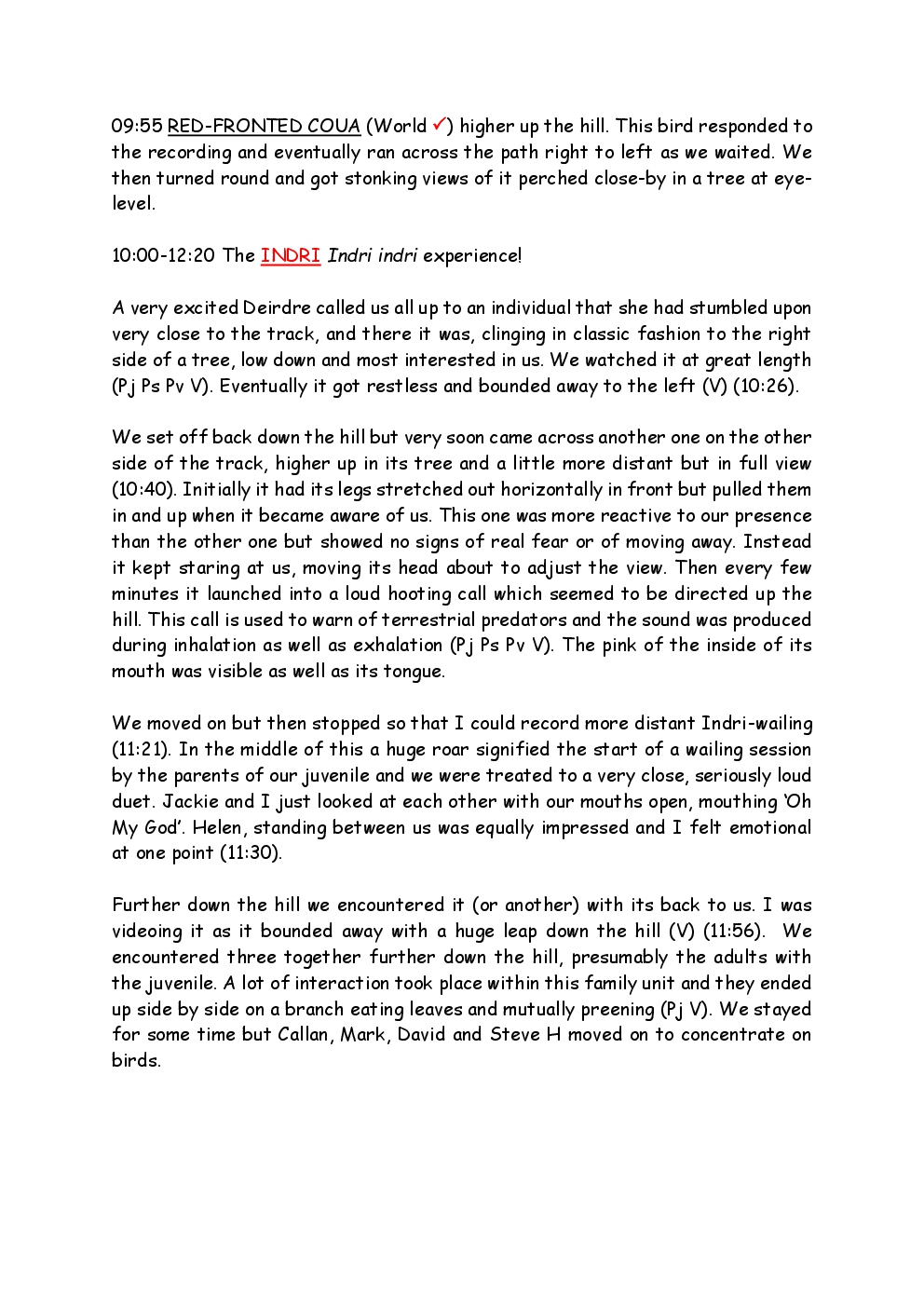 In 2012, Steve and Jackie visited Madagascar on a group expedition with Birding Africa to seek out as much as possible of the largely unique fauna and flora of the island. Their superb guides, Callan and Deirdre are the owners of the company and ensured that an excellent trip was had by all. Most of the remaining native animals and plants are confined to widely separated National Parks so the group used the domestic airline as well as overland travel. Lemurs and chameleons featured highly as did several families of birds which are endemic to the island. It was one of the most successful and memorable trips that Steve and Jackie had been on thus far.