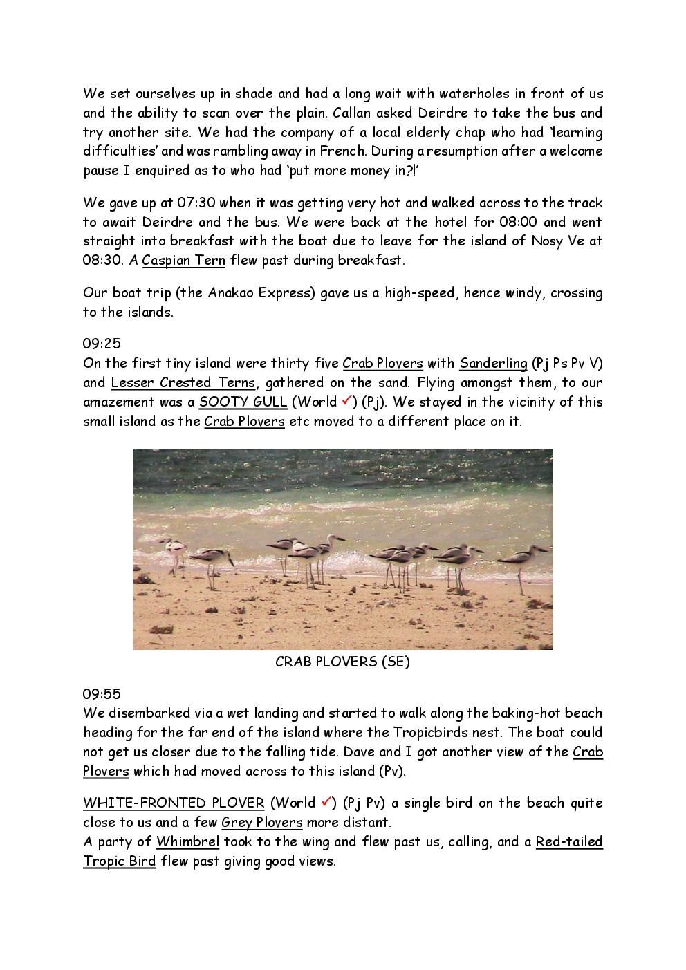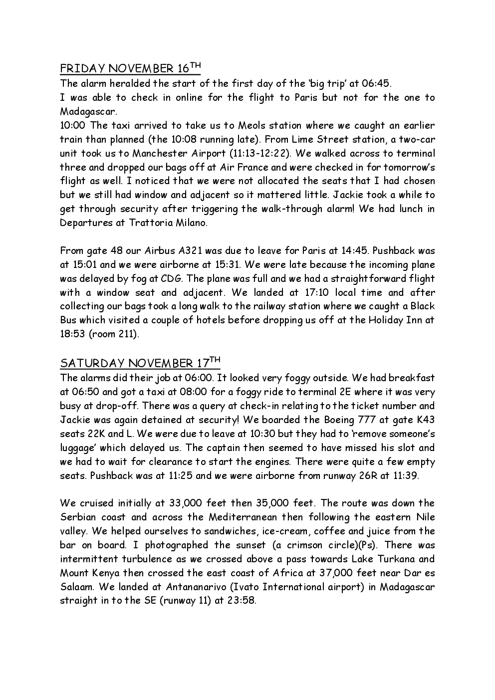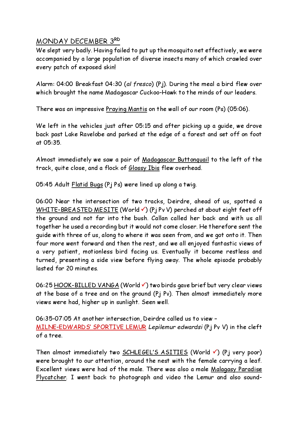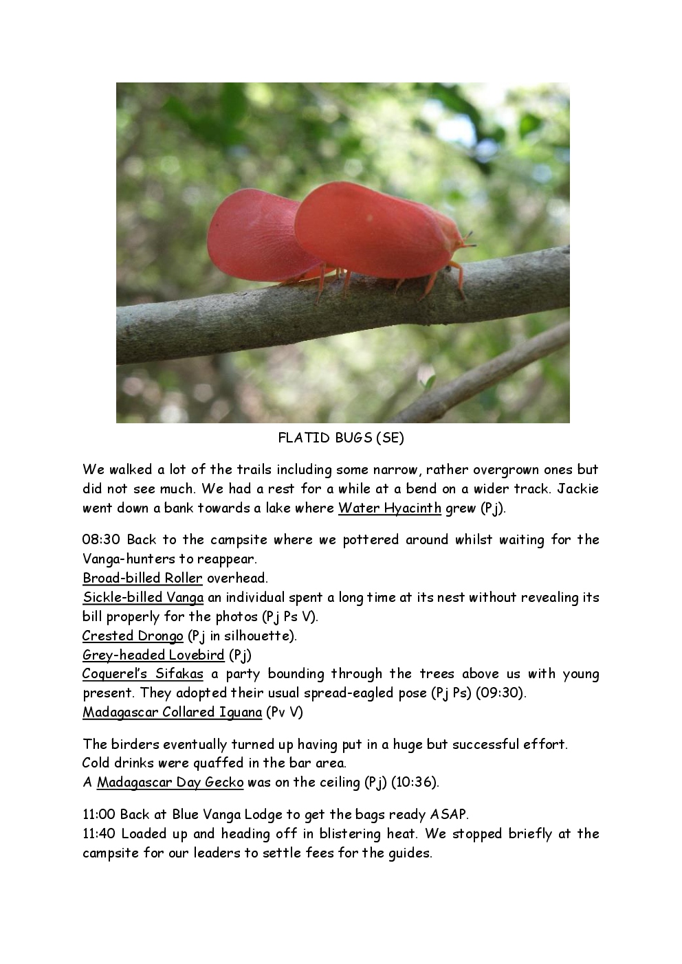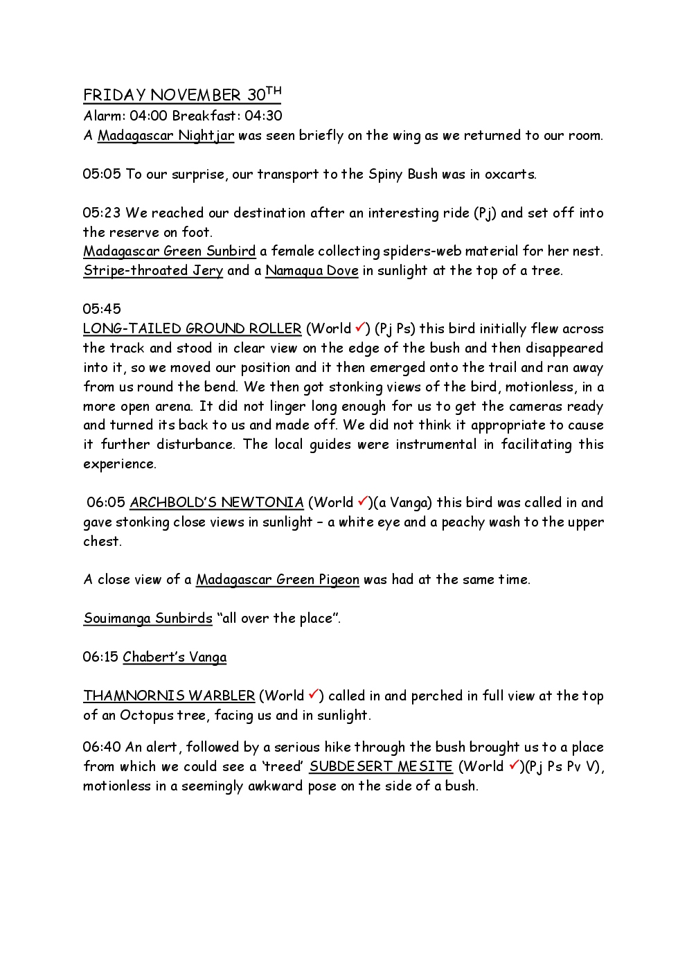In 2012, Steve and Jackie visited Madagascar on a group expedition with Birding Africa to seek out as much as possible of the largely unique fauna and flora of the island. Their superb guides, Callan and Deirdre are the owners of the company and ensured that an excellent trip was had by all. Most of the remaining native animals and plants are confined to widely separated National Parks so the group used the domestic airline as well as overland travel. Lemurs and chameleons featured highly as did several families of birds which are endemic to the island. It was one of the most successful and memorable trips that Steve and Jackie had been on thus far.