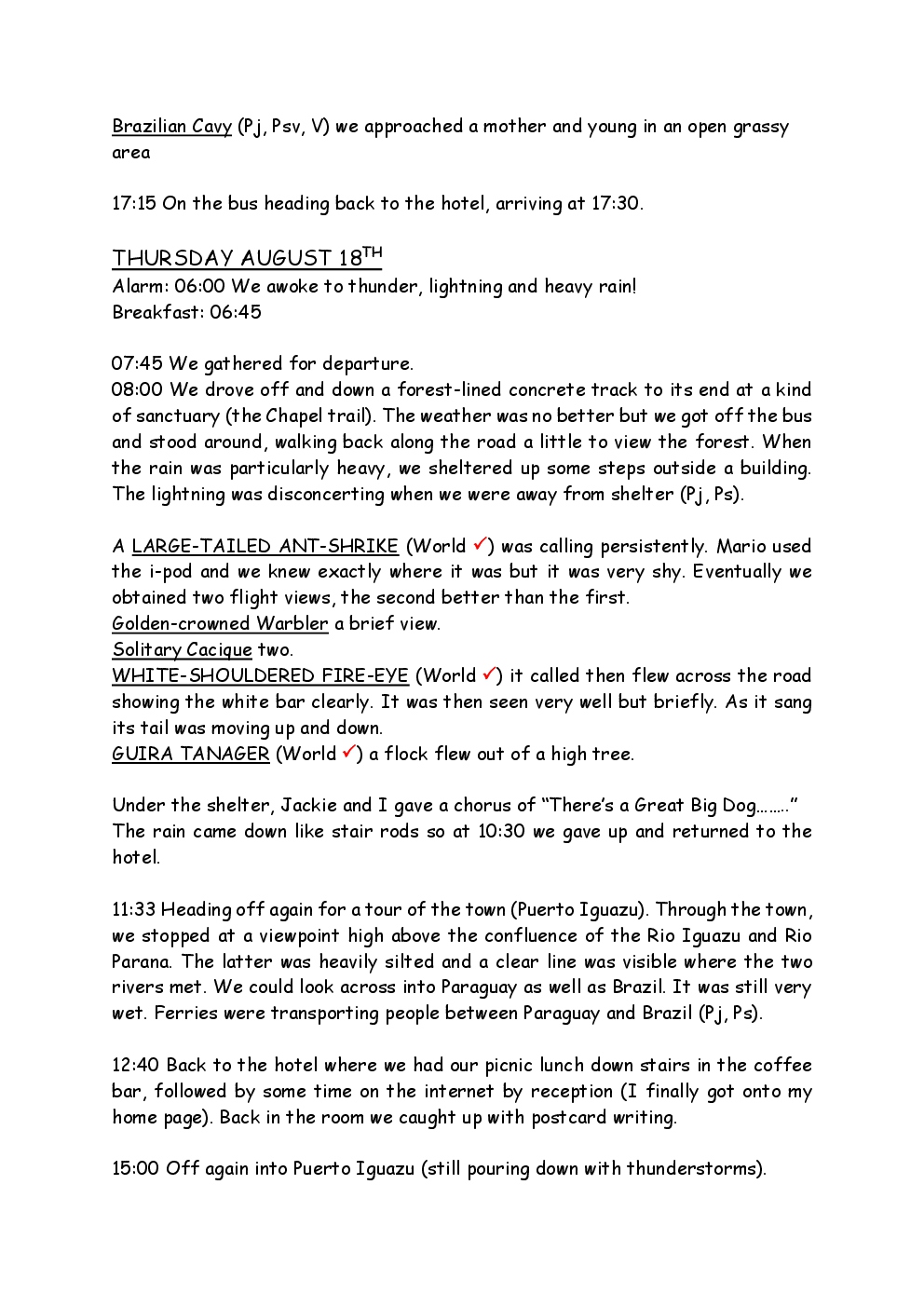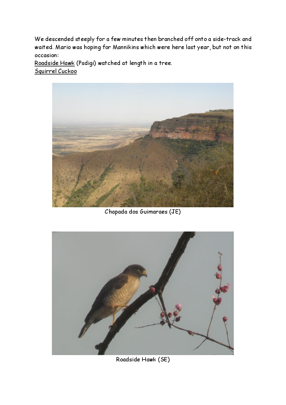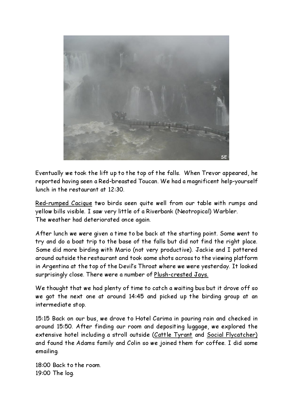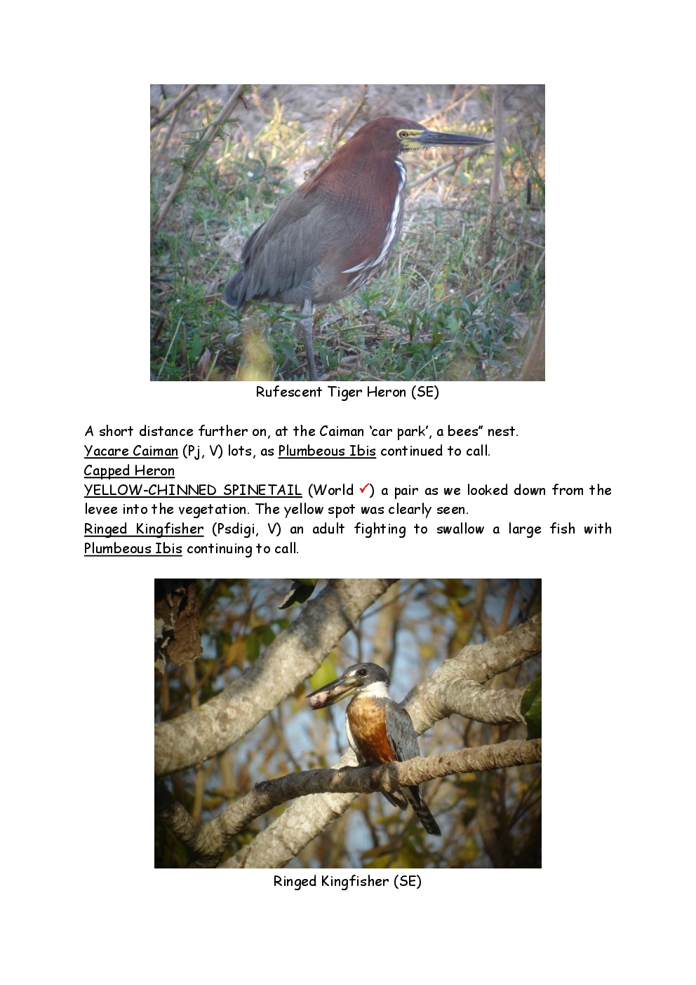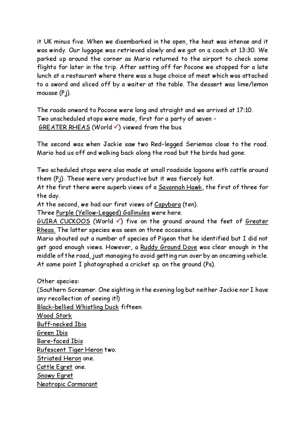 In August 2011, Steve and Jackie travelled to South America on a group trip with Naturetrek. The main focus was the vast area of unspoilt wetland in Brazil, known as the Pantanal. Here, they encountered such avian gems as Hyacinth Macaw, Sunbittern, Sun Grebe, Red-legged Seriema and Southern Screamer. From there, they moved to a more arid area north of the Pantanal, the cerrado, where there is a different community of birds. Finally, they flew to Foz de Iguazu, to witness the spectacular Iguacu Falls. Three days were spent on the Argentinian side of the falls, where the birding was also good, before concluding the holiday back in Brazil.