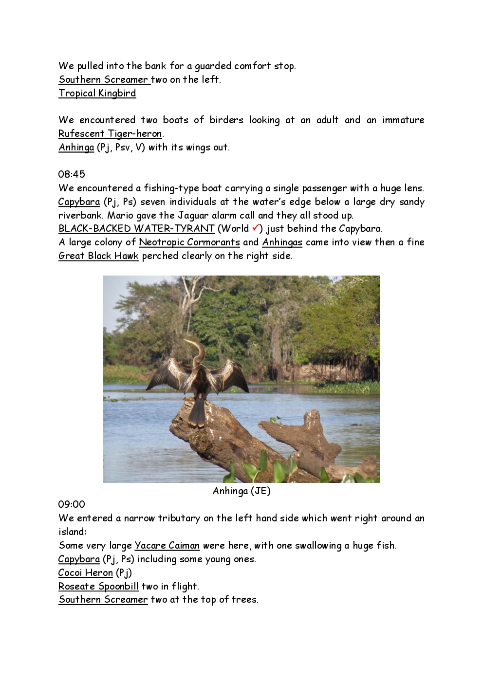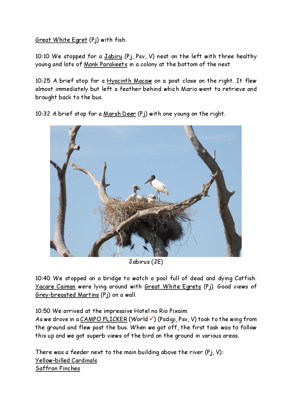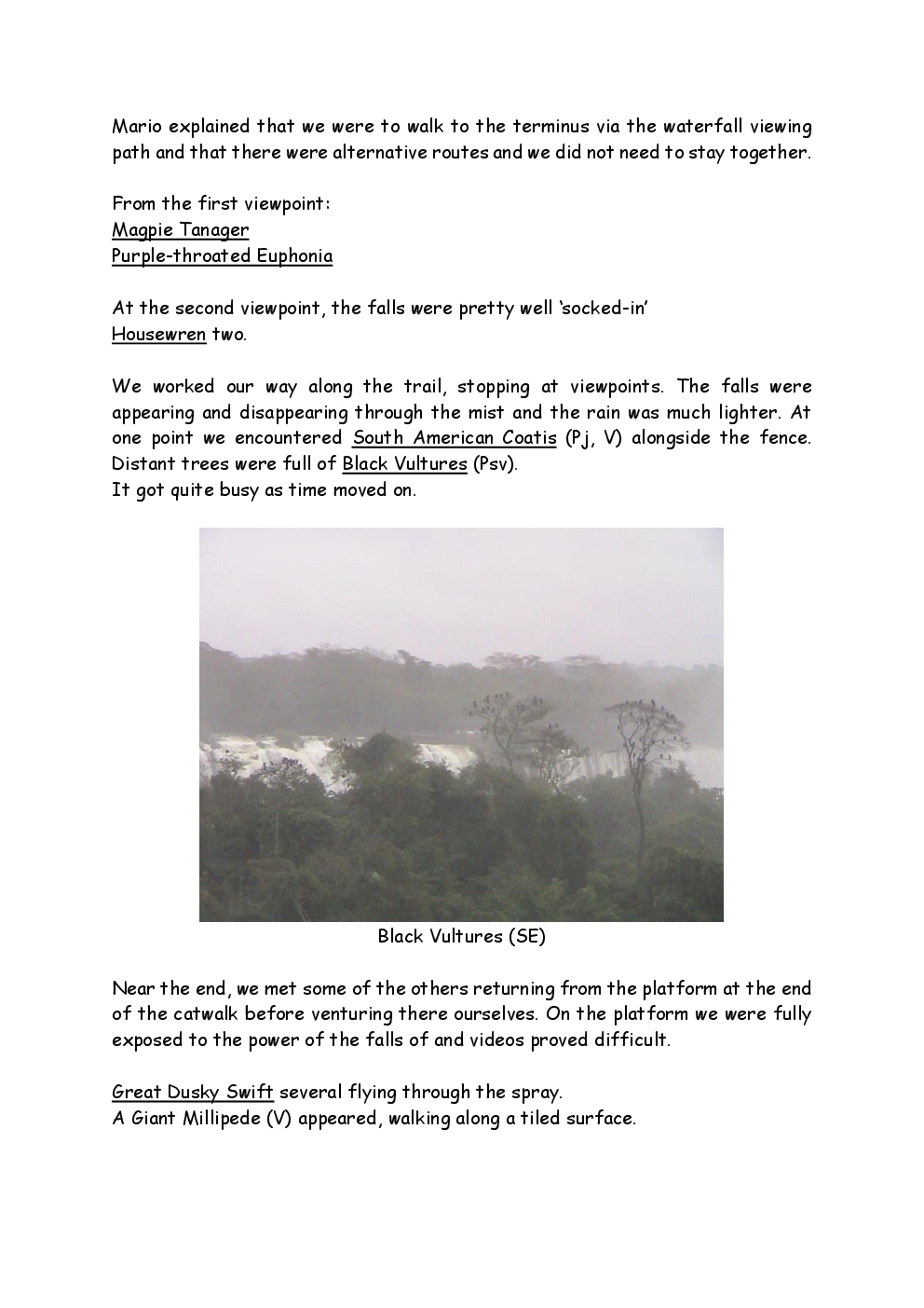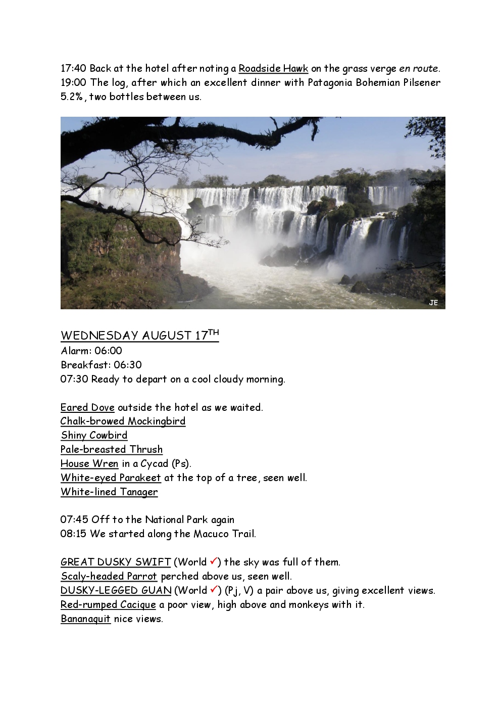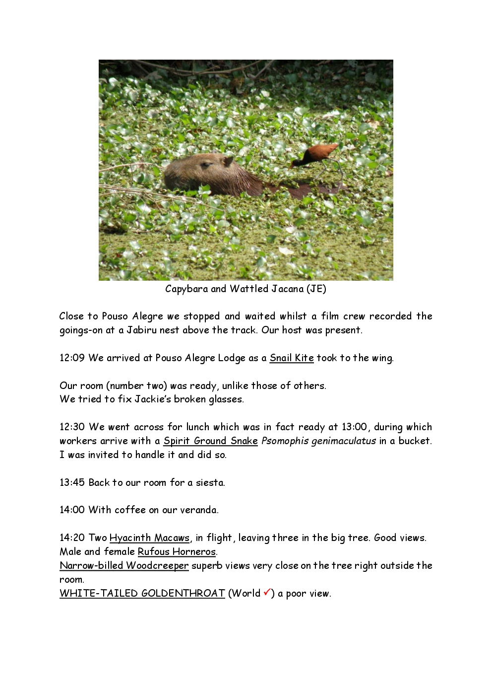 In August 2011, Steve and Jackie travelled to South America on a group trip with Naturetrek. The main focus was the vast area of unspoilt wetland in Brazil, known as the Pantanal. Here, they encountered such avian gems as Hyacinth Macaw, Sunbittern, Sun Grebe, Red-legged Seriema and Southern Screamer. From there, they moved to a more arid area north of the Pantanal, the cerrado, where there is a different community of birds. Finally, they flew to Foz de Iguazu, to witness the spectacular Iguacu Falls. Three days were spent on the Argentinian side of the falls, where the birding was also good, before concluding the holiday back in Brazil.