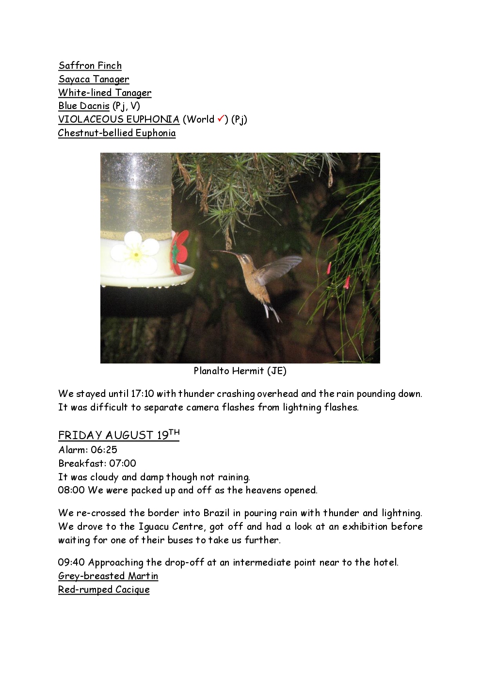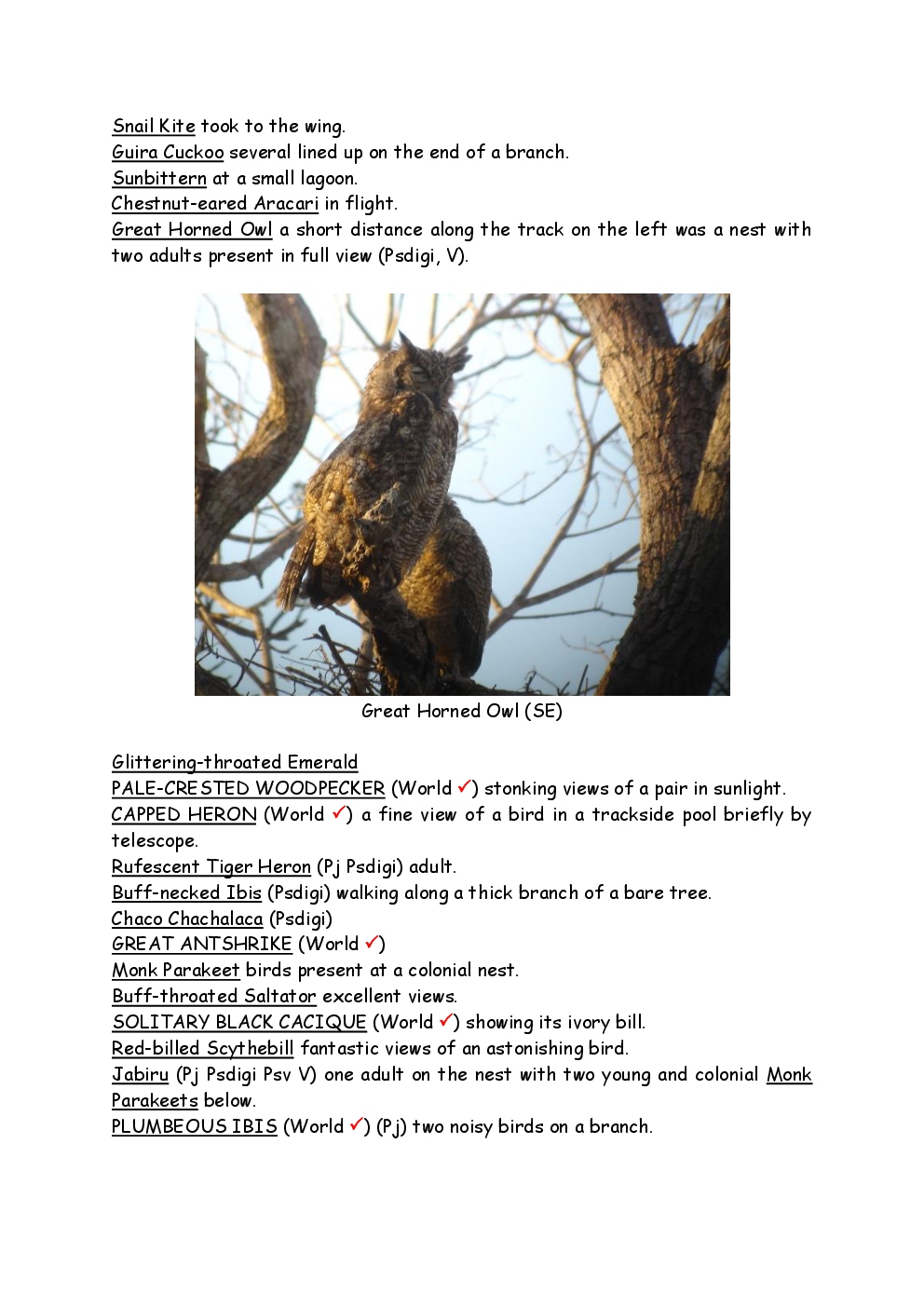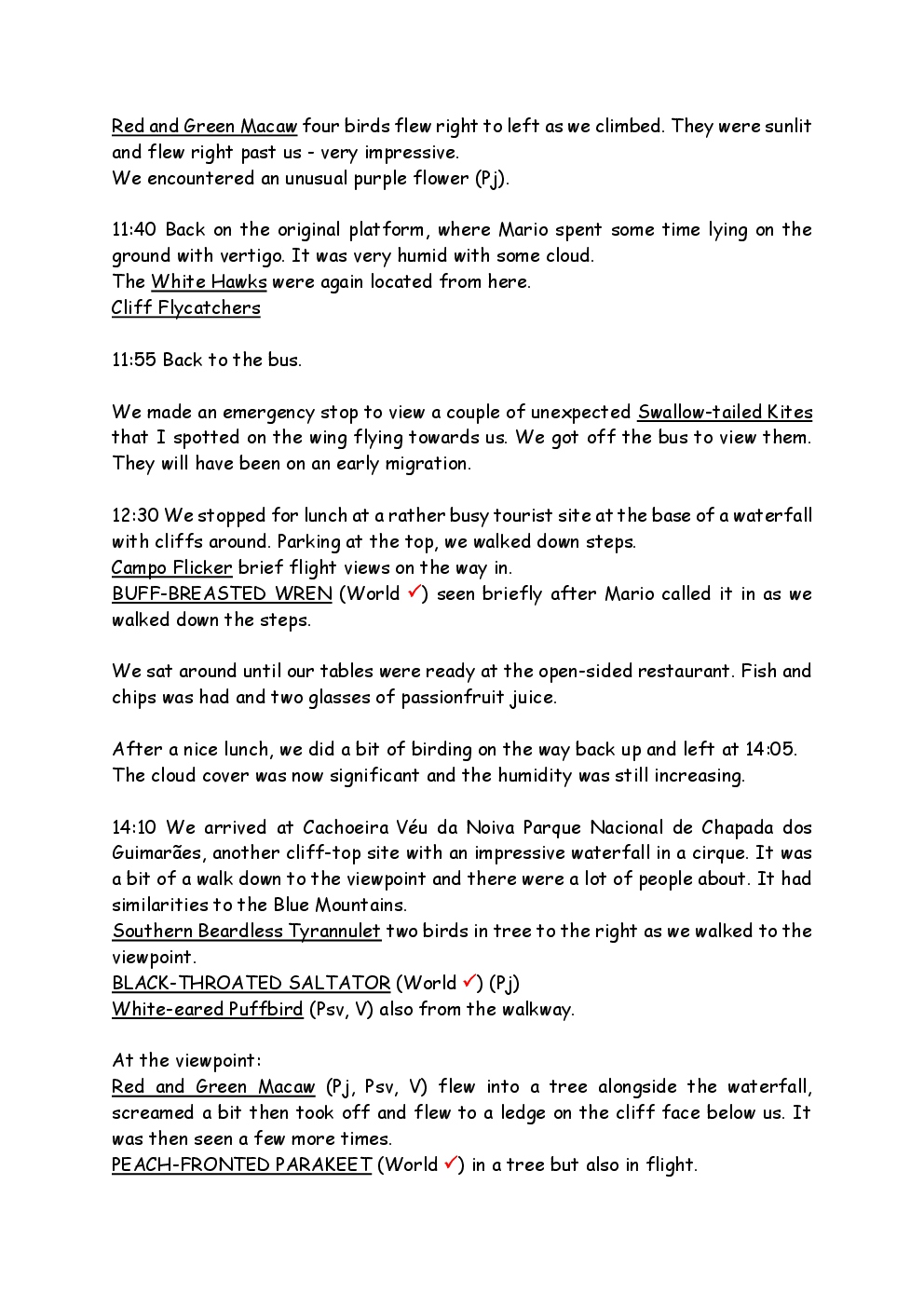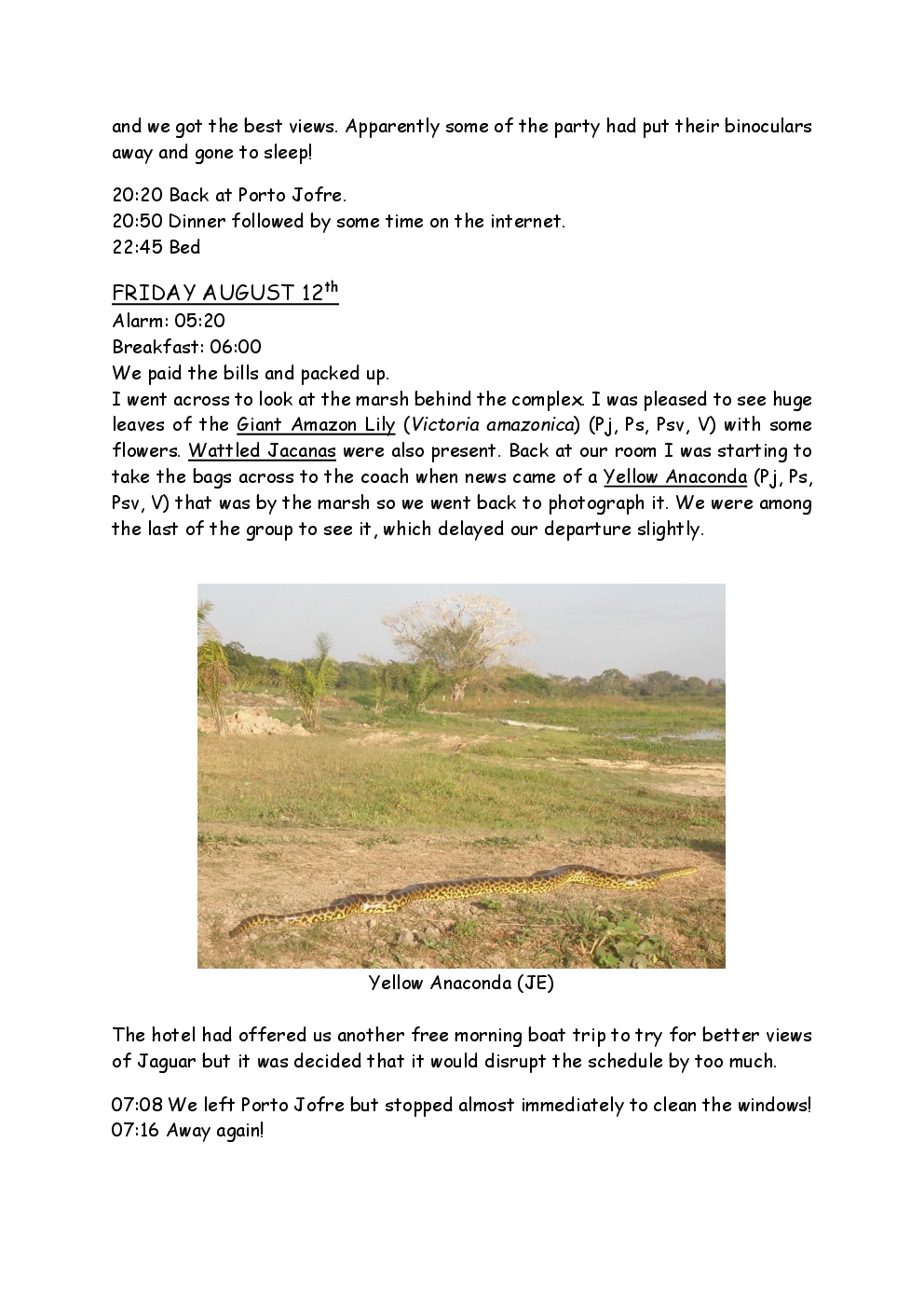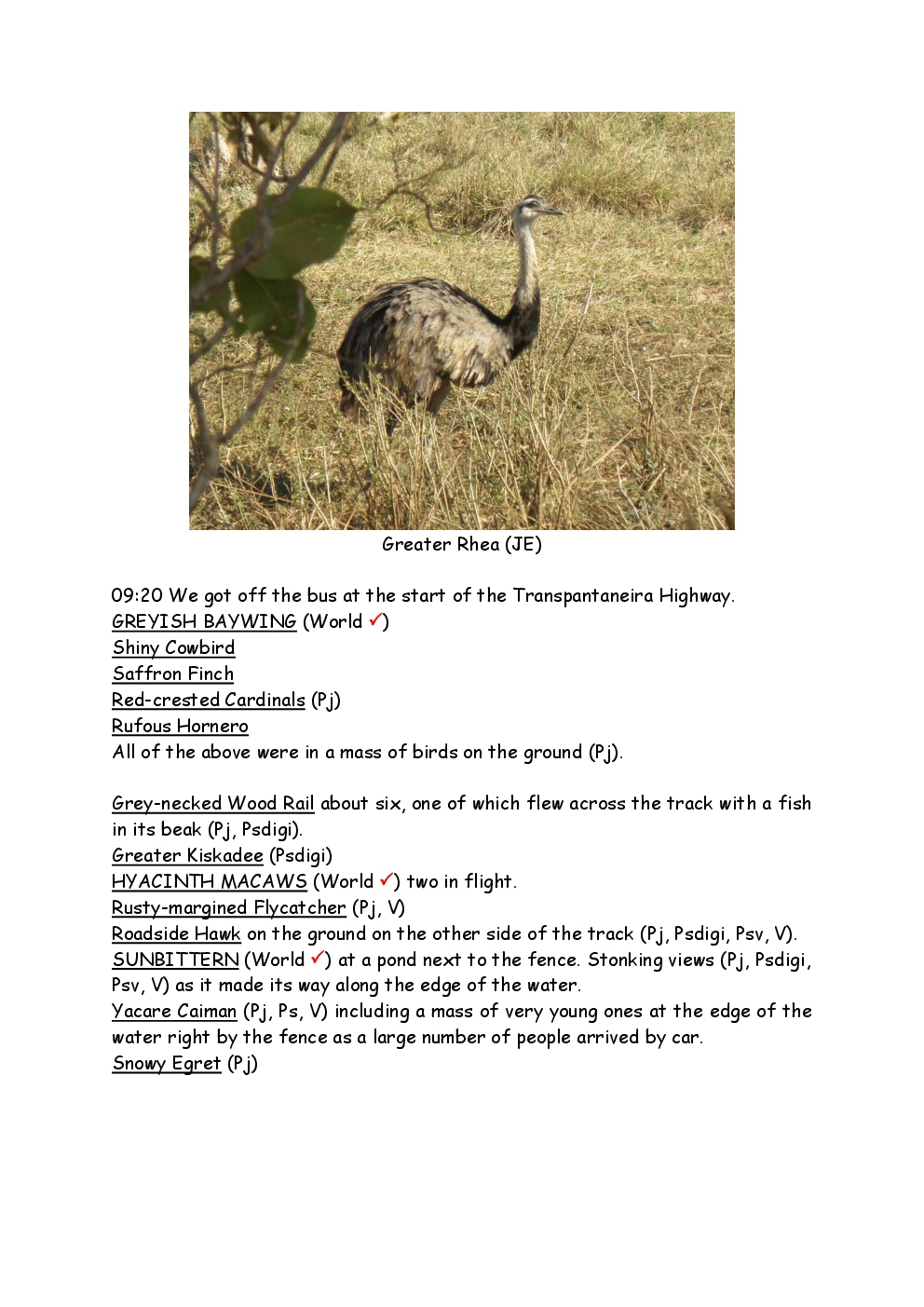 In August 2011, Steve and Jackie travelled to South America on a group trip with Naturetrek. The main focus was the vast area of unspoilt wetland in Brazil, known as the Pantanal. Here, they encountered such avian gems as Hyacinth Macaw, Sunbittern, Sun Grebe, Red-legged Seriema and Southern Screamer. From there, they moved to a more arid area north of the Pantanal, the cerrado, where there is a different community of birds. Finally, they flew to Foz de Iguazu, to witness the spectacular Iguacu Falls. Three days were spent on the Argentinian side of the falls, where the birding was also good, before concluding the holiday back in Brazil.