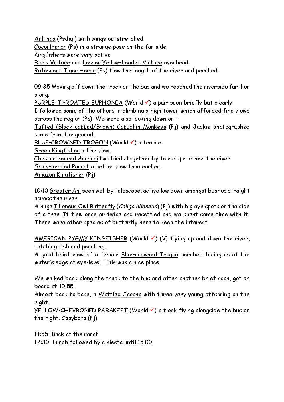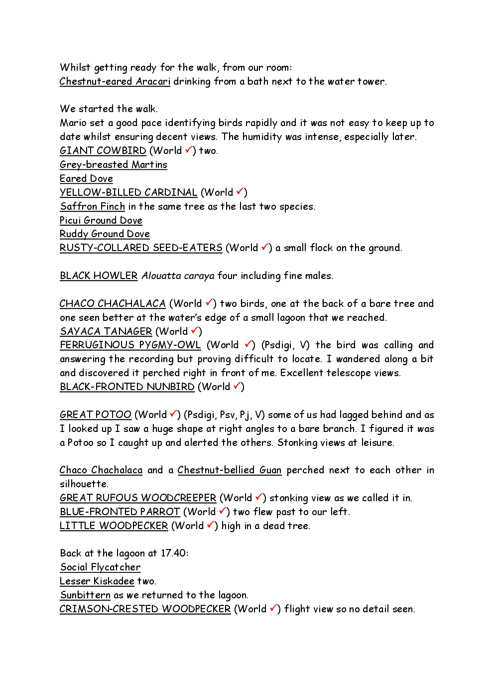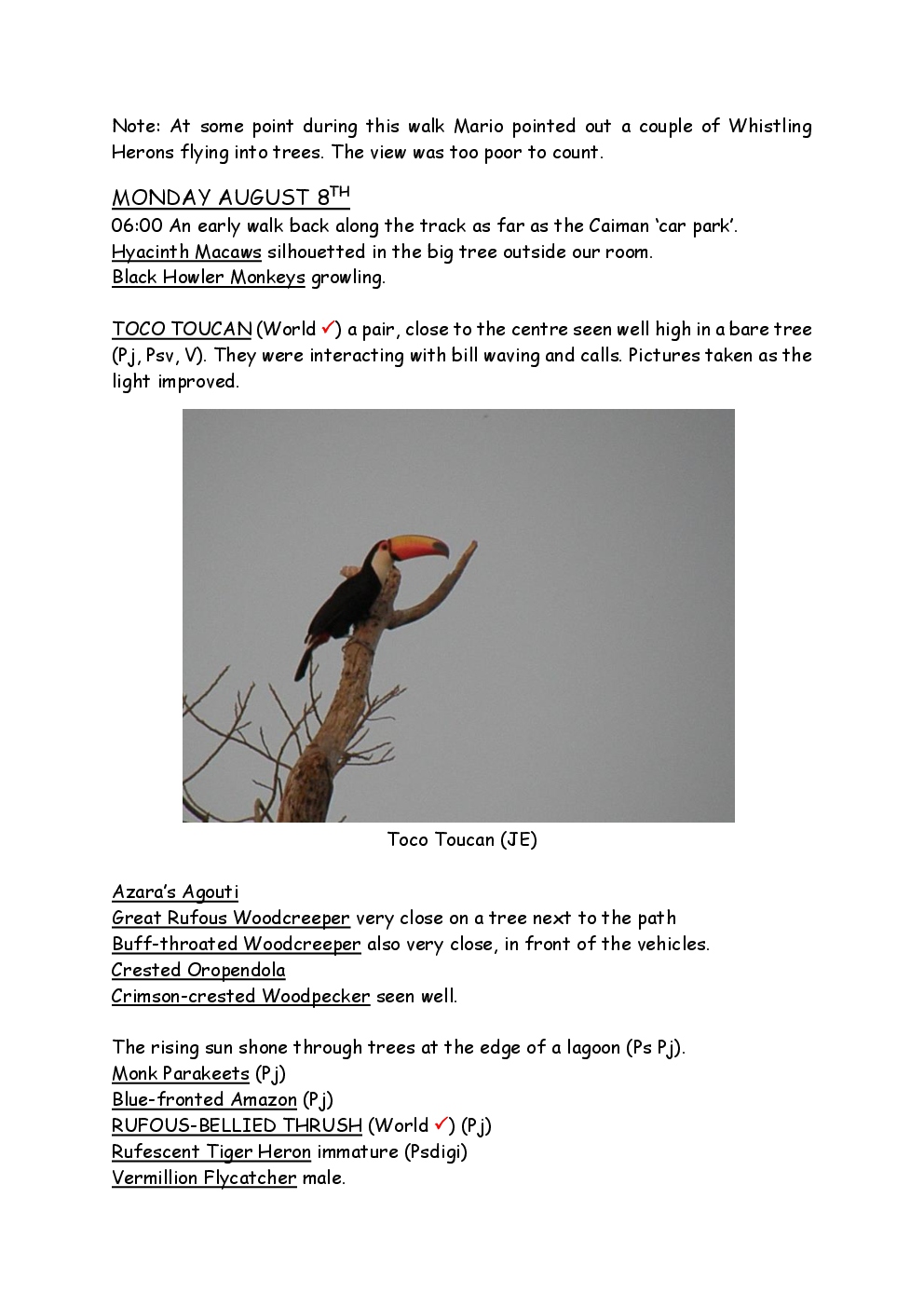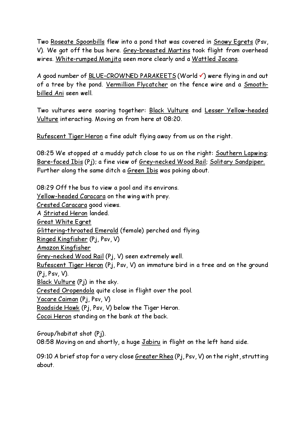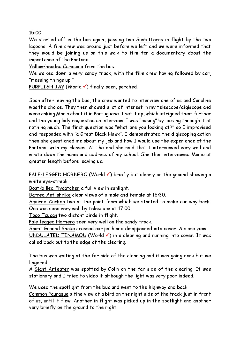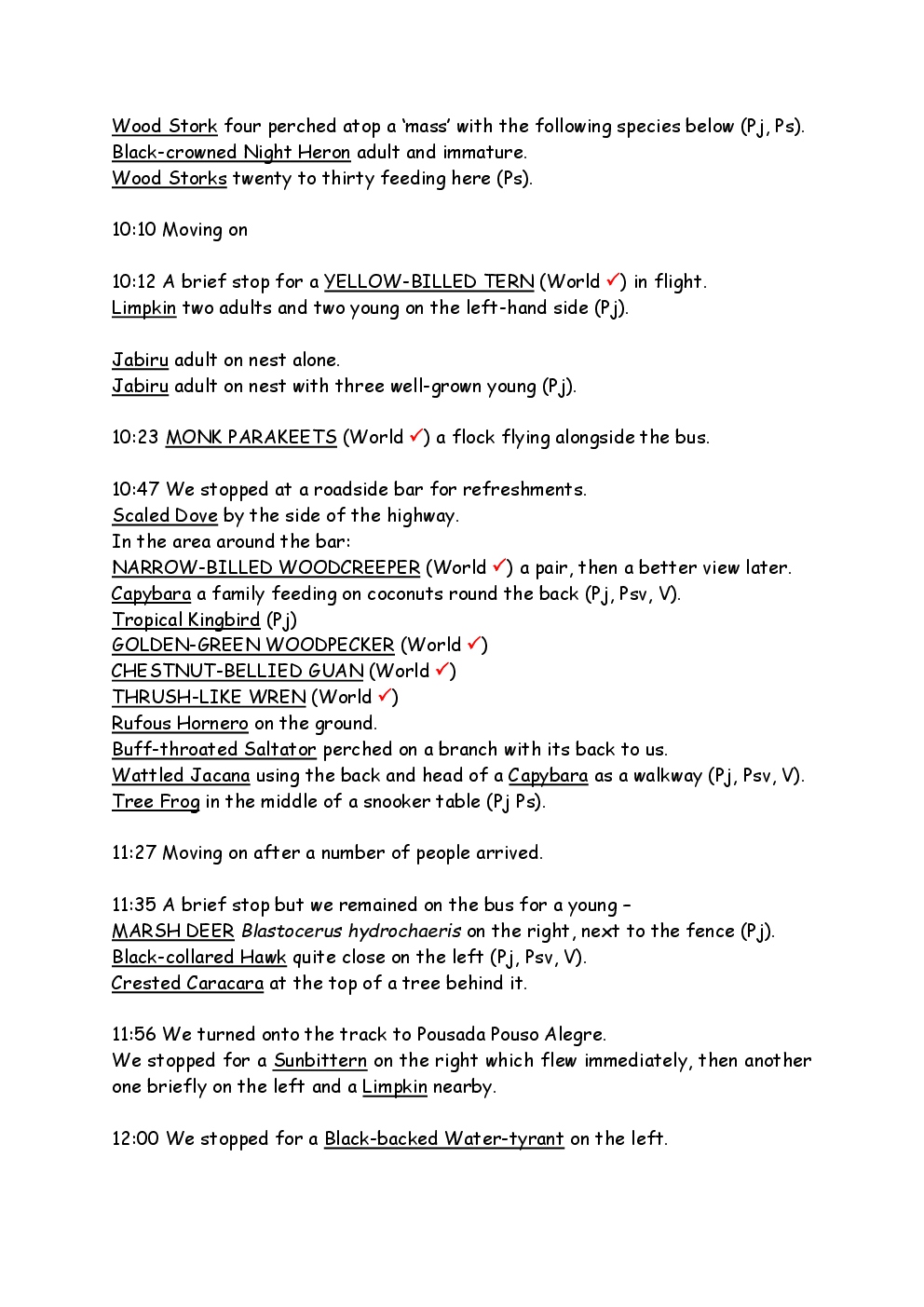 In August 2011, Steve and Jackie travelled to South America on a group trip with Naturetrek. The main focus was the vast area of unspoilt wetland in Brazil, known as the Pantanal. Here, they encountered such avian gems as Hyacinth Macaw, Sunbittern, Sun Grebe, Red-legged Seriema and Southern Screamer. From there, they moved to a more arid area north of the Pantanal, the cerrado, where there is a different community of birds. Finally, they flew to Foz de Iguazu, to witness the spectacular Iguacu Falls. Three days were spent on the Argentinian side of the falls, where the birding was also good, before concluding the holiday back in Brazil.