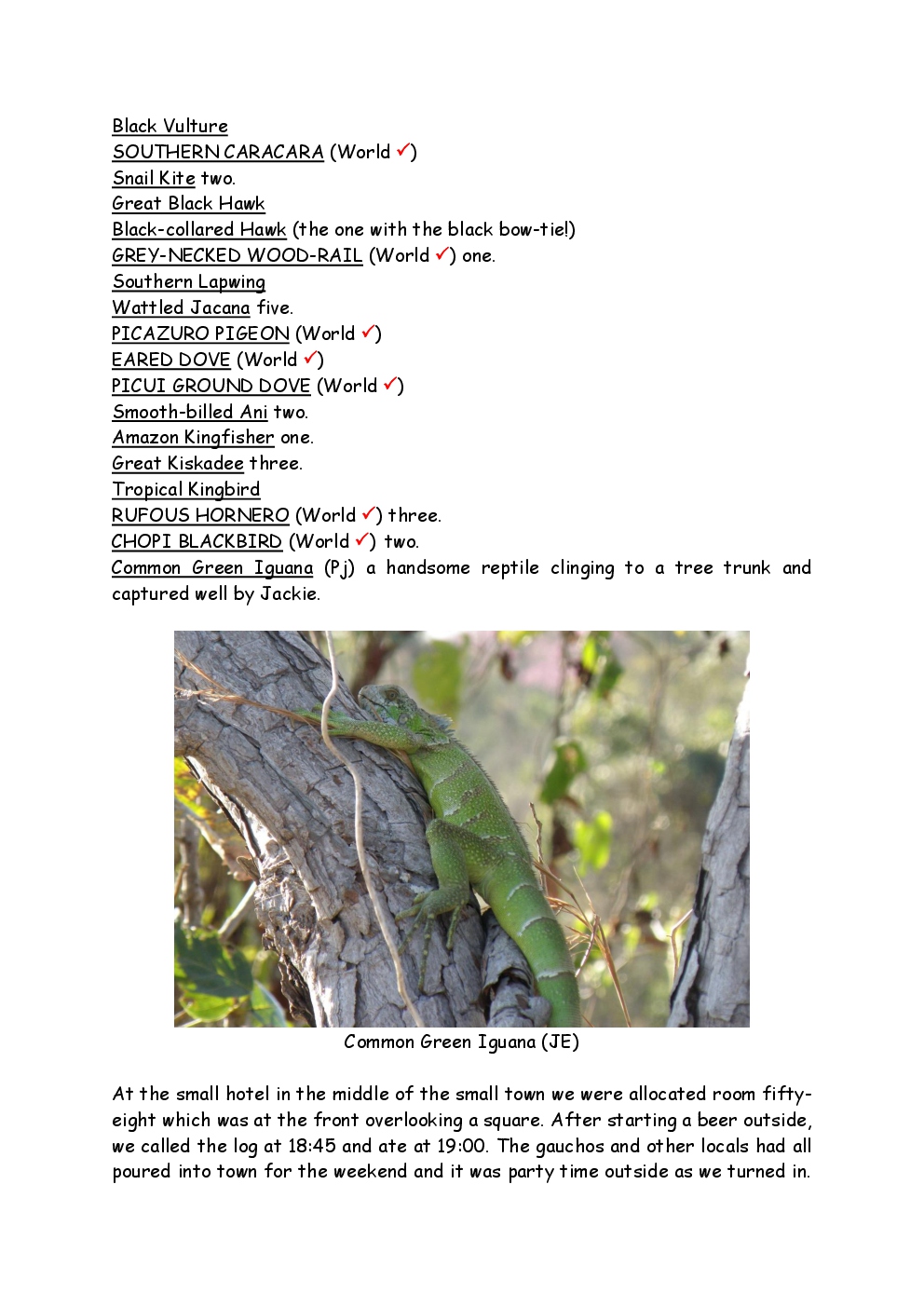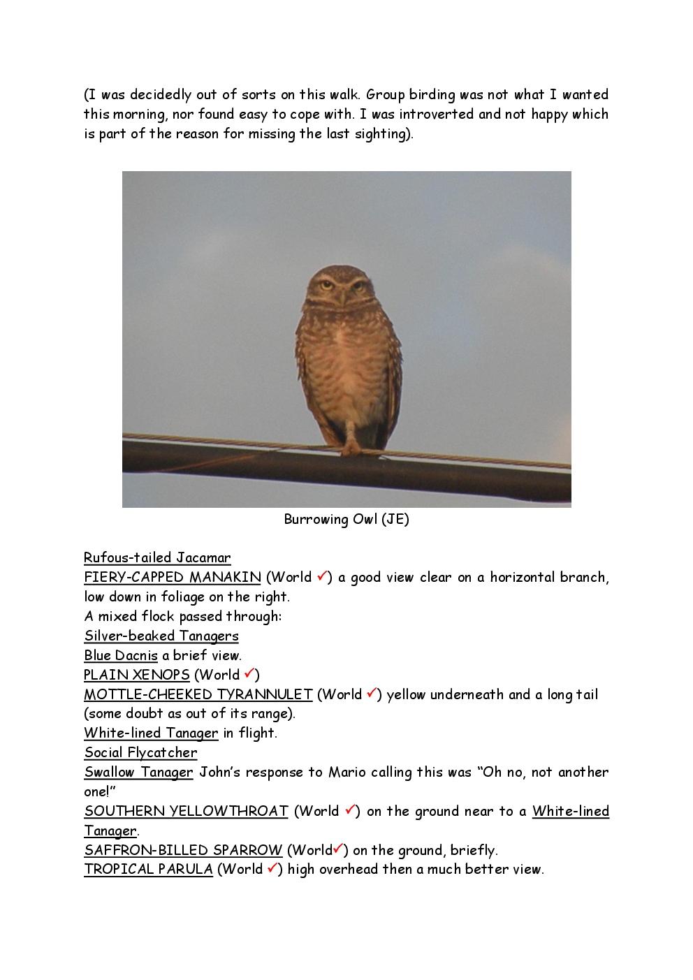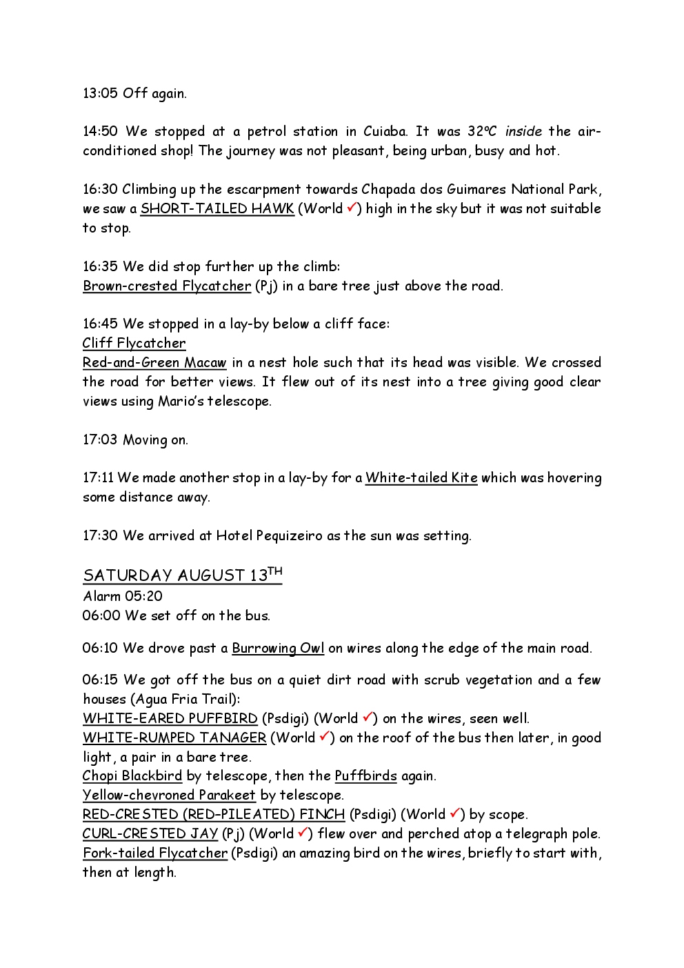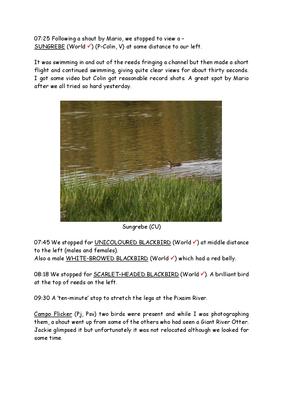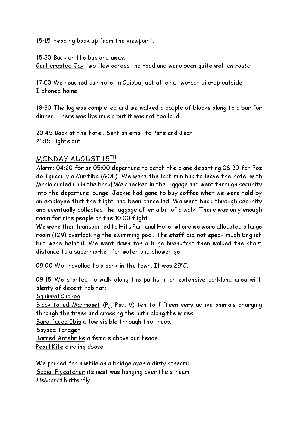 In August 2011, Steve and Jackie travelled to South America on a group trip with Naturetrek. The main focus was the vast area of unspoilt wetland in Brazil, known as the Pantanal. Here, they encountered such avian gems as Hyacinth Macaw, Sunbittern, Sun Grebe, Red-legged Seriema and Southern Screamer. From there, they moved to a more arid area north of the Pantanal, the cerrado, where there is a different community of birds. Finally, they flew to Foz de Iguazu, to witness the spectacular Iguacu Falls. Three days were spent on the Argentinian side of the falls, where the birding was also good, before concluding the holiday back in Brazil.