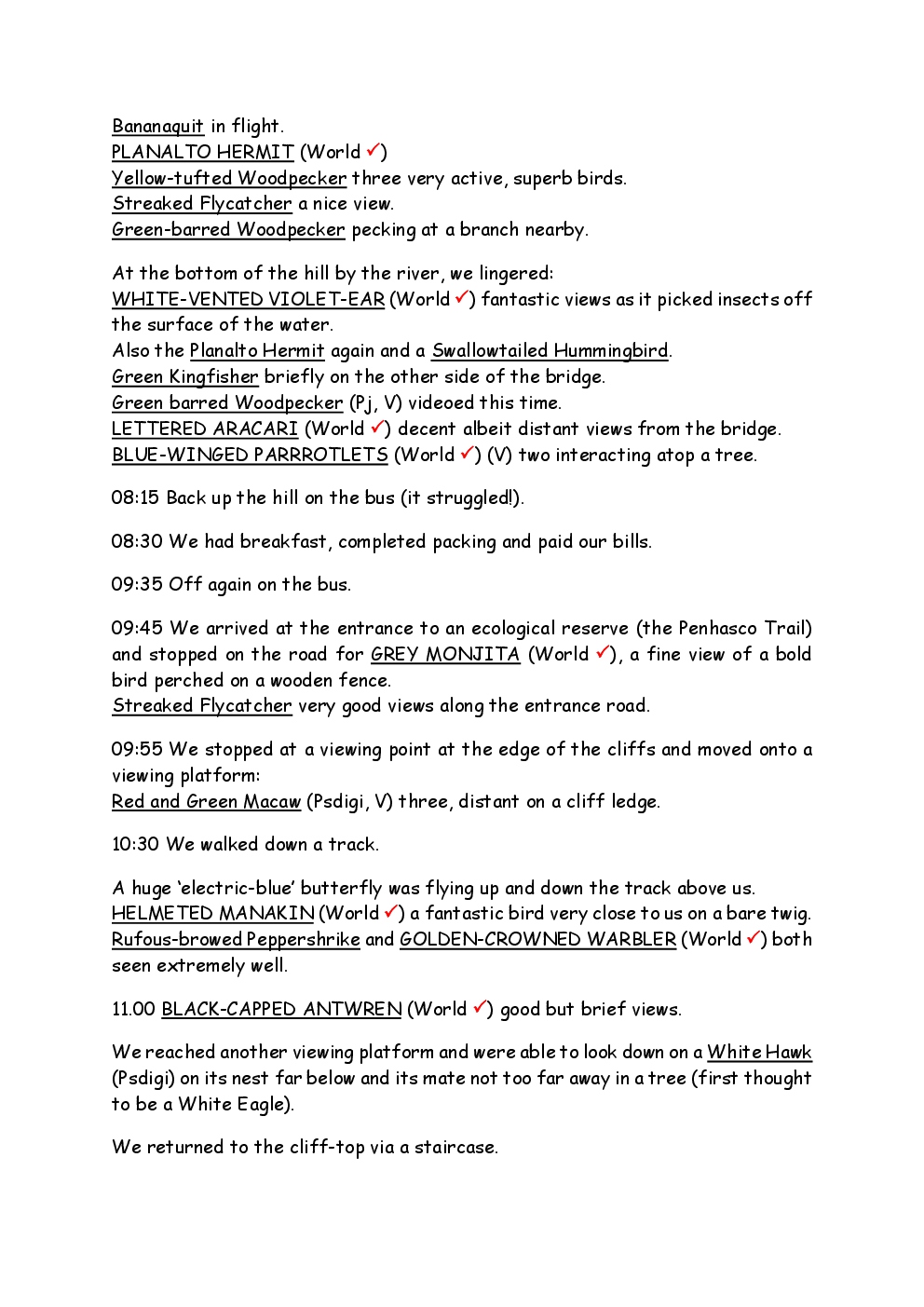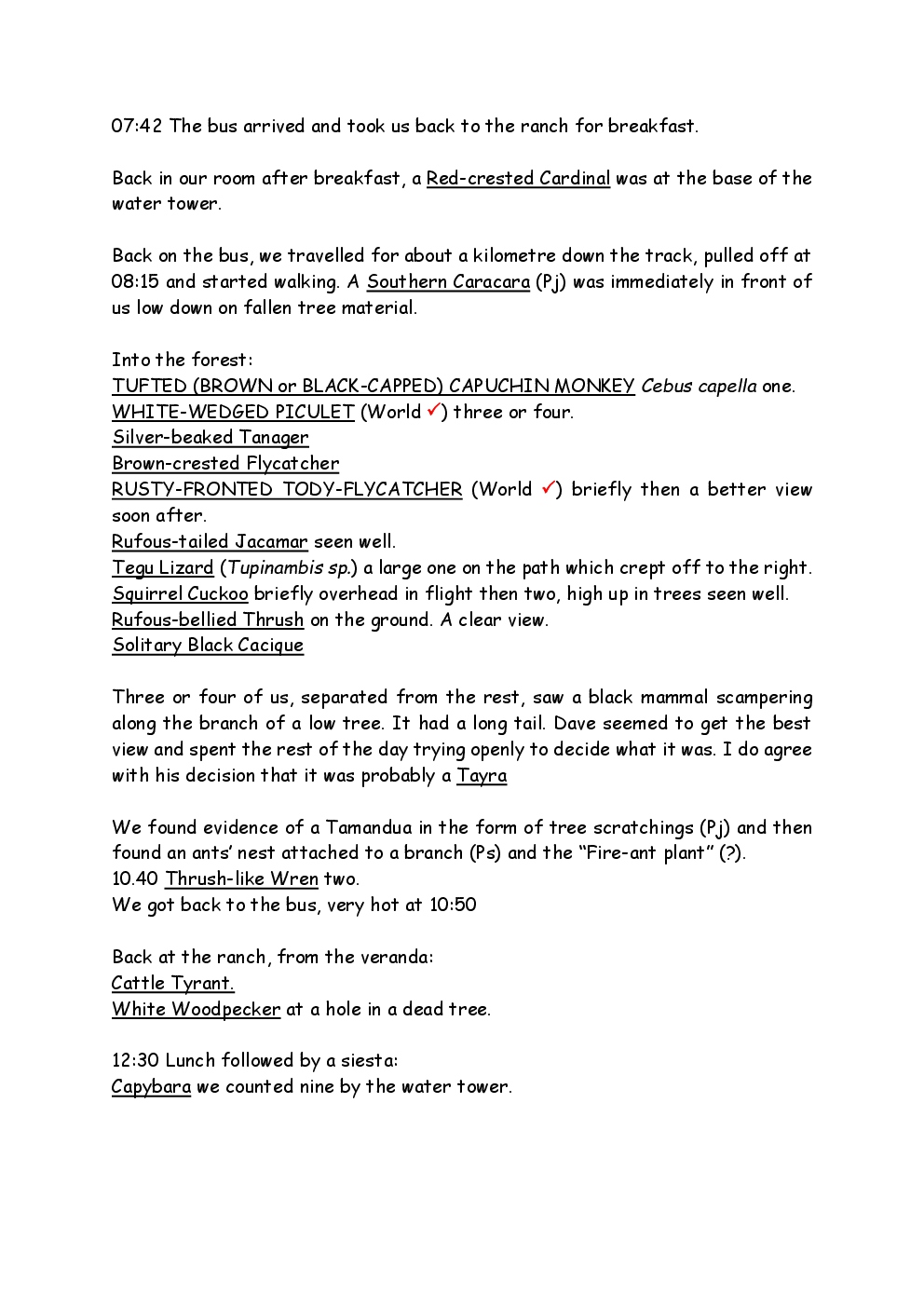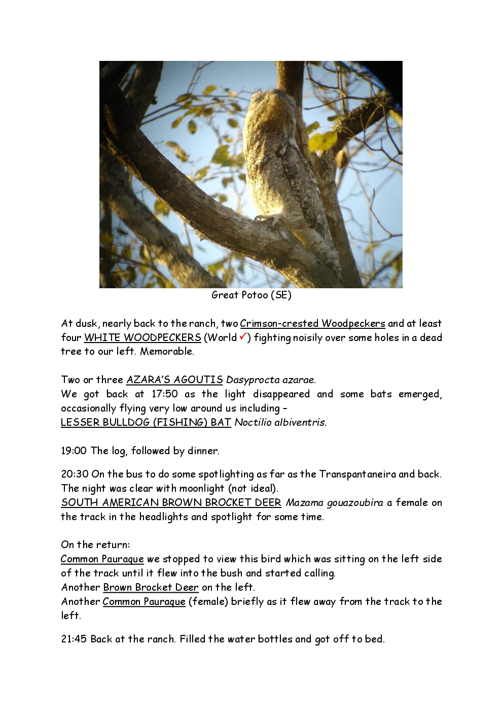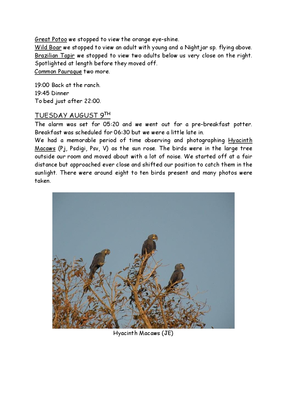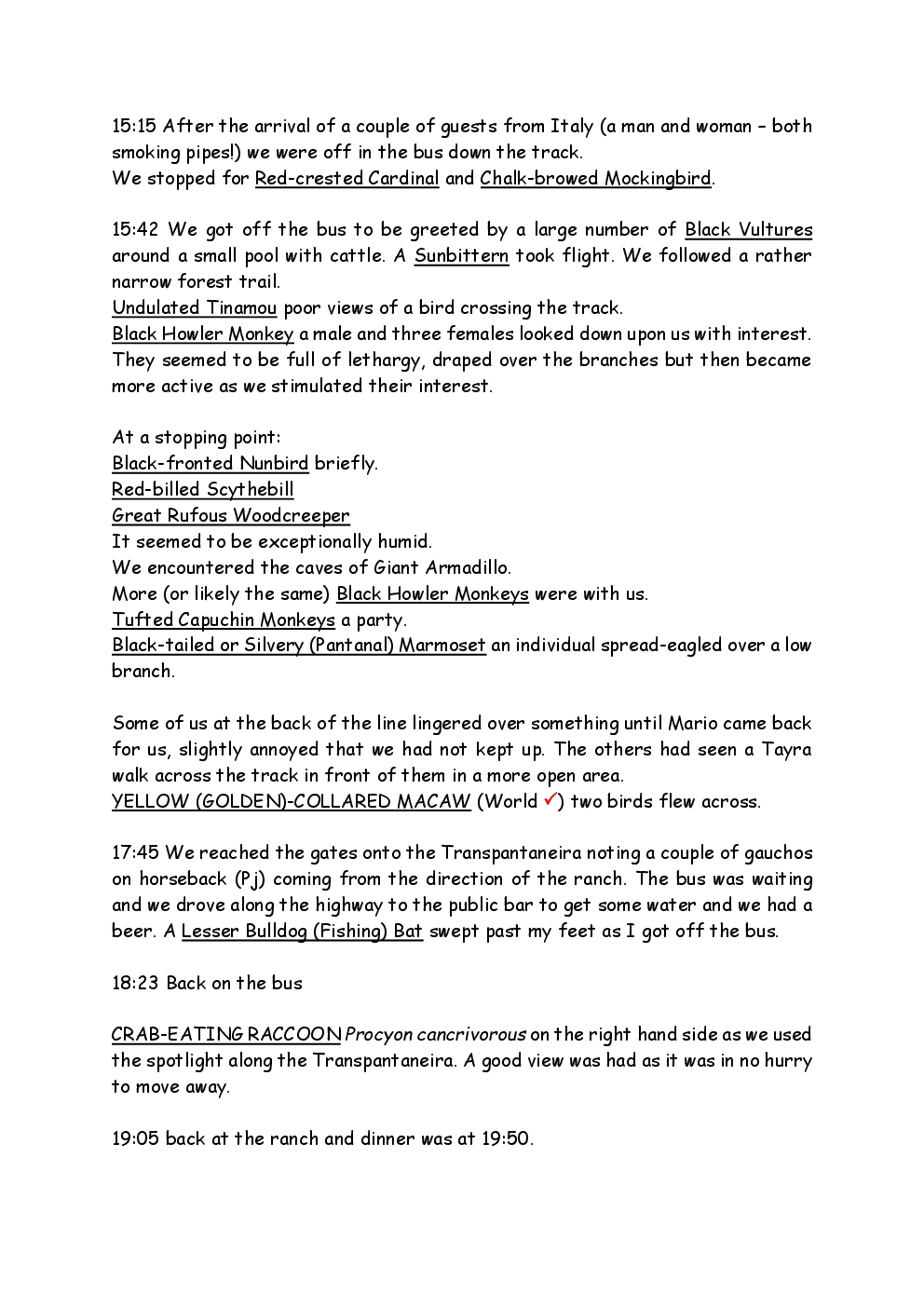 In August 2011, Steve and Jackie travelled to South America on a group trip with Naturetrek. The main focus was the vast area of unspoilt wetland in Brazil, known as the Pantanal. Here, they encountered such avian gems as Hyacinth Macaw, Sunbittern, Sun Grebe, Red-legged Seriema and Southern Screamer. From there, they moved to a more arid area north of the Pantanal, the cerrado, where there is a different community of birds. Finally, they flew to Foz de Iguazu, to witness the spectacular Iguacu Falls. Three days were spent on the Argentinian side of the falls, where the birding was also good, before concluding the holiday back in Brazil.