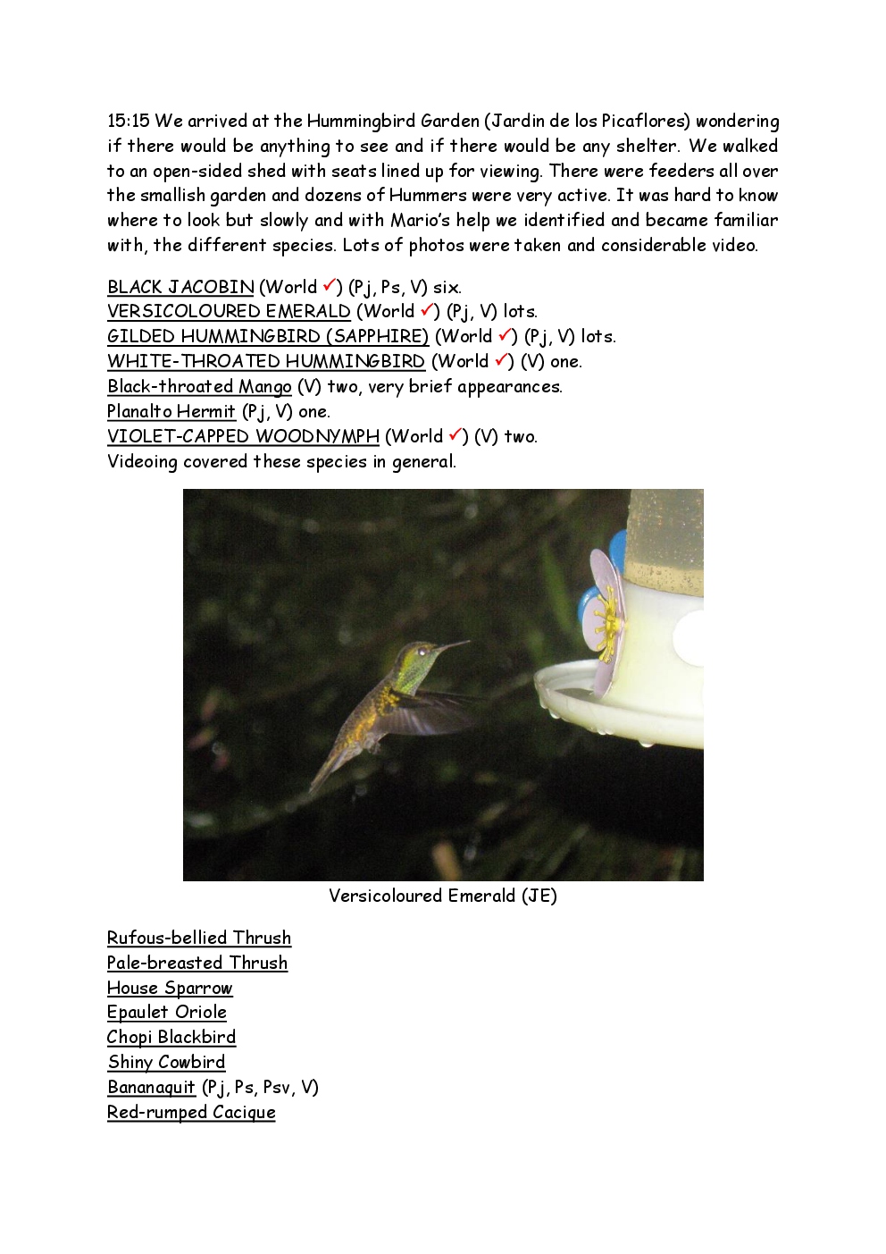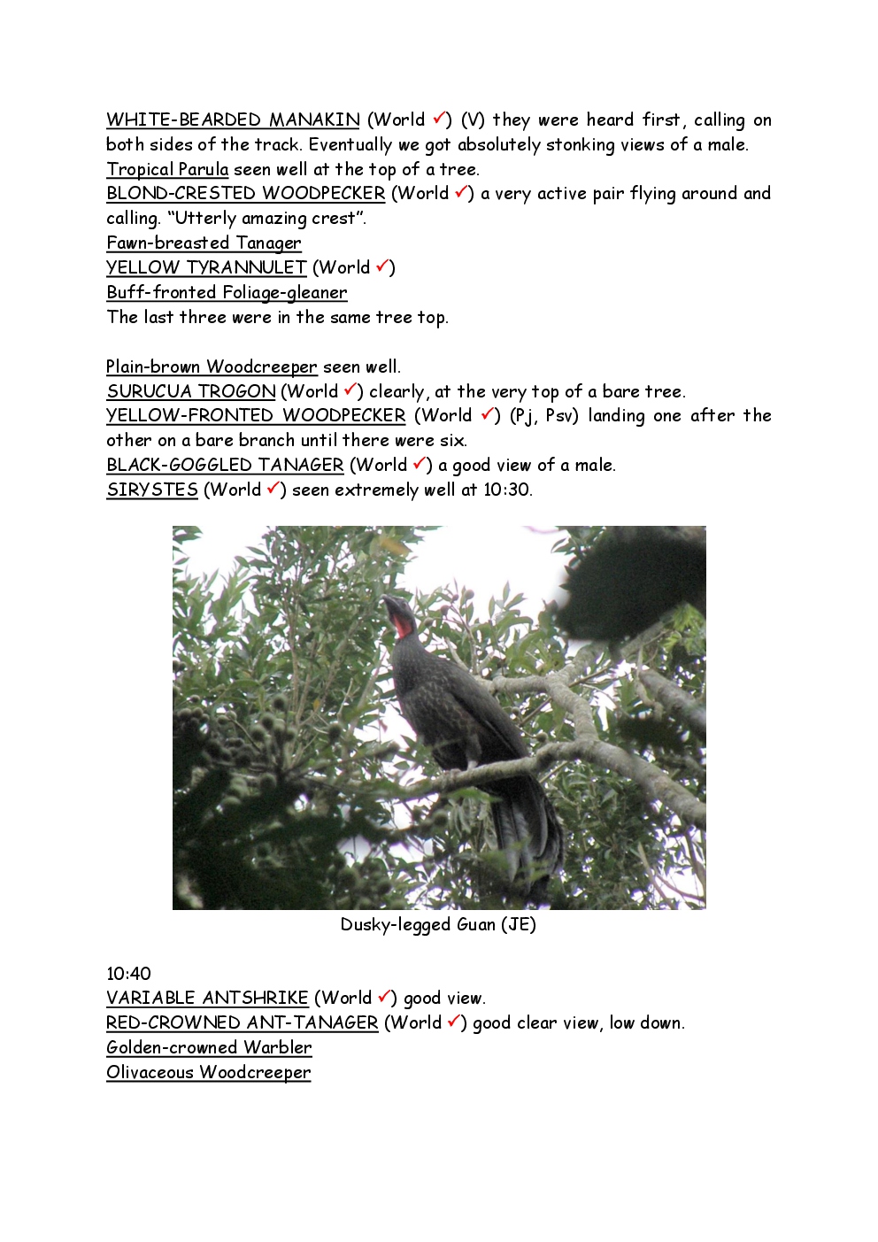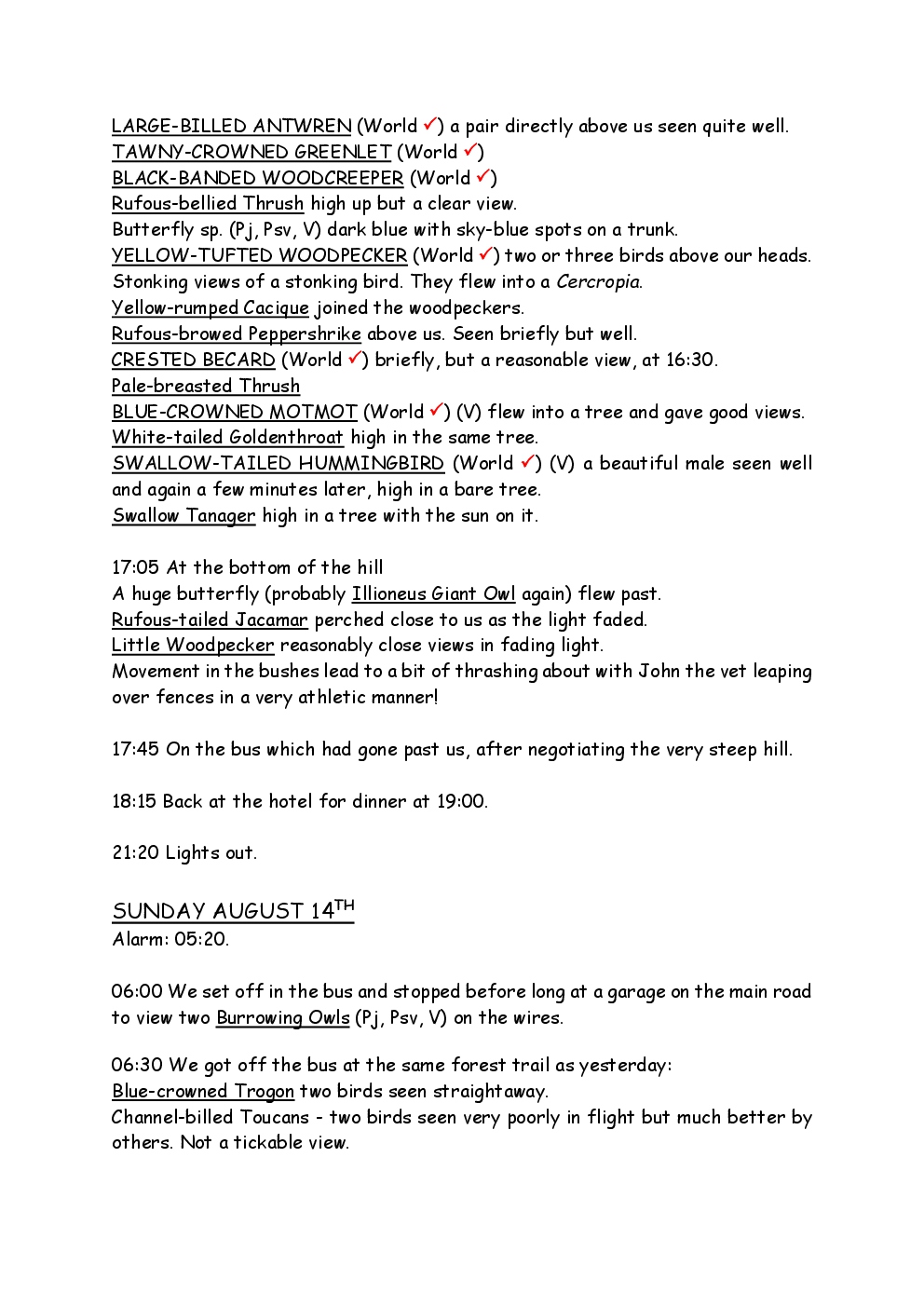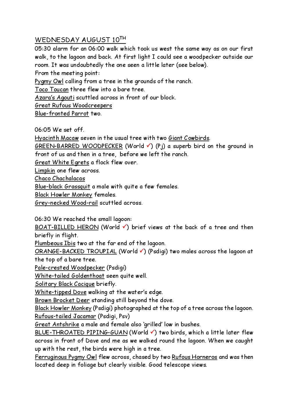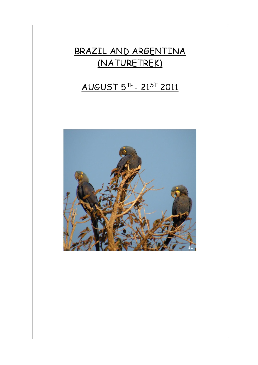 In August 2011, Steve and Jackie travelled to South America on a group trip with Naturetrek. The main focus was the vast area of unspoilt wetland in Brazil, known as the Pantanal. Here, they encountered such avian gems as Hyacinth Macaw, Sunbittern, Sun Grebe, Red-legged Seriema and Southern Screamer. From there, they moved to a more arid area north of the Pantanal, the cerrado, where there is a different community of birds. Finally, they flew to Foz de Iguazu, to witness the spectacular Iguacu Falls. Three days were spent on the Argentinian side of the falls, where the birding was also good, before concluding the holiday back in Brazil.