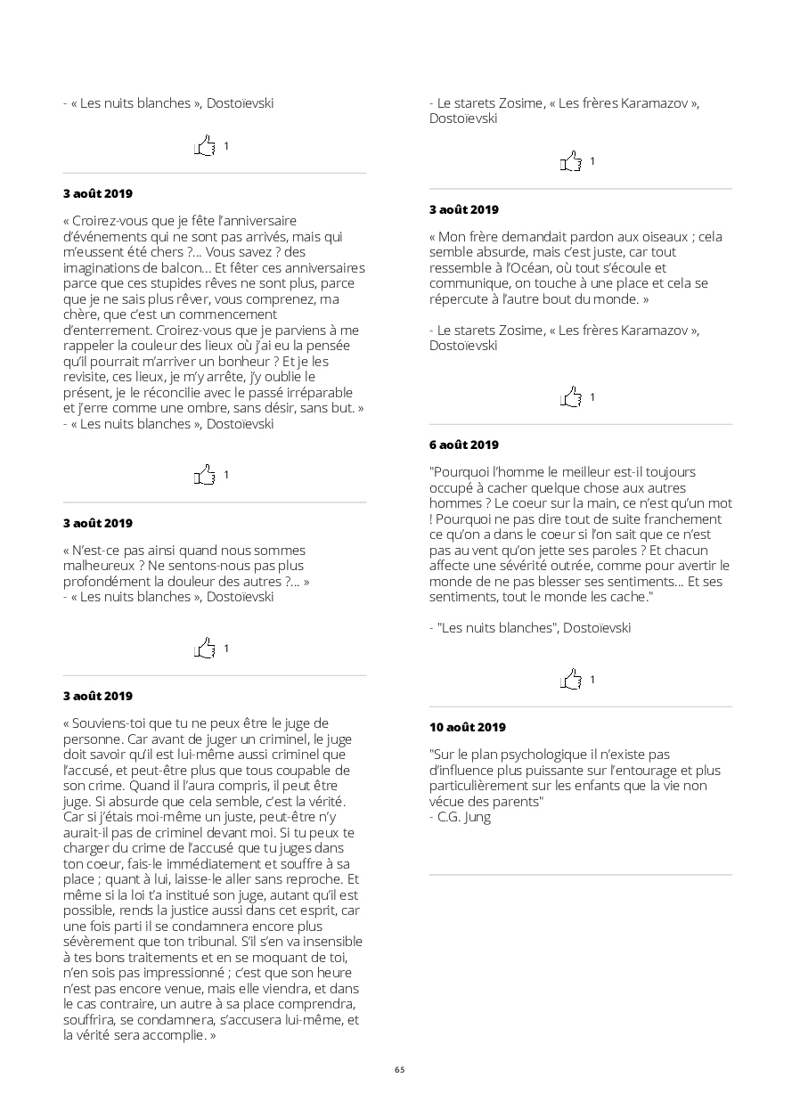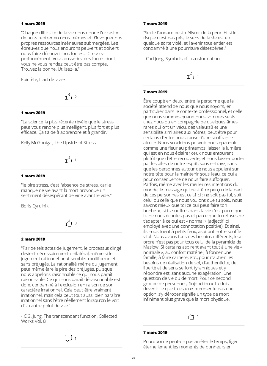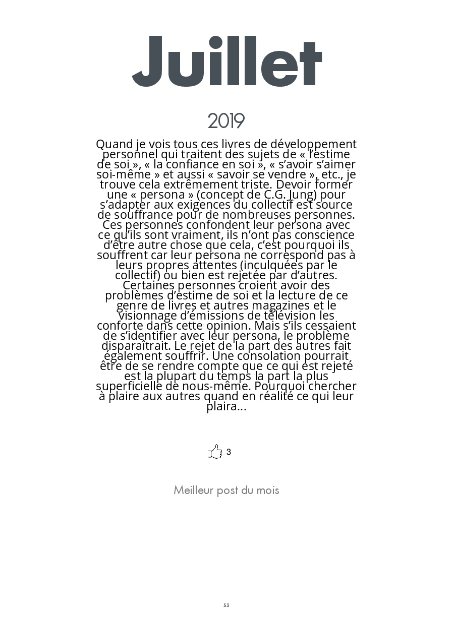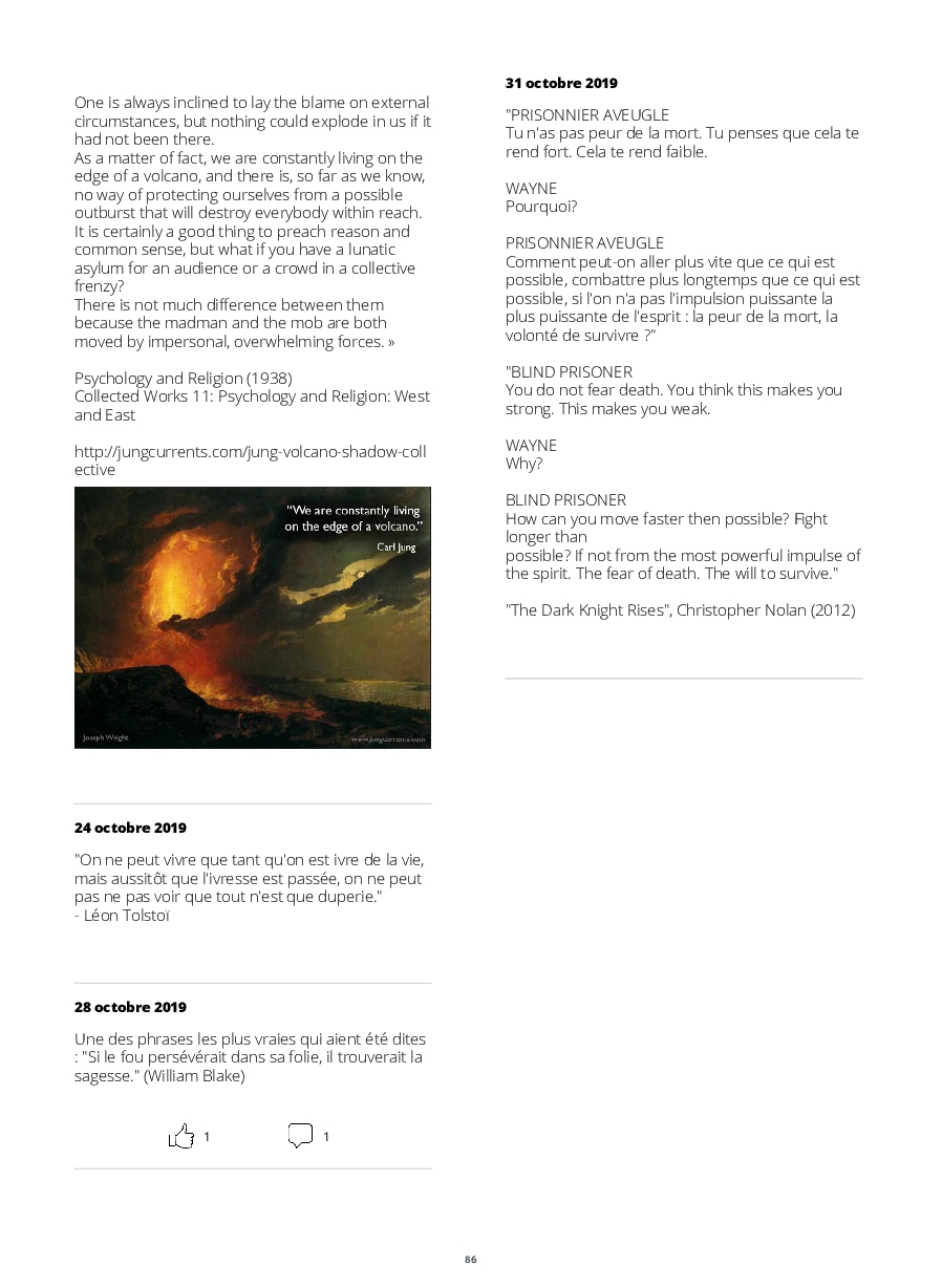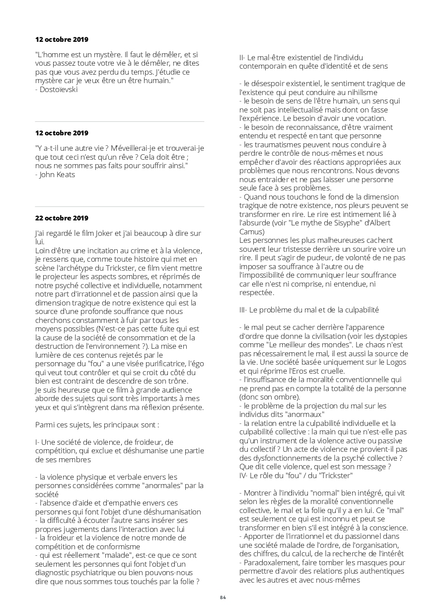 J'ai puisé dans la psychologie des profondeurs, la philosophie de l'existence, la littérature, ... afin de répondre aux problèmes moraux et à la recherche de sens qui m'assaillent. Je souhaite que vous y trouviez aussi de quoi avancer dans votre propre quête.