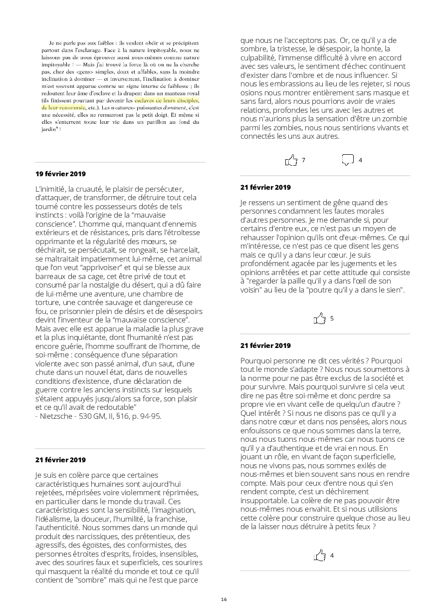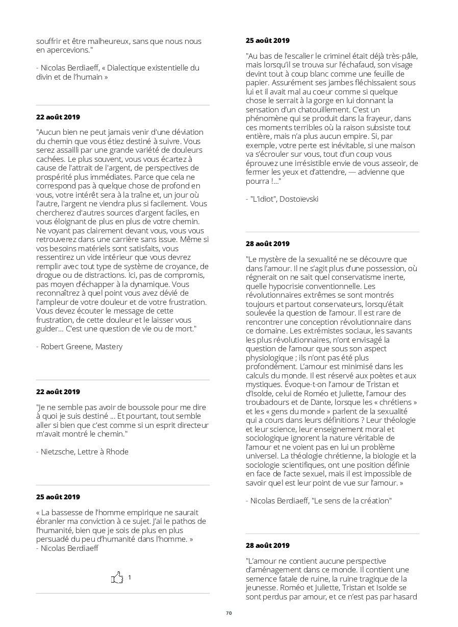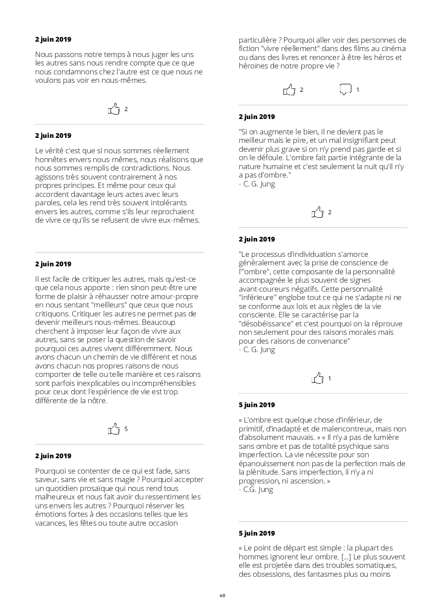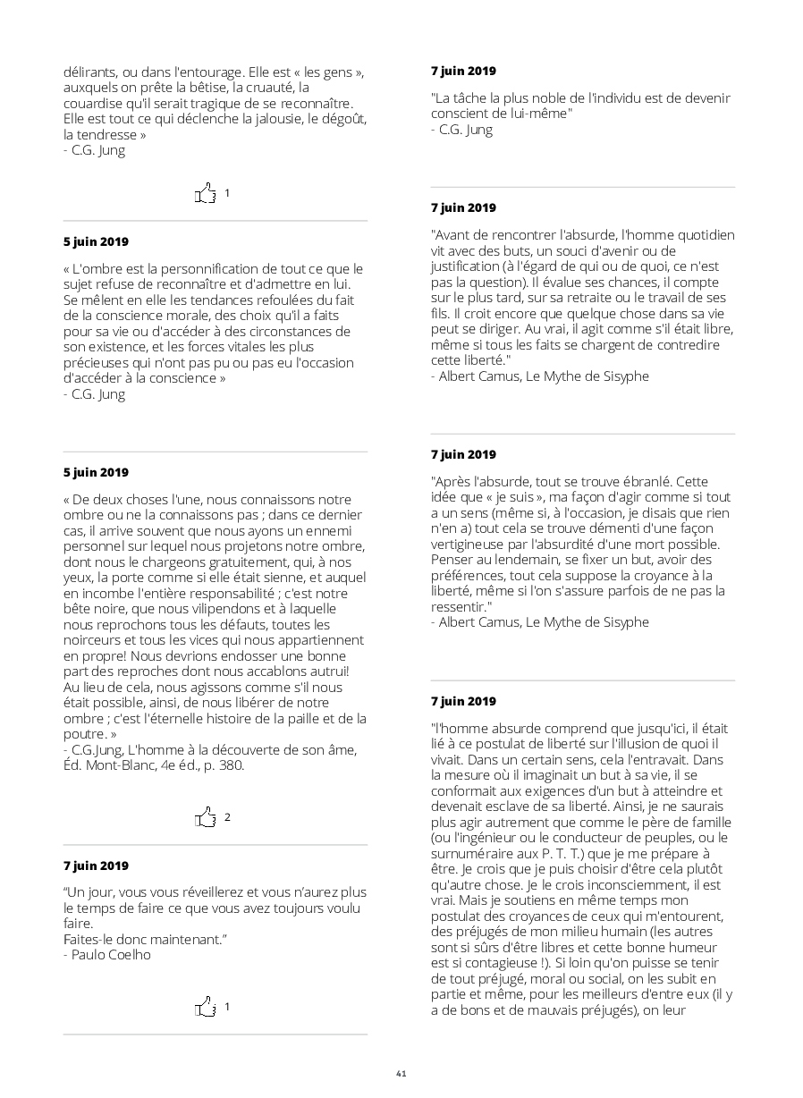 J'ai puisé dans la psychologie des profondeurs, la philosophie de l'existence, la littérature, ... afin de répondre aux problèmes moraux et à la recherche de sens qui m'assaillent. Je souhaite que vous y trouviez aussi de quoi avancer dans votre propre quête.