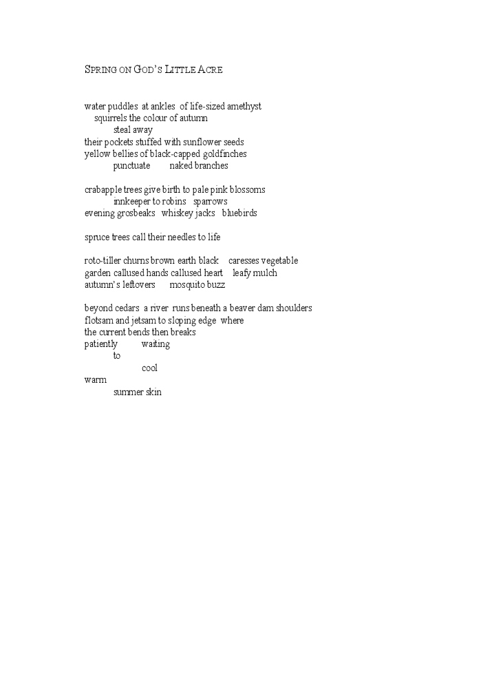 An essentially small collection of poetry, Valerie Poulin's first, "Something to Hide" was shortlisted for the Canadian Poetry Association's Shaunt Basmajian Chapbook Award (2003).
